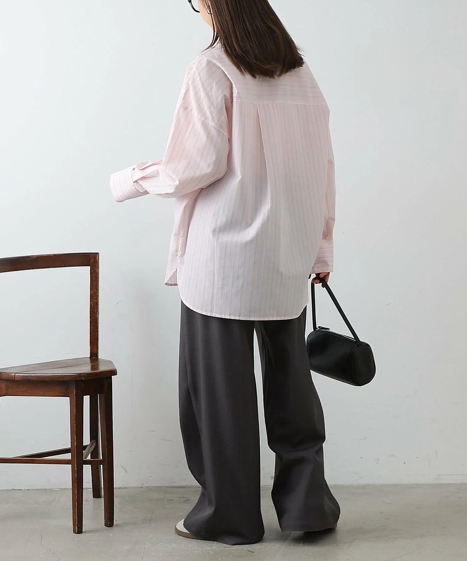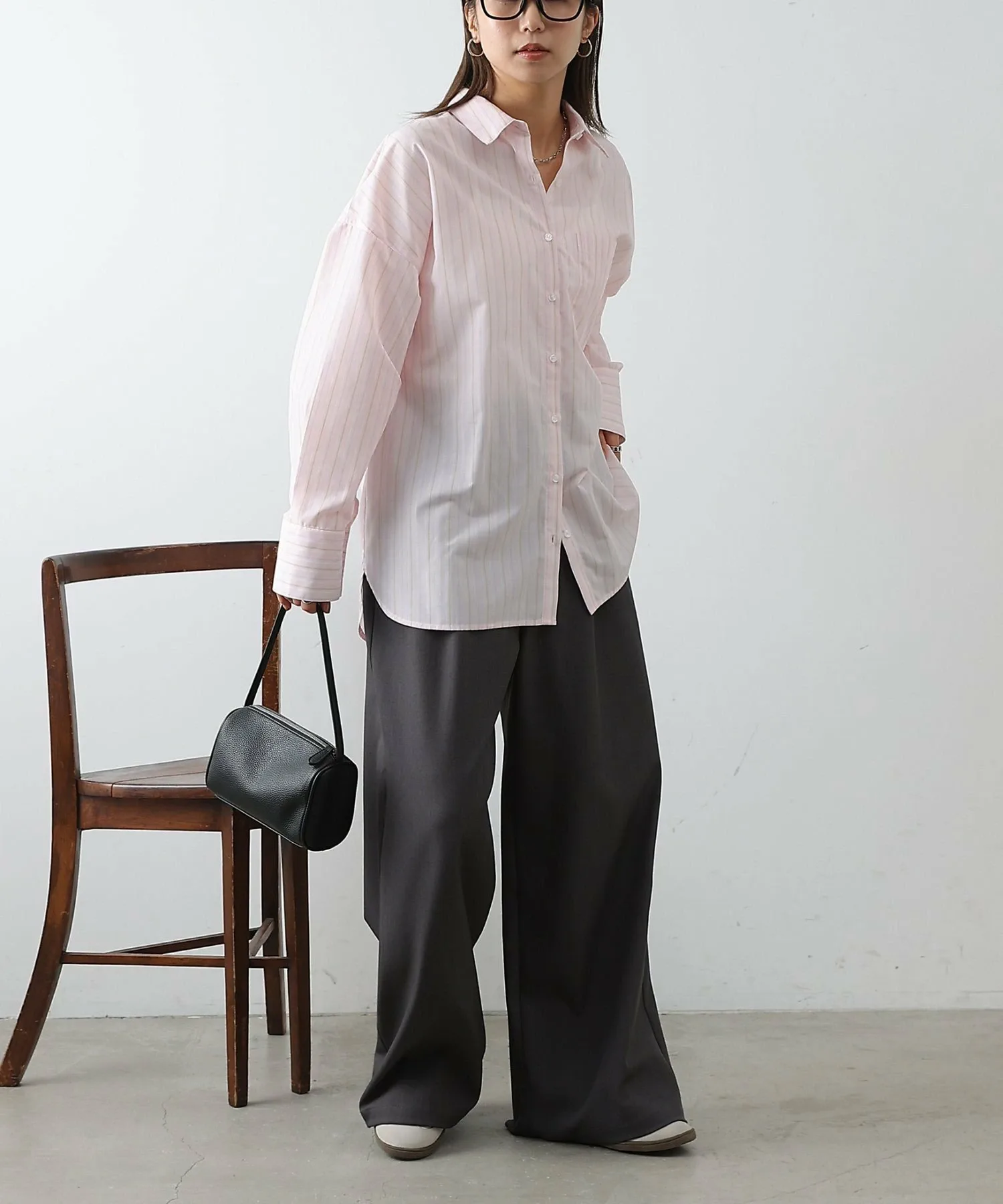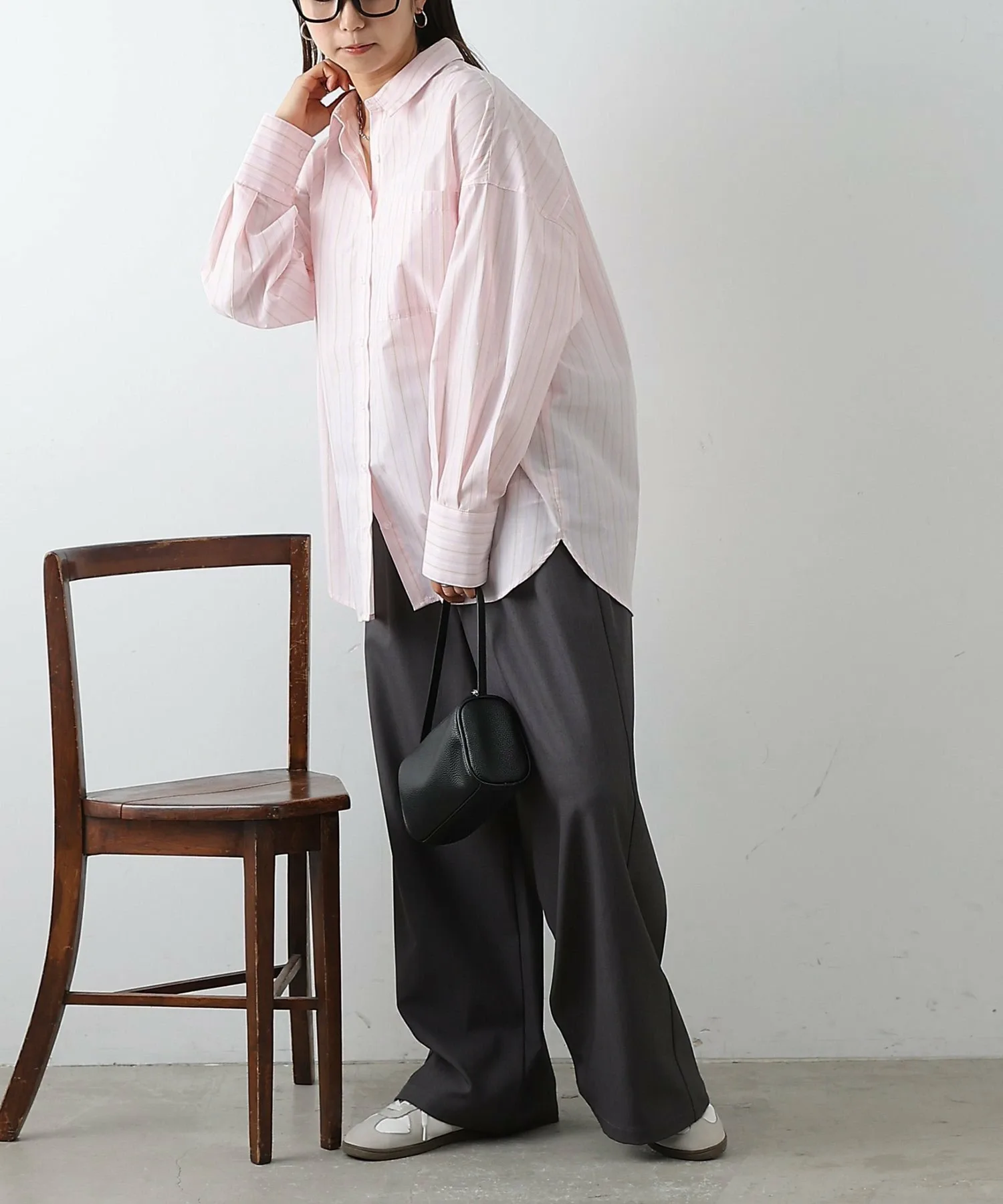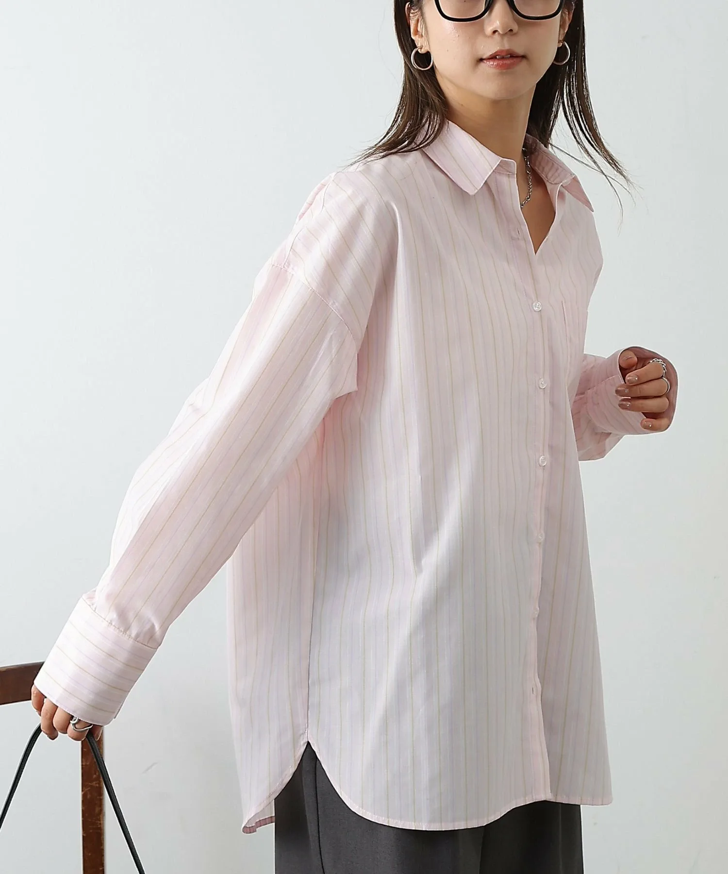 Объёмная рубашка большого размера сама по себе создаёт утончённое впечатление.
