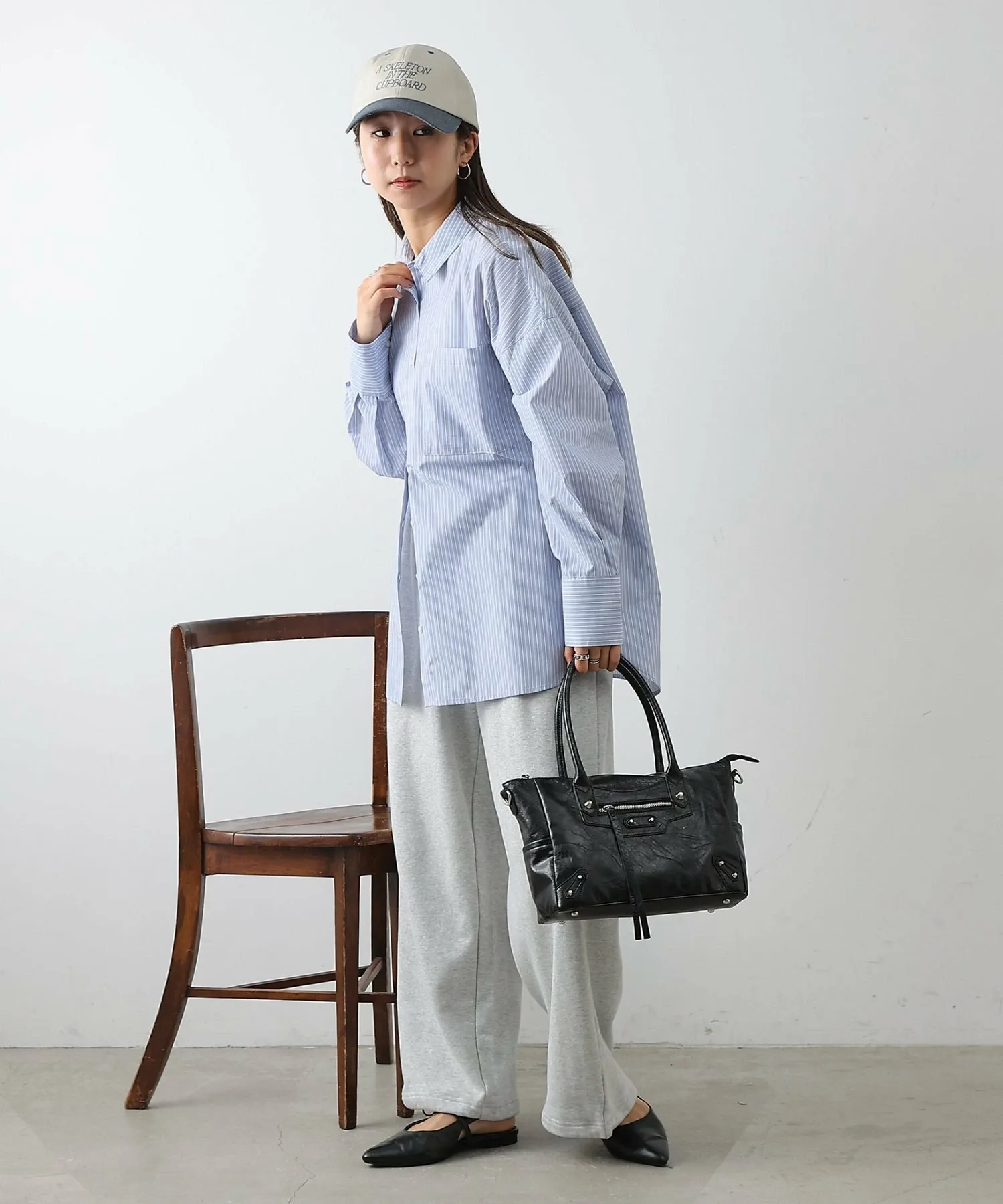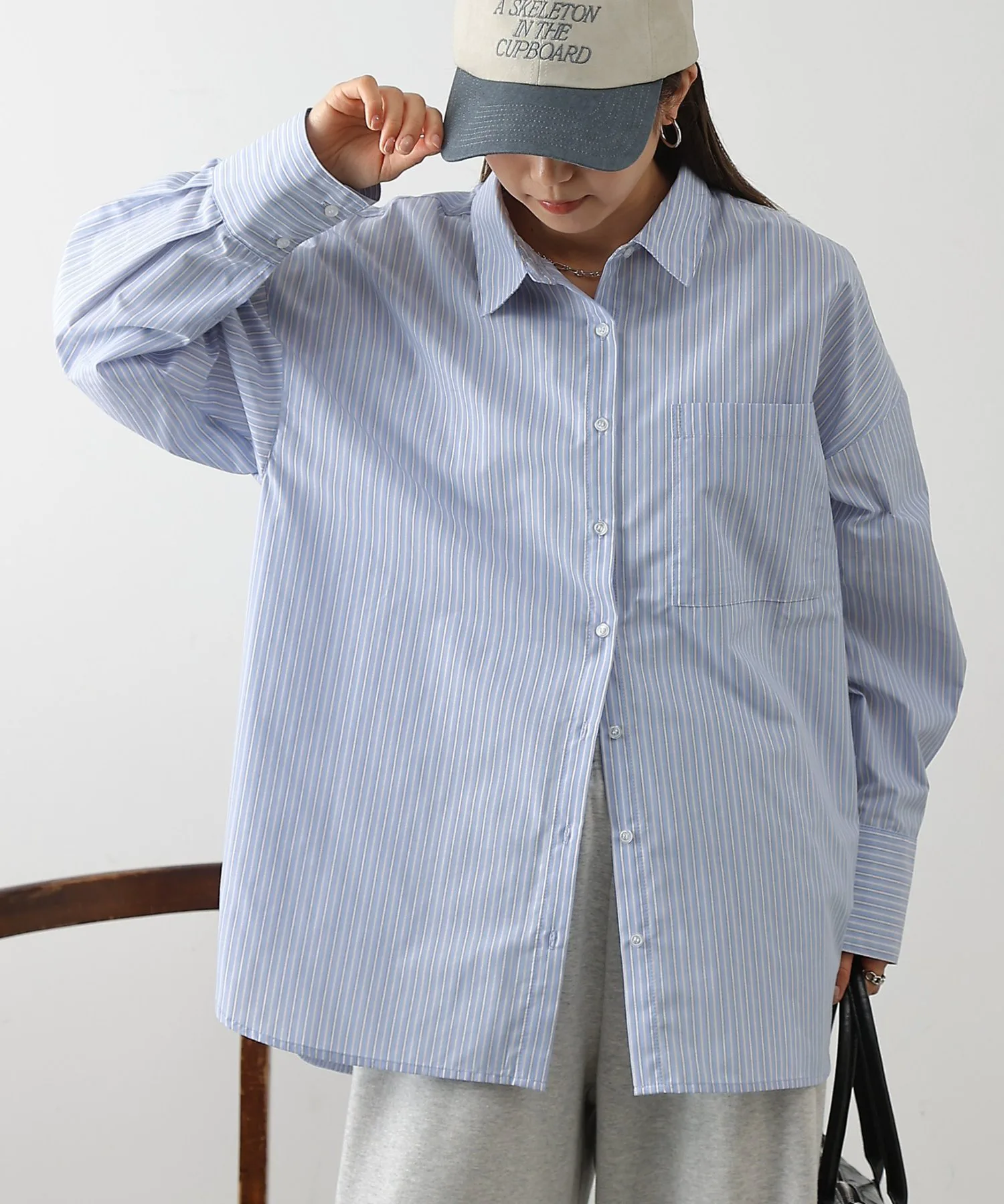 Объёмная рубашка большого размера сама по себе создаёт утончённое впечатление.