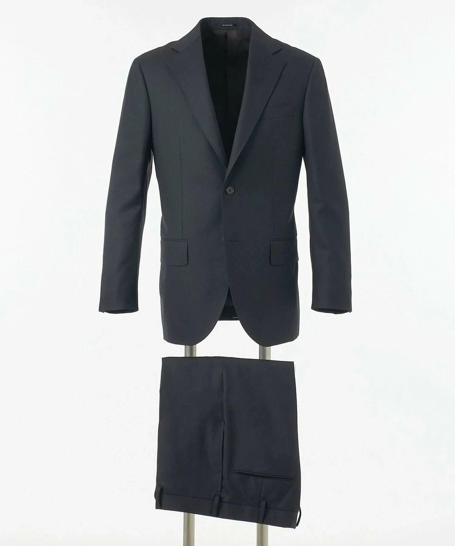 Мы предлагаем летний базовый костюм в тропическом стиле, сшитый из двухслойной нити плотностью 52 нити на дюйм, которую британские портные высоко ценят как самую удобную в обработке и привлекательную при пошиве одежды. Этот темно-синий костюм сочетает в себе простоту и качество британских материалов, создавая традиционный стиль, который выделяется в любой летней обстановке.