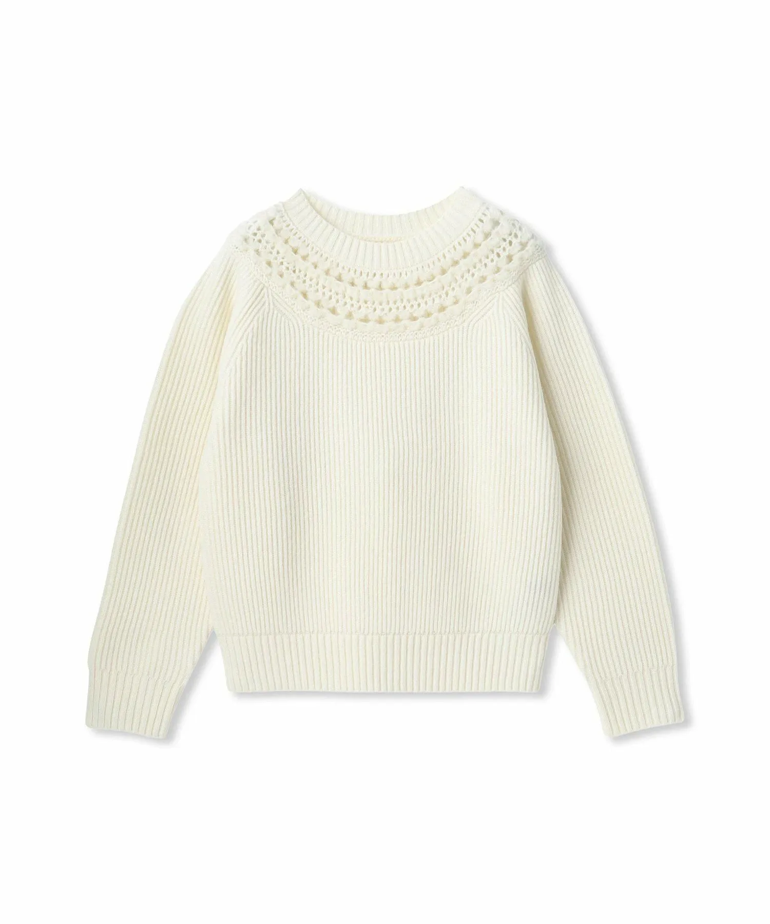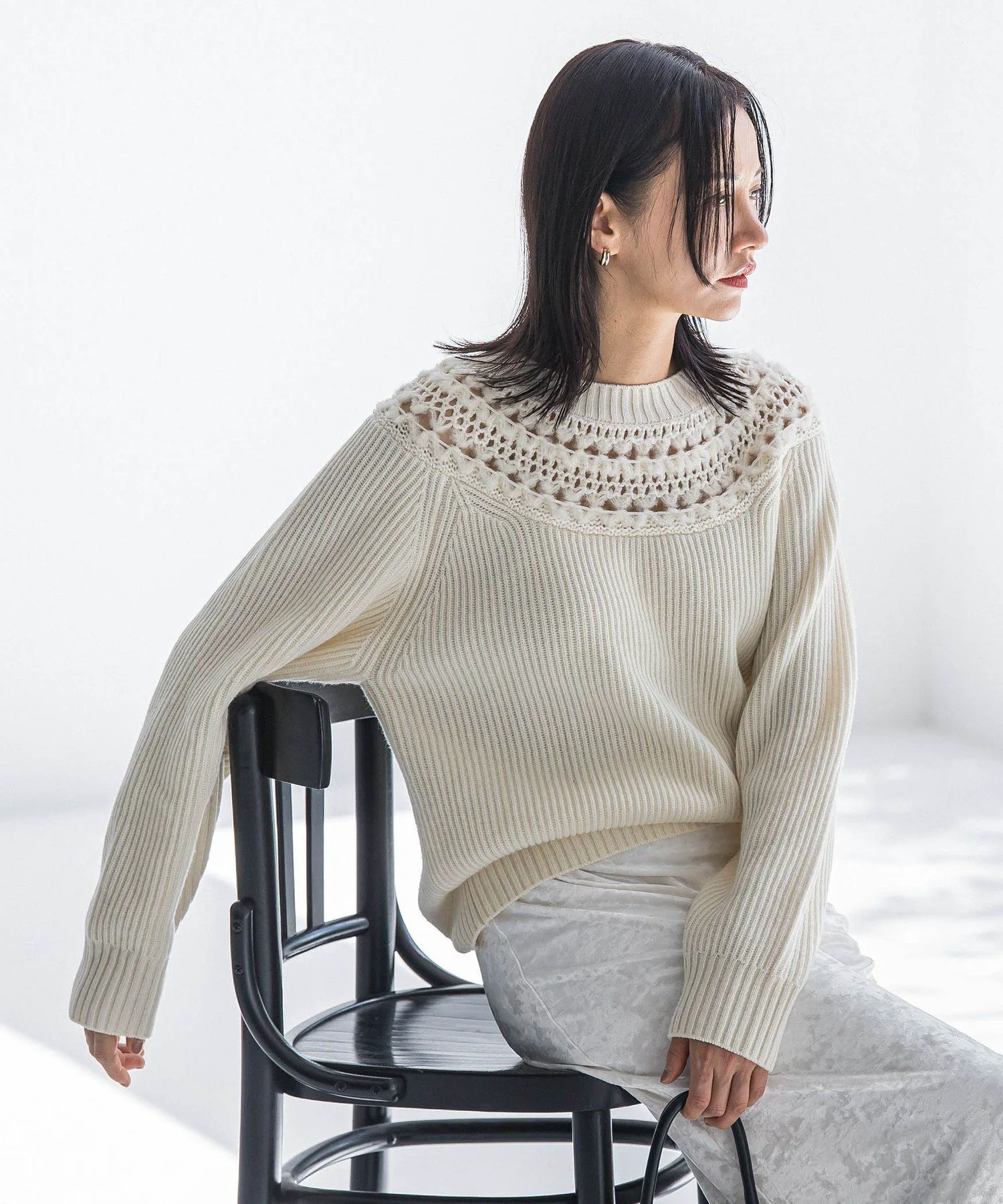 Вязаный пуловер с ажурной вязкой вокруг горловины в скандинавском стиле.