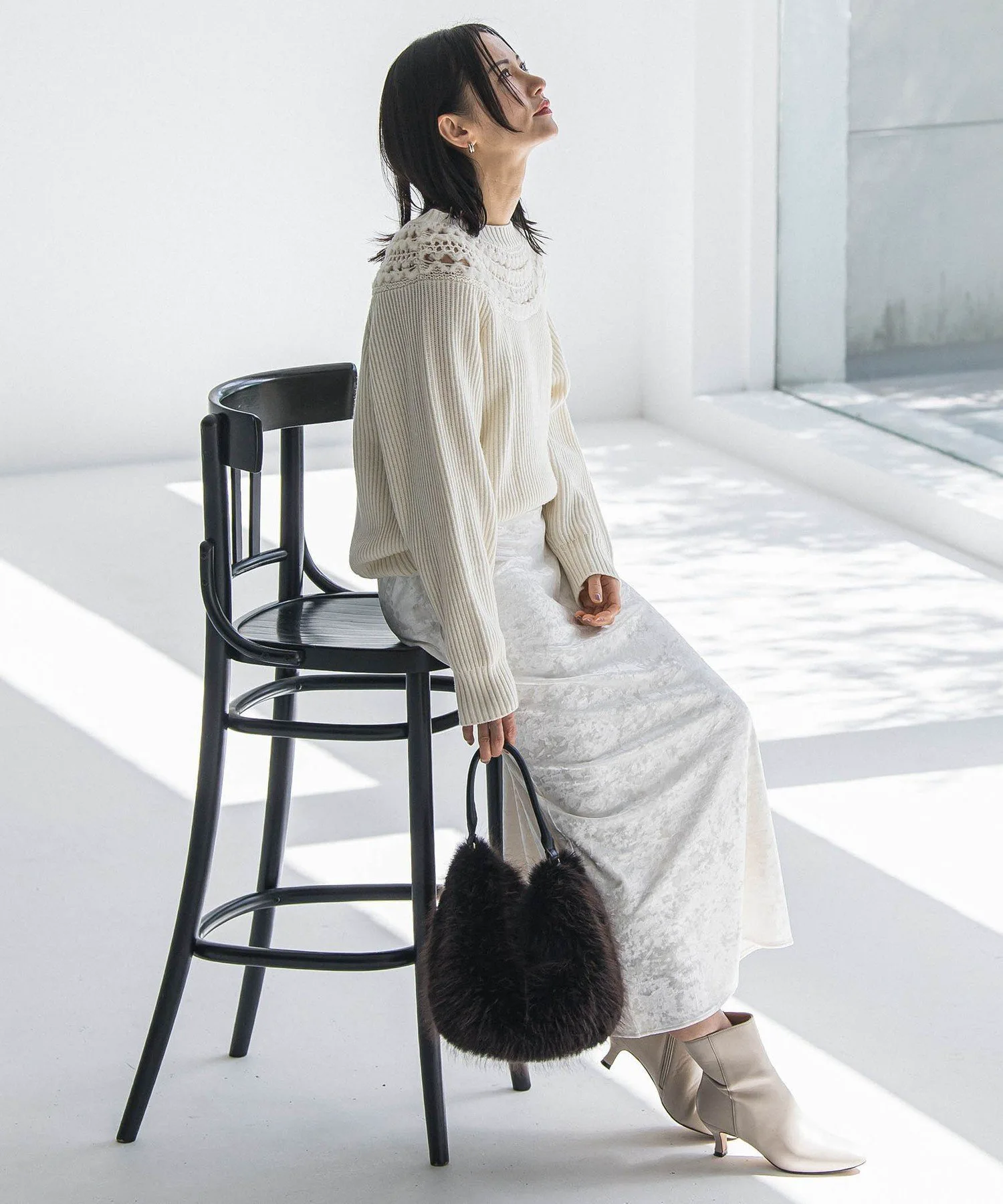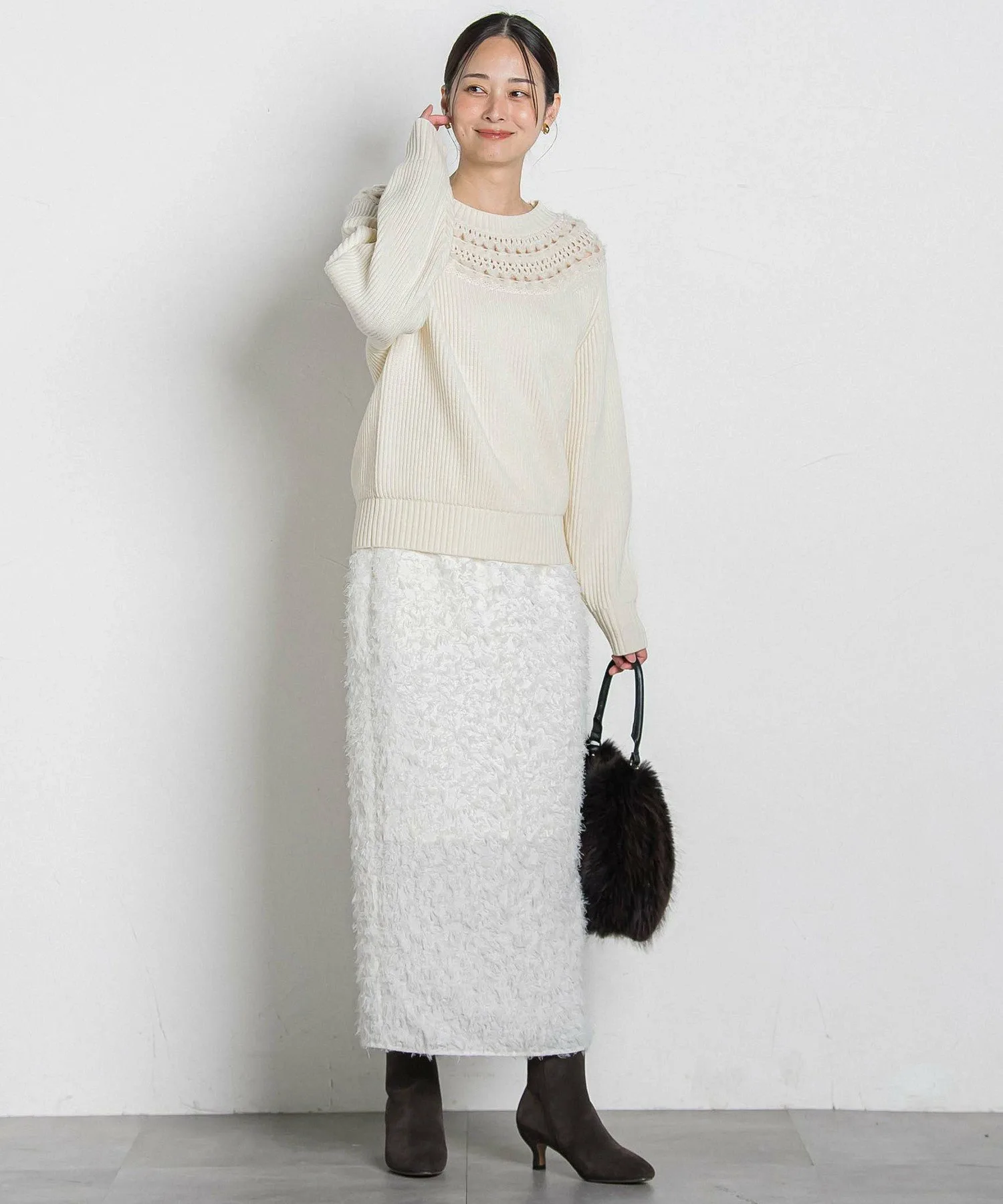 Мягкая петлевая пряжа в сочетании с ажурной вязкой добавляет ощущение пушистости и тепла.