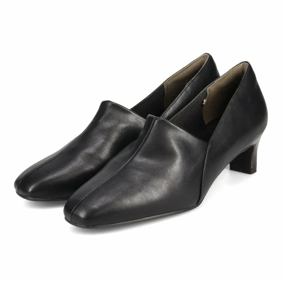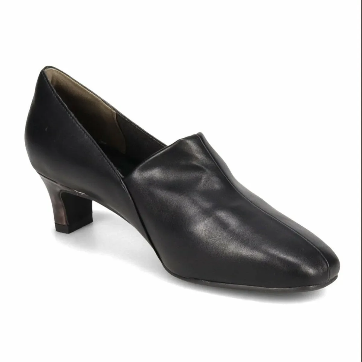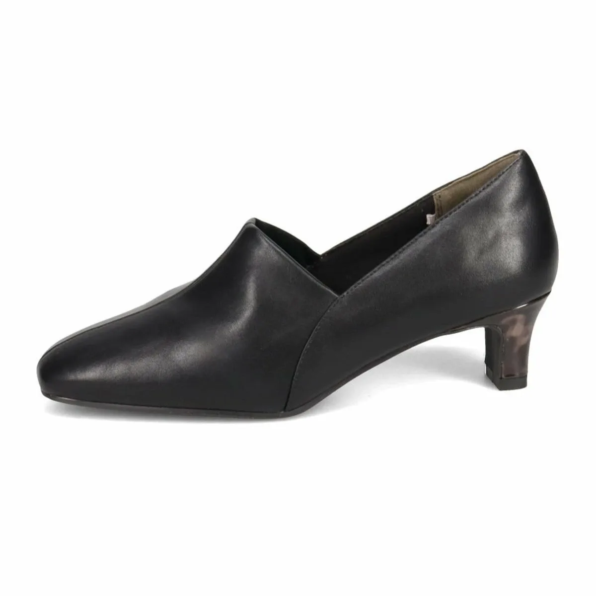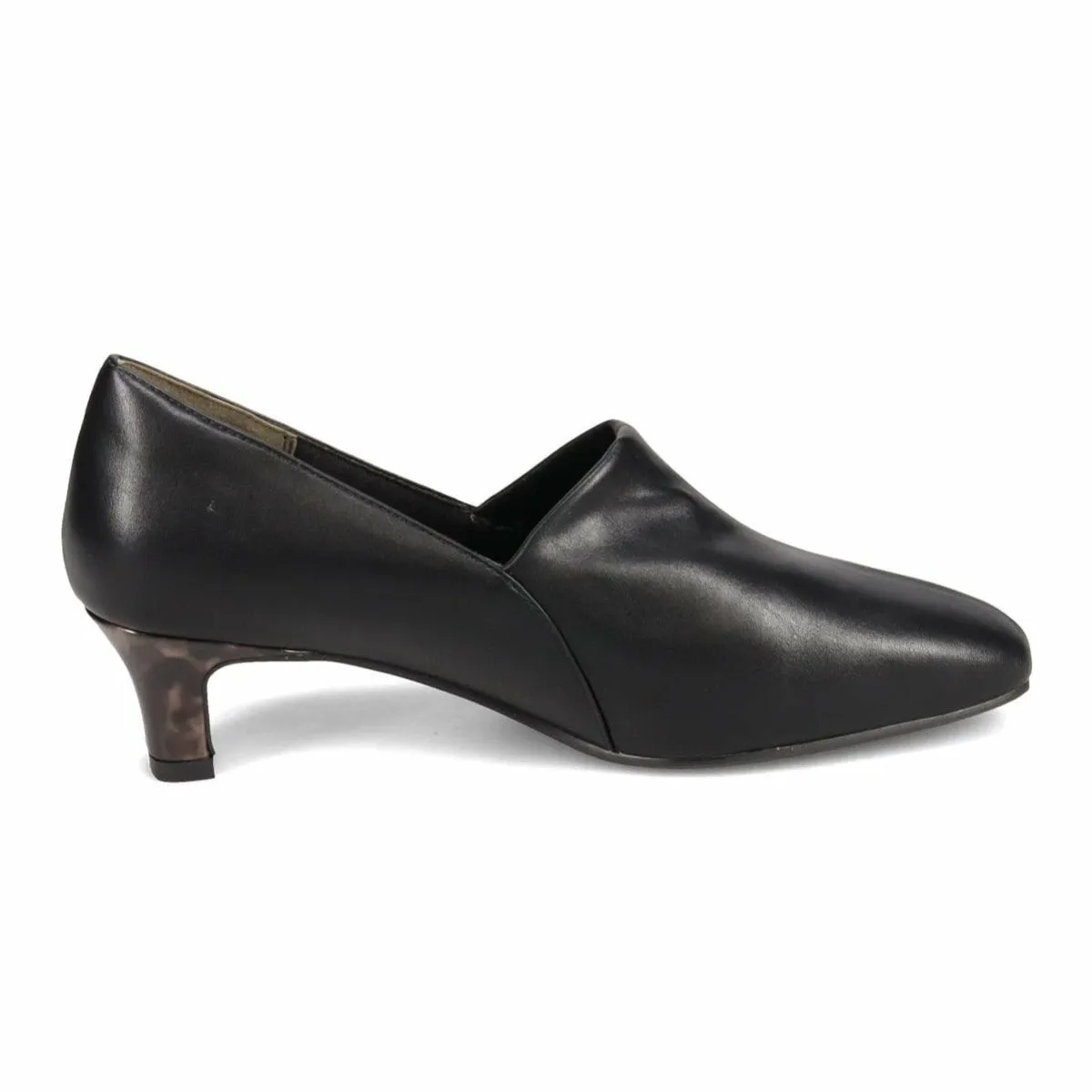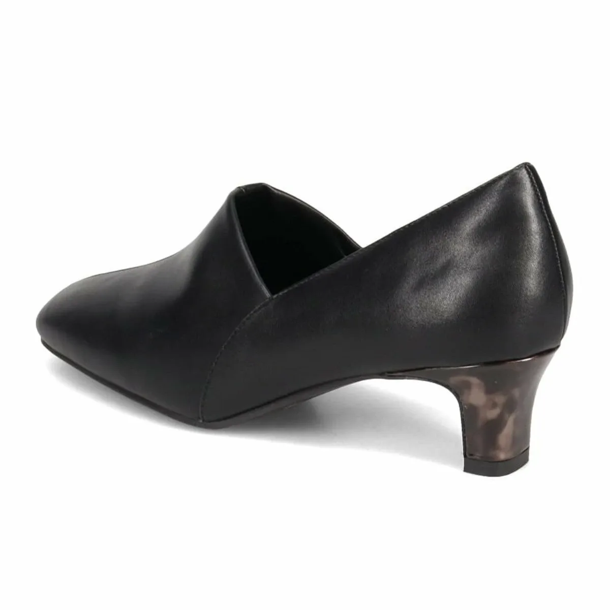 Верх простой, но каблук с эмалью в стиле черепаховой панцири добавляет стильный штрих.