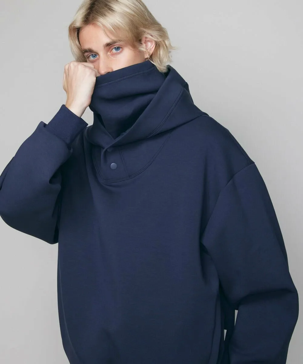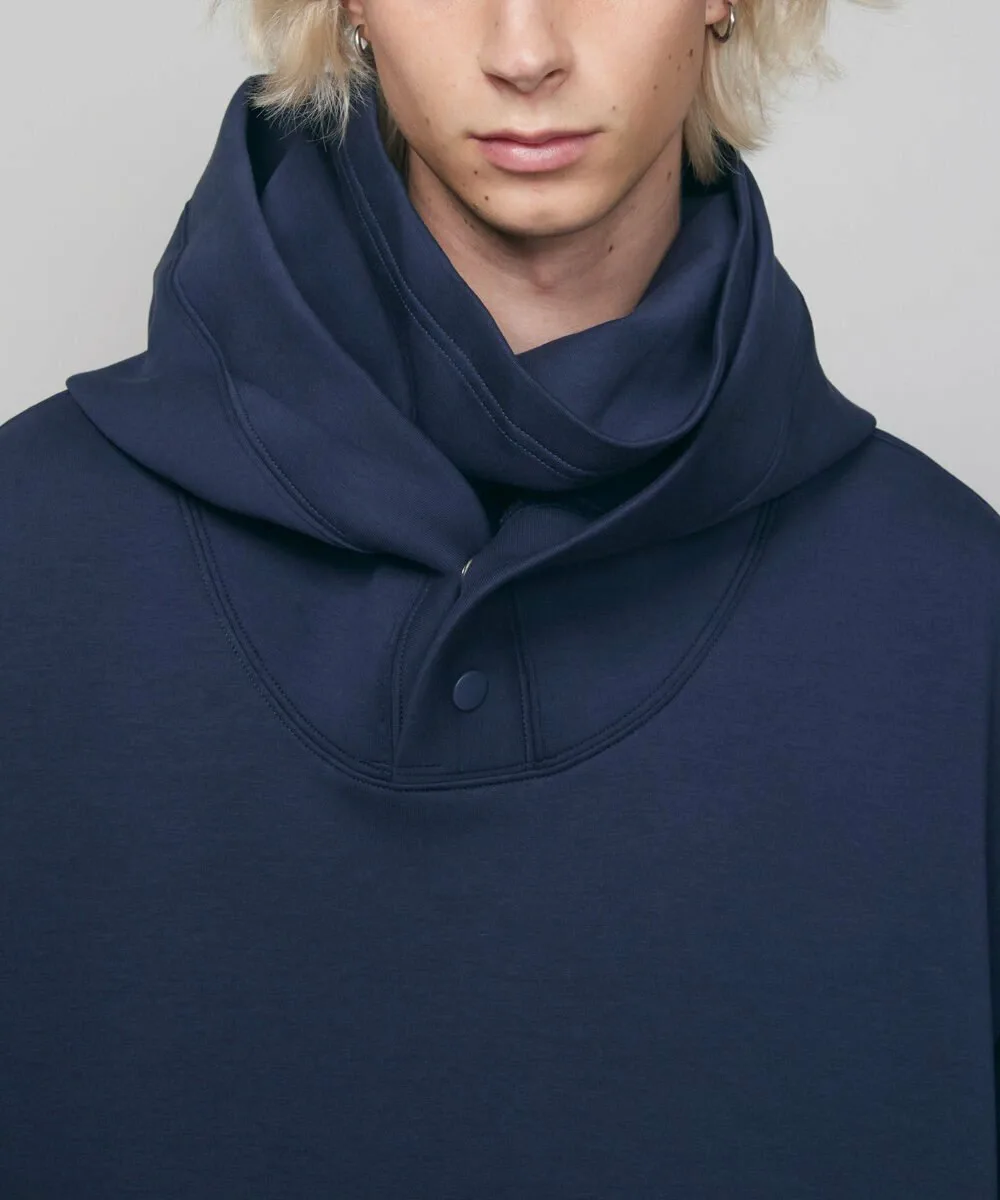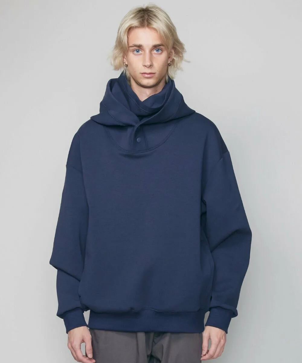 Эта толстовка с капюшоном состоит из двух слоев: капюшона и внутреннего воротника-стойки.