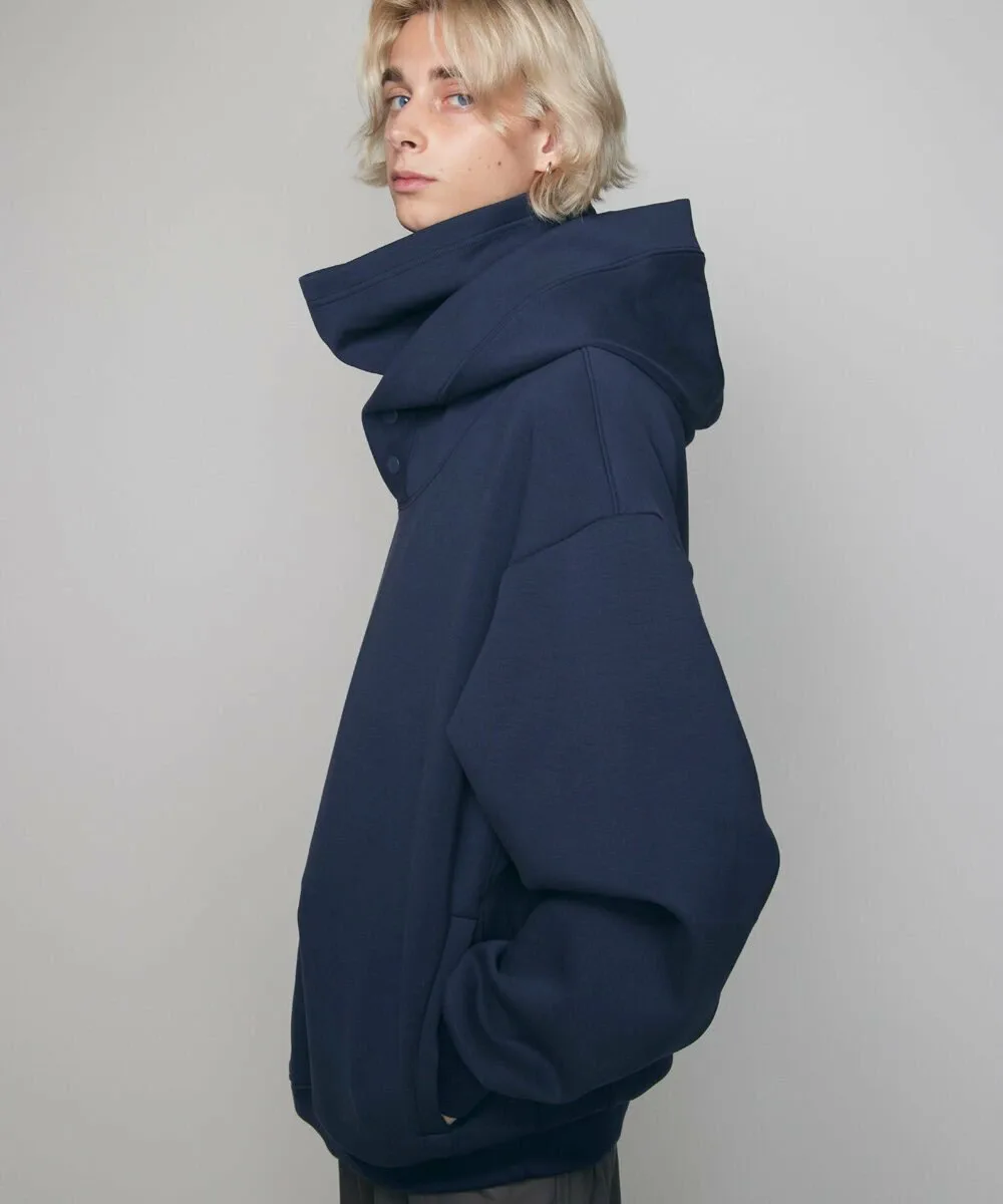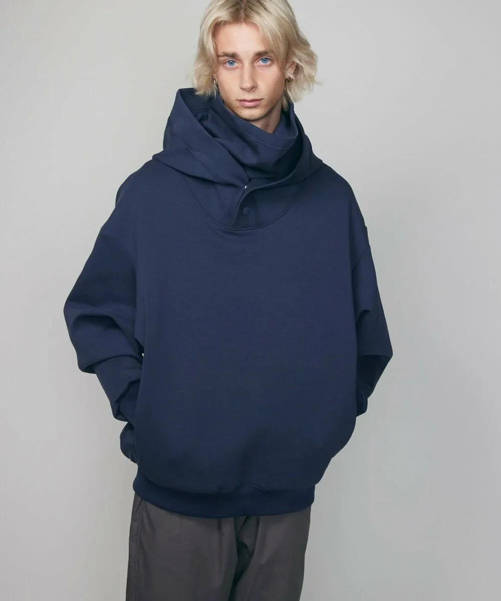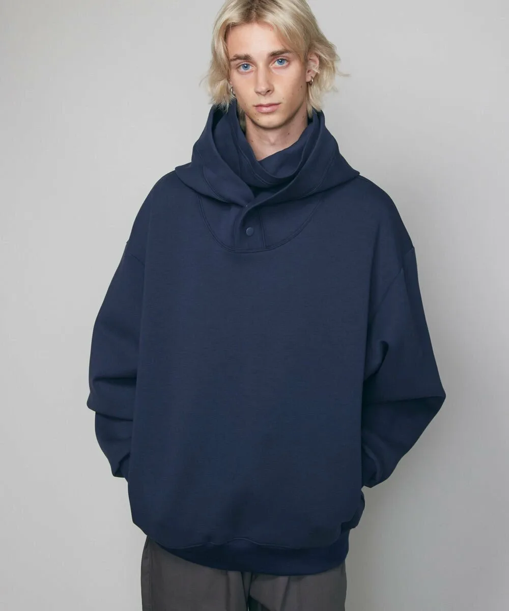 Эта толстовка с капюшоном состоит из двух слоев: капюшона и внутреннего воротника-стойки.