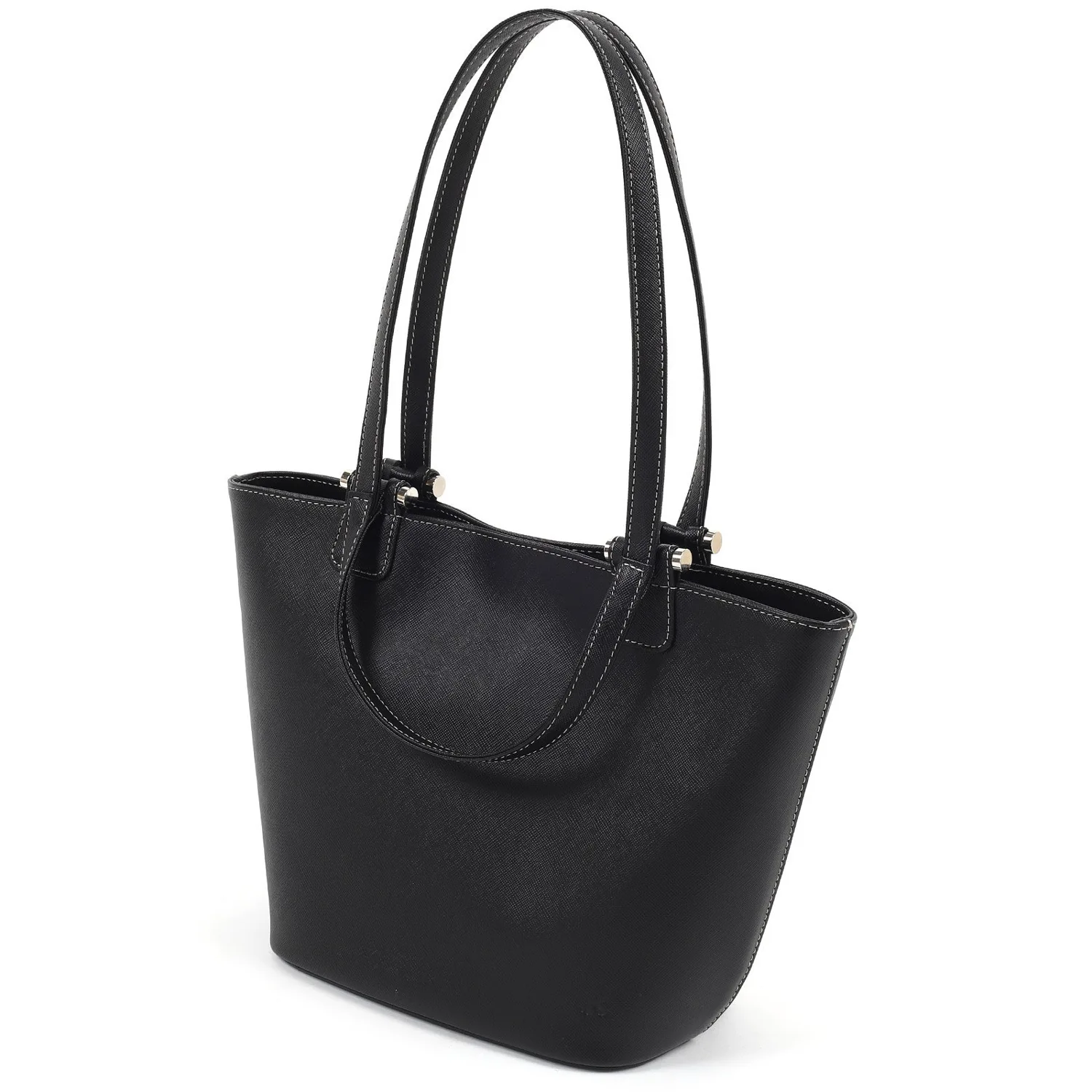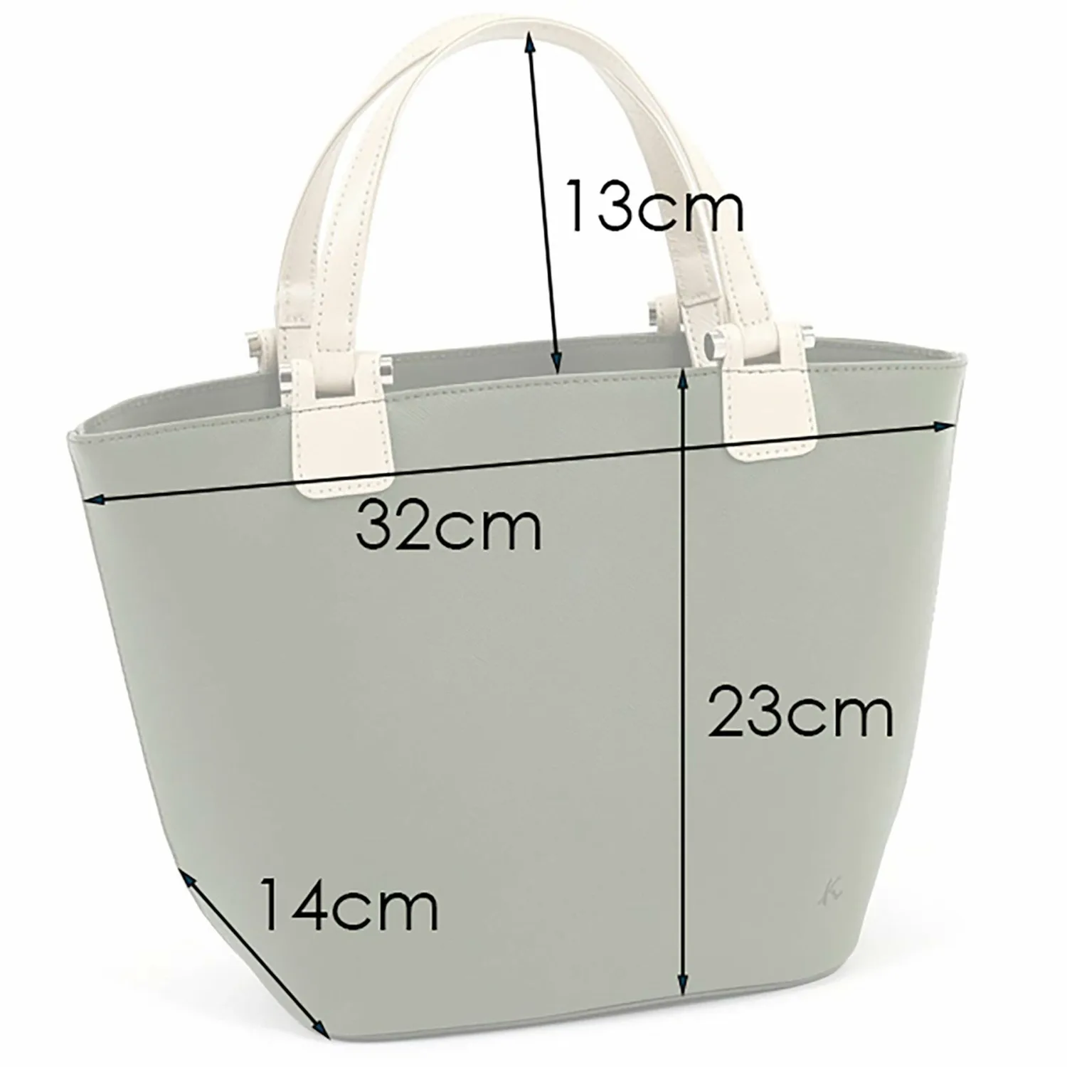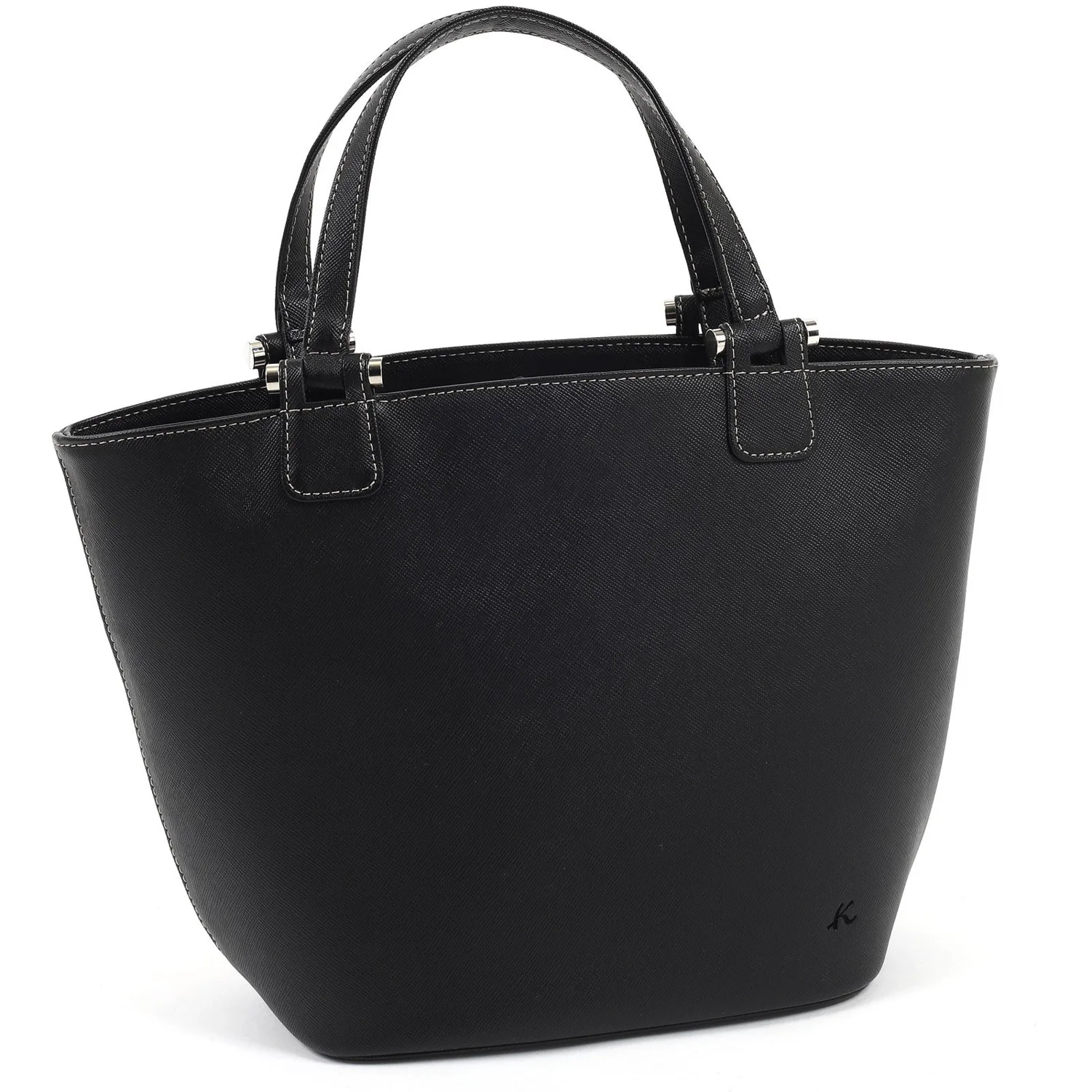 Эта сумка с двумя ручками имеет две ручки разной длины. При ношении преимущественно в руке, полуплечевые ручки можно заправить внутрь для более аккуратного вида. Она изготовлена из тисненой коровьей кожи со слегка плотной текстурой, что делает ее устойчивой к деформации и царапинам. Она достаточно вместительна для хранения складного зонта, кошелька и бутылки с водой, что делает ее удобной для повседневного использования. Логотип K едва заметен в тиснении в правом нижнем углу.