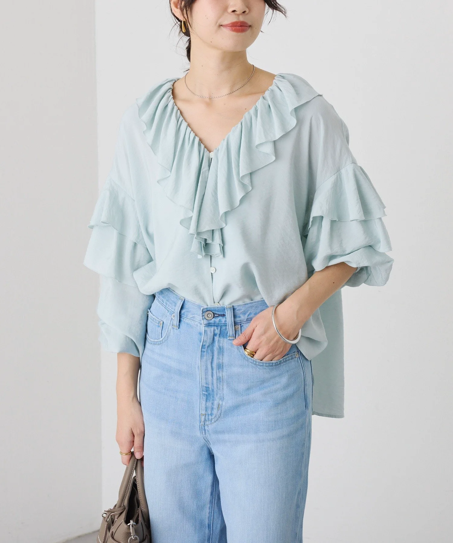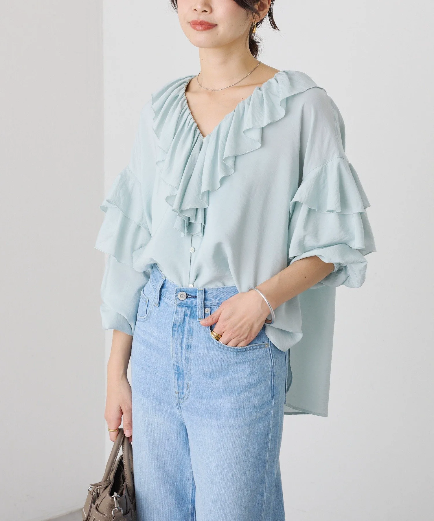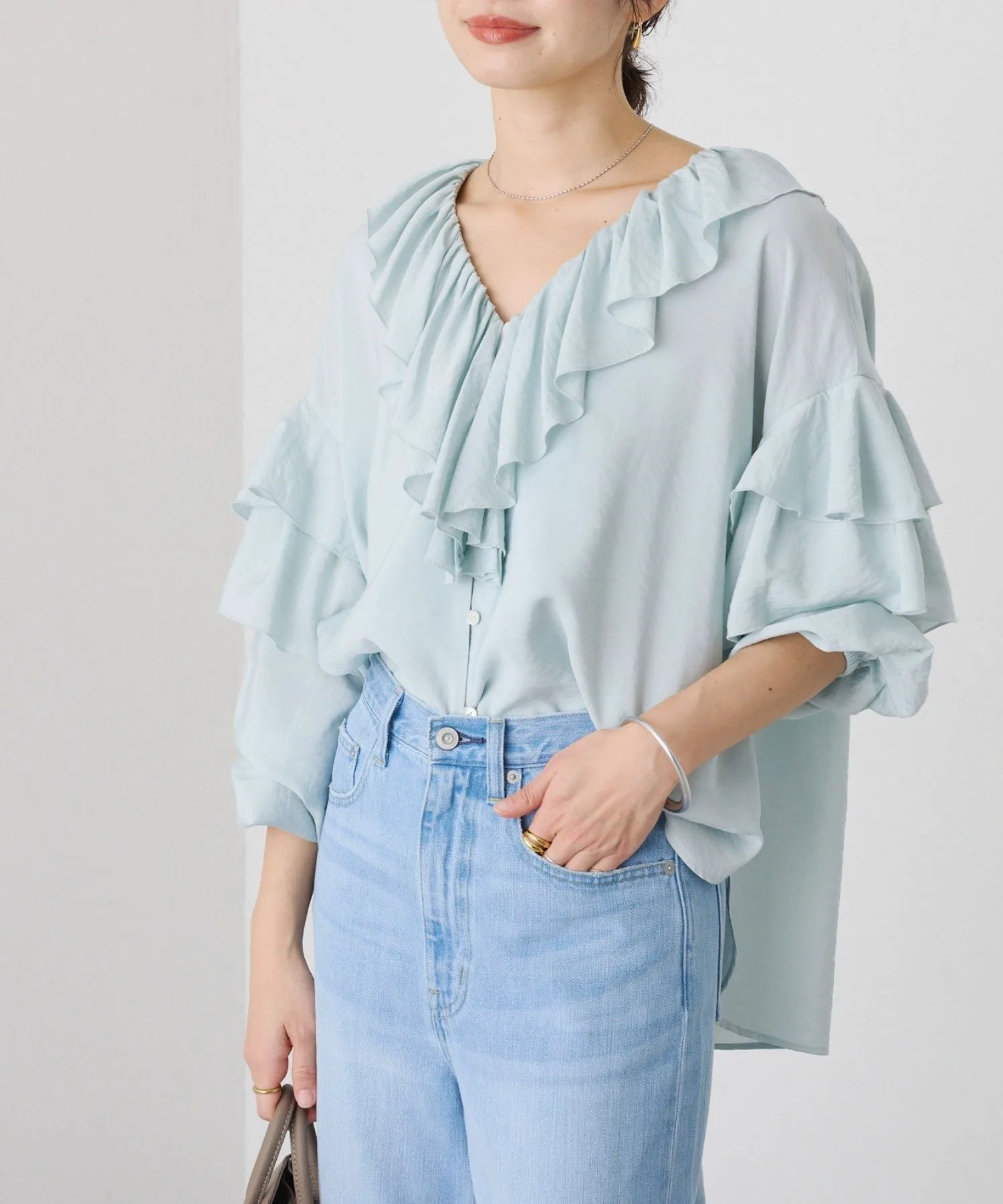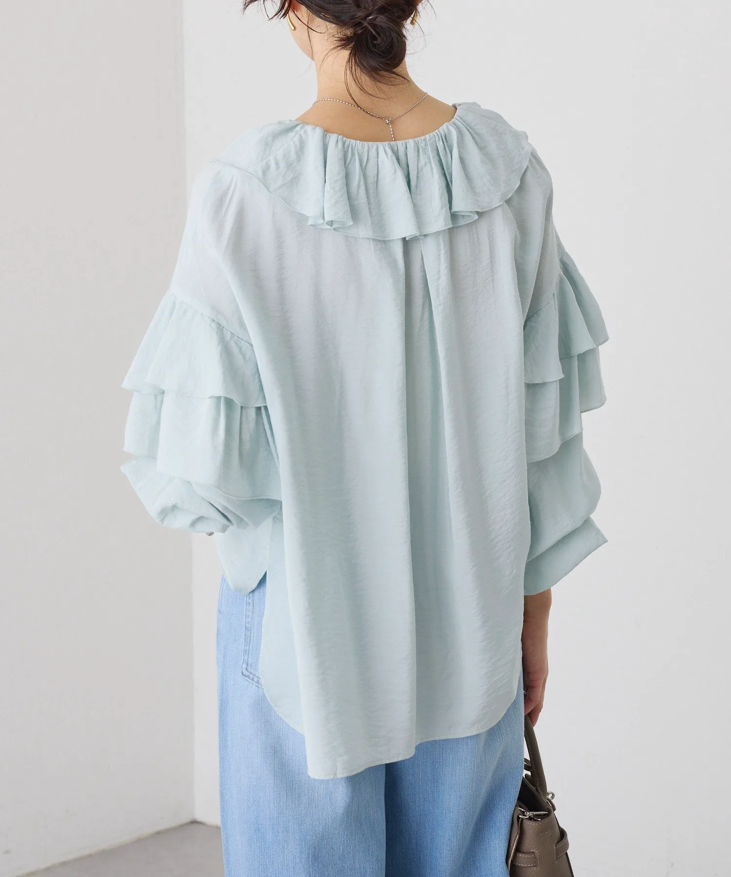 - Элегантная блузка с великолепными оборками на вырезе и рукавах