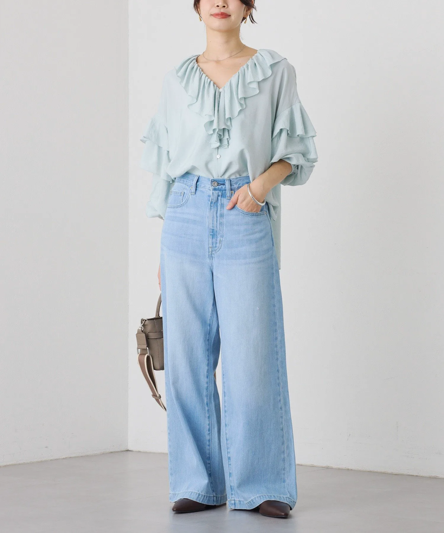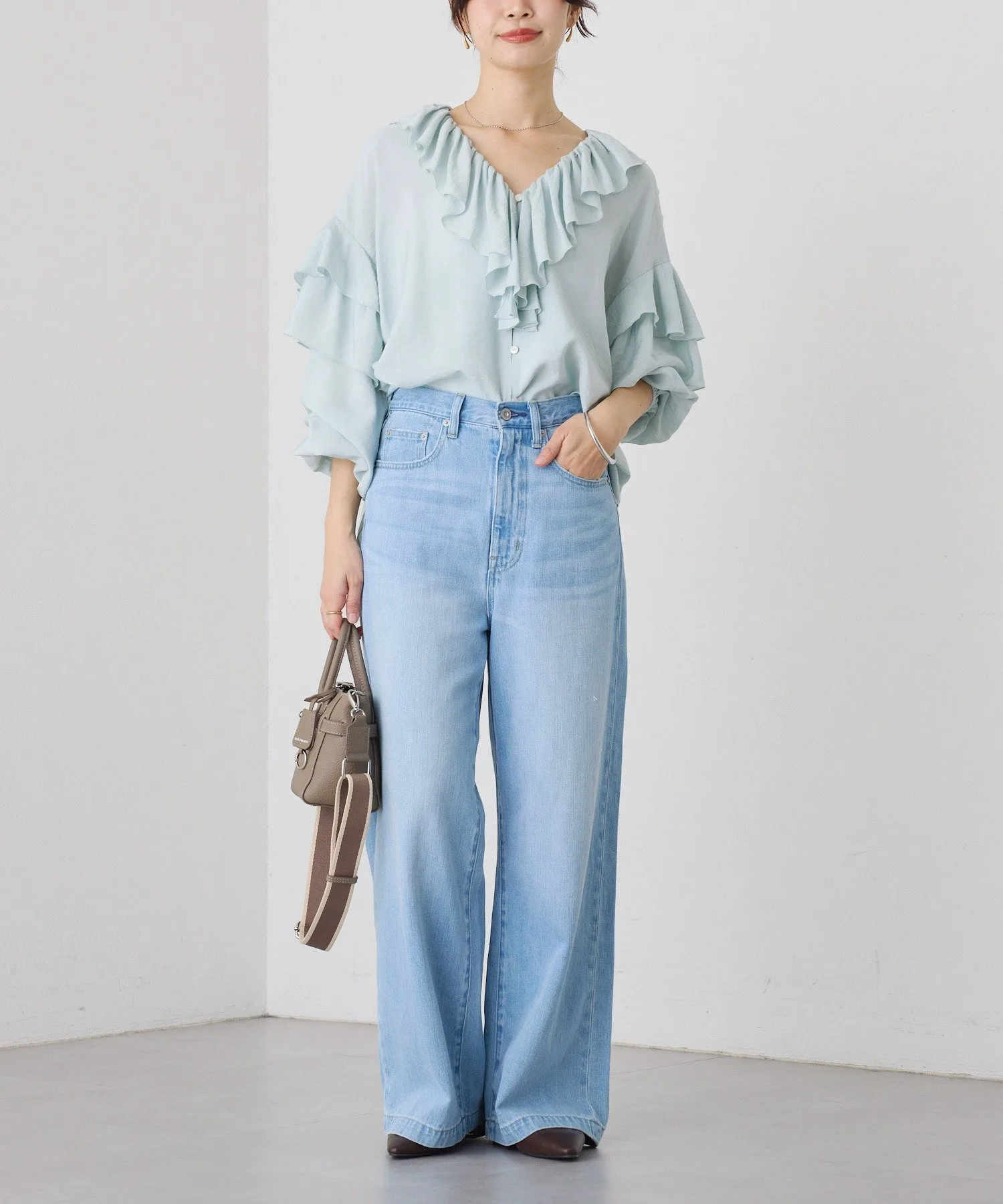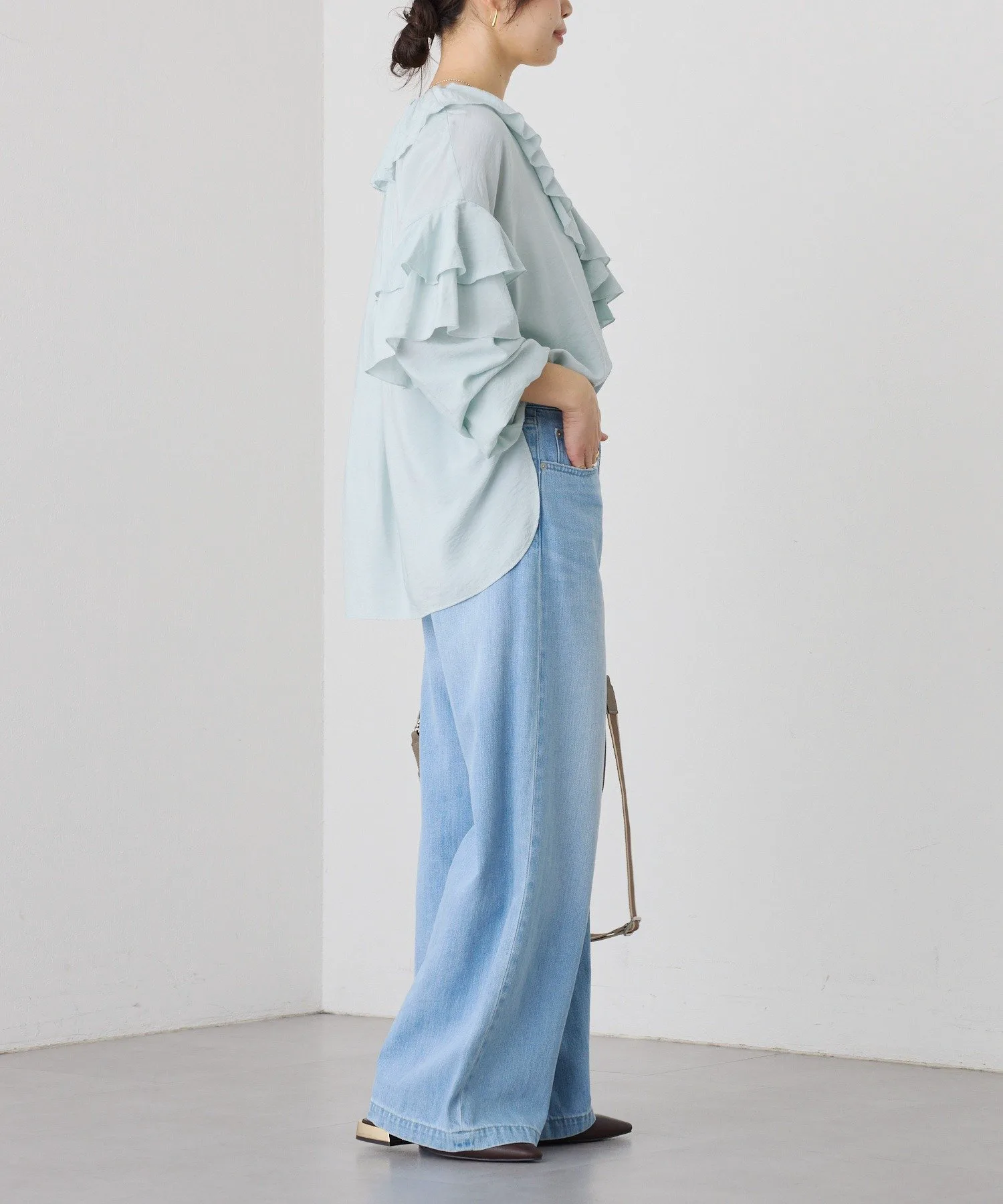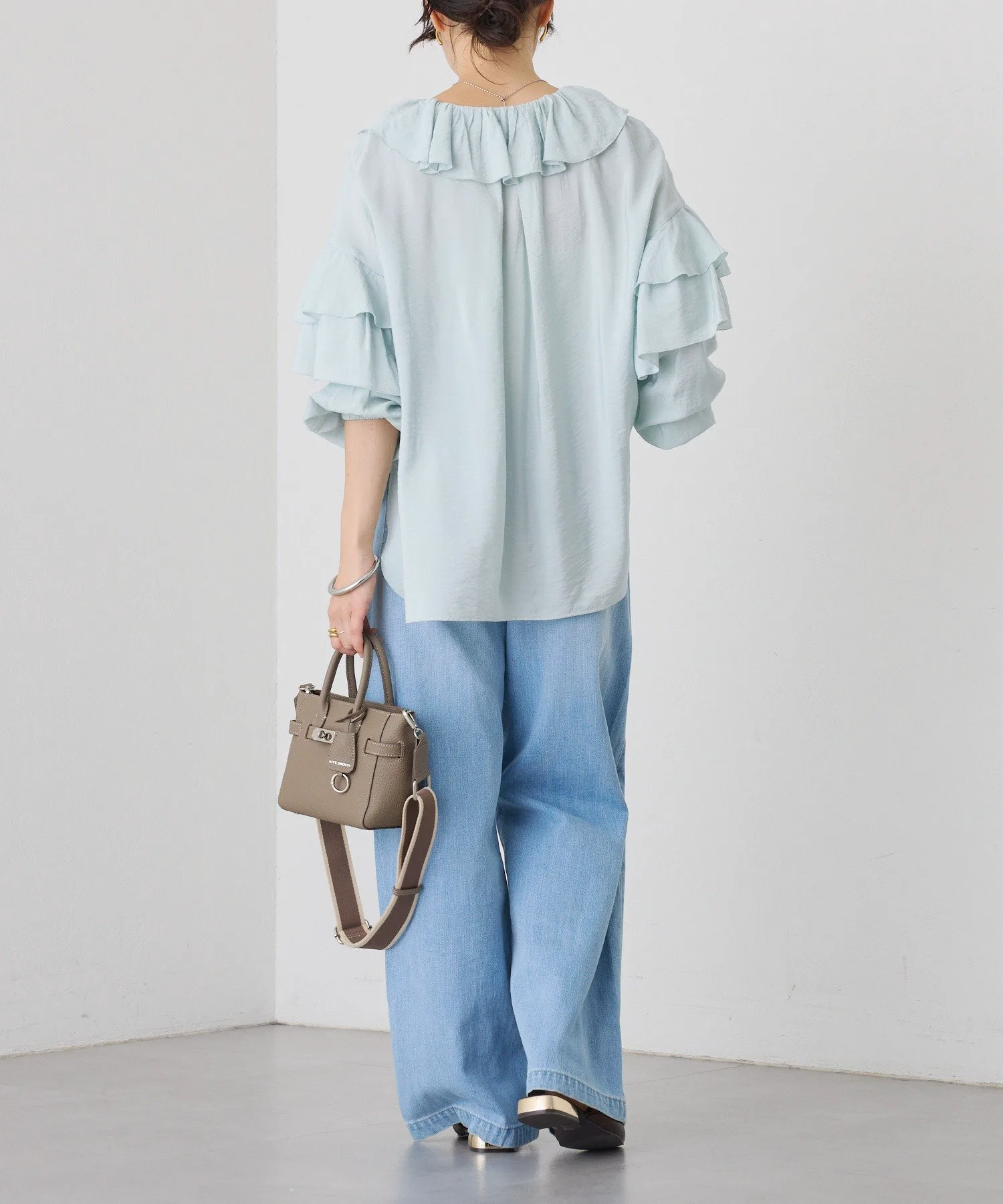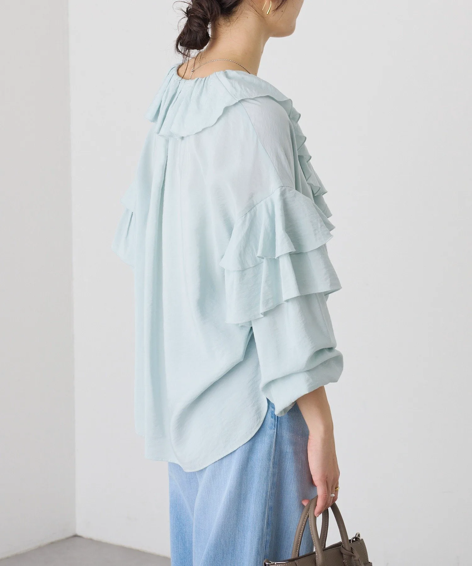 - Элегантная блузка с великолепными оборками на вырезе и рукавах