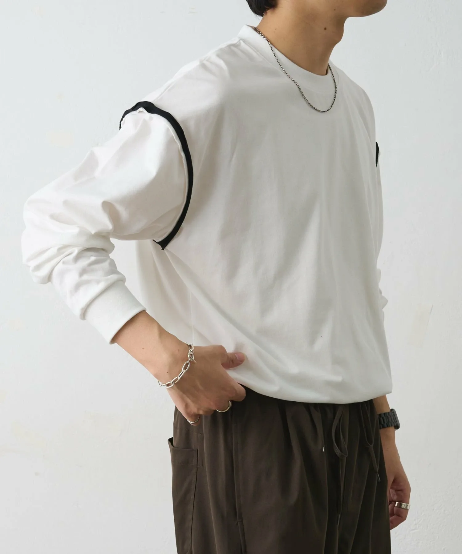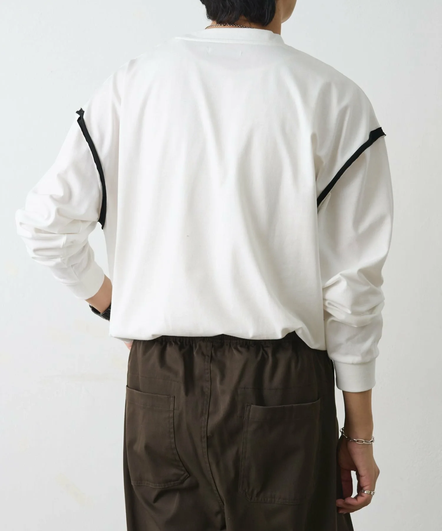 Эта футболка с длинными рукавами отличается уникальным акцентом в виде сочетающегося по цвету дизайна плеч.