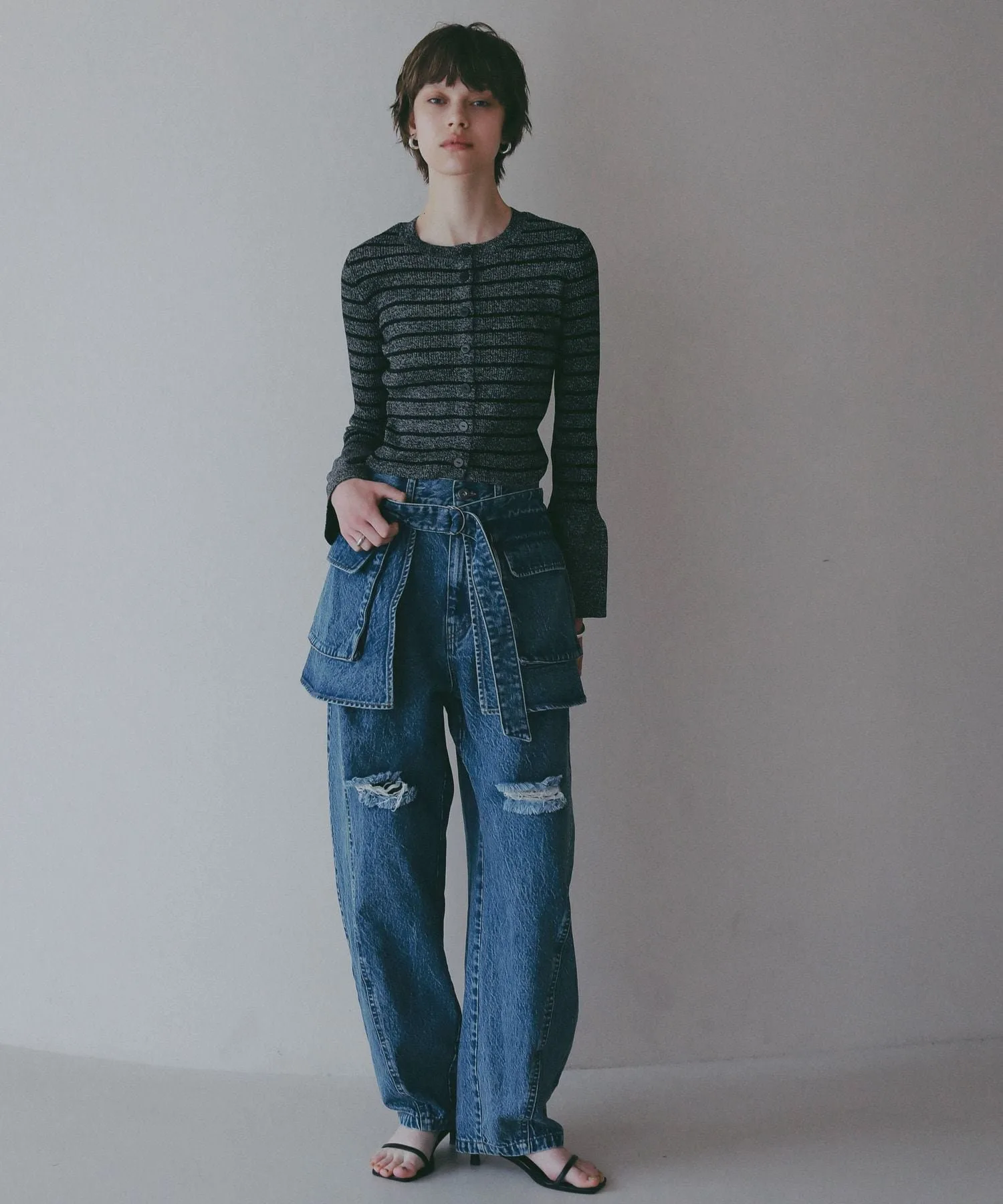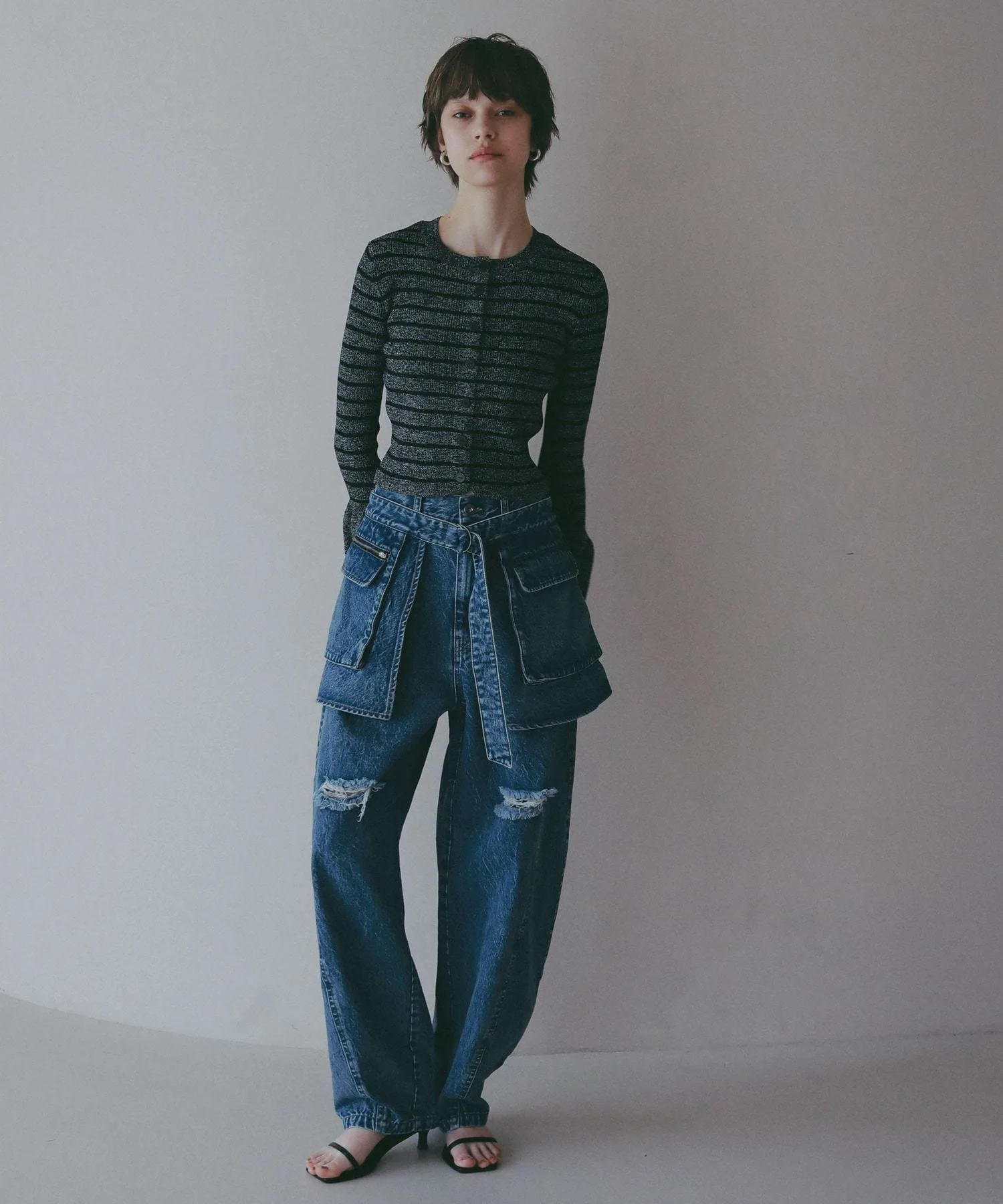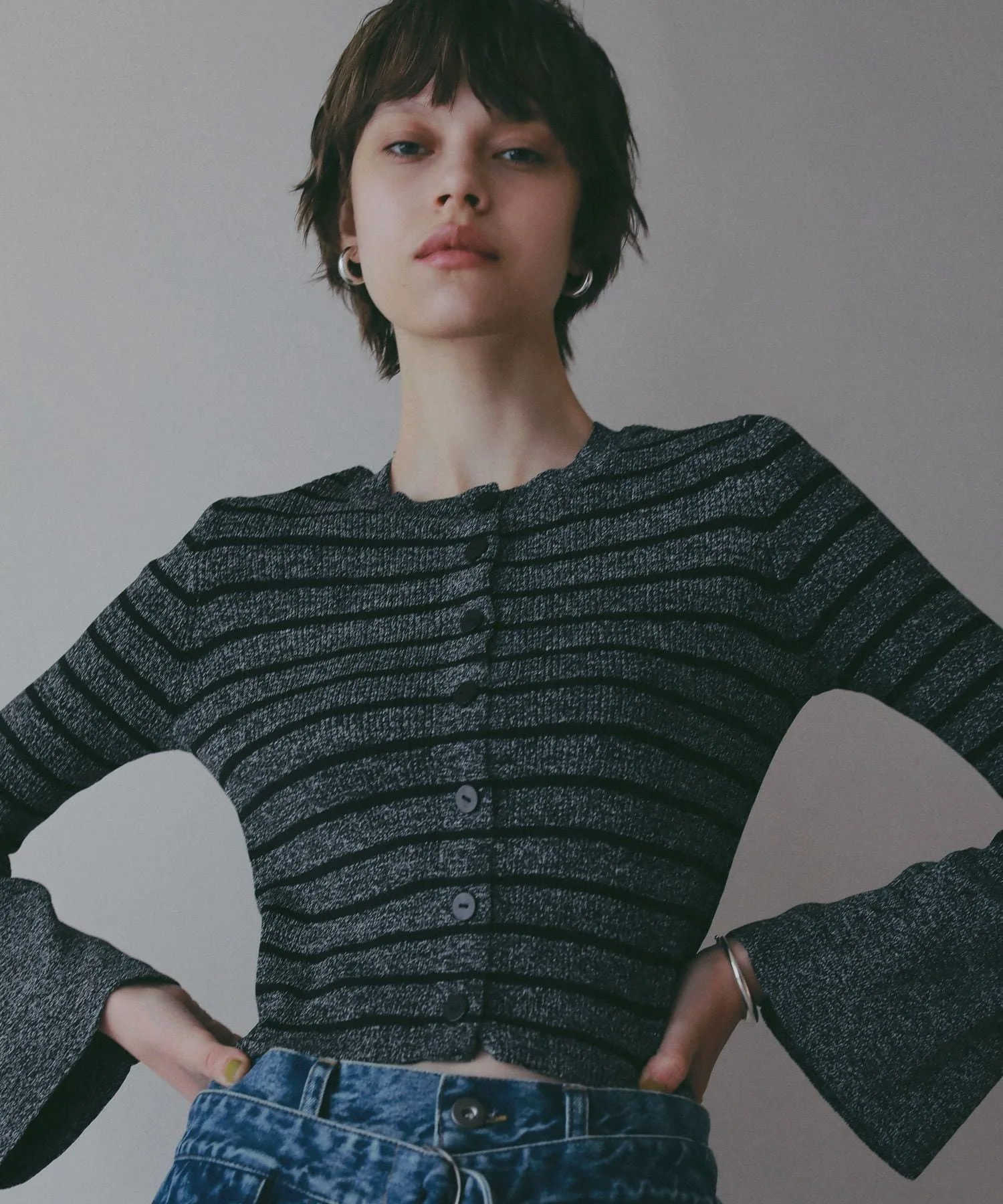Уникальный полосатый трикотаж из контрастных нитей и оборки на манжетах — главные изюминки.