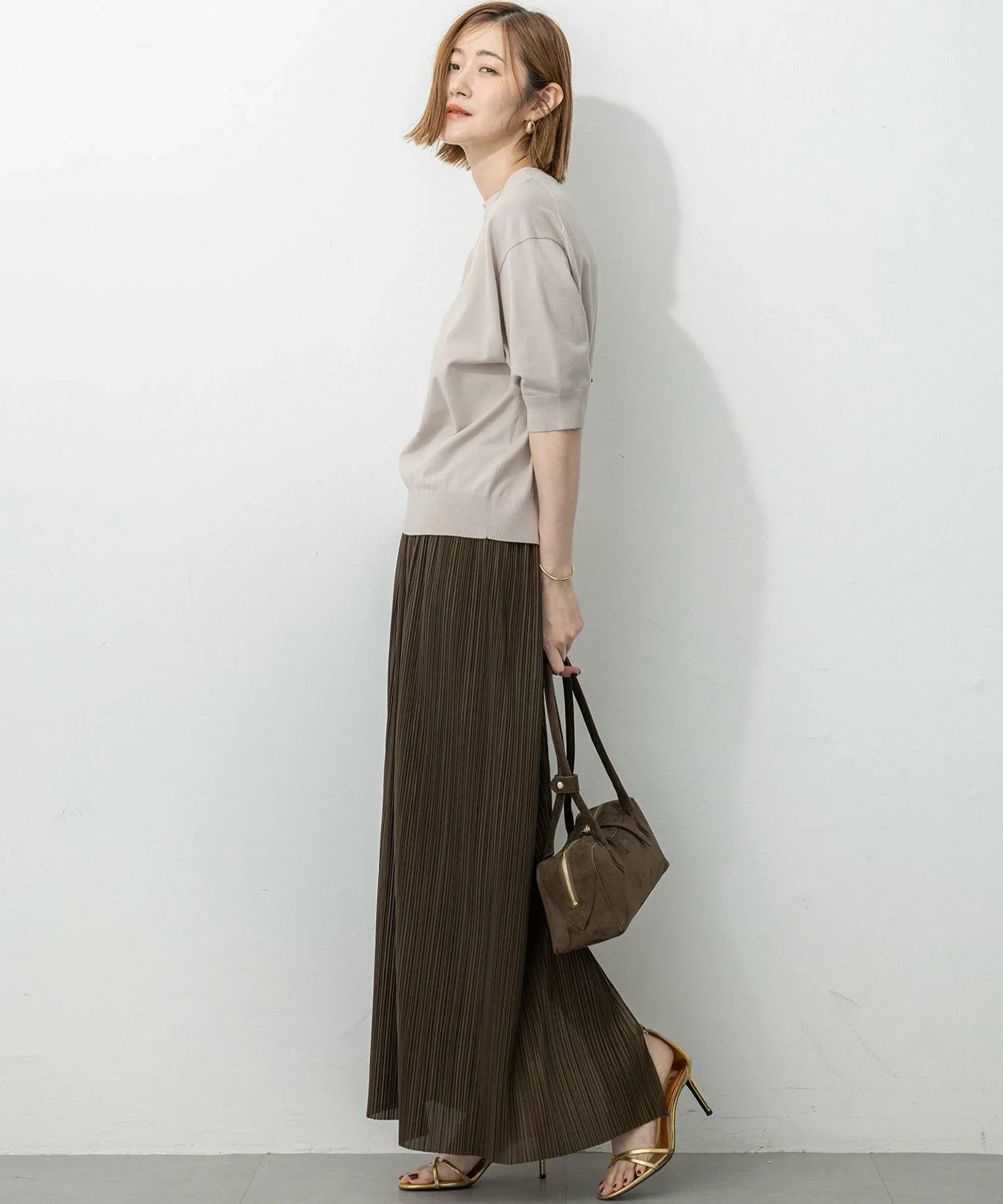 Популярный пуловер с пышными рукавами и красивым силуэтом. Изготовлен из тонкого, плотного трикотажа, который не подчеркивает линии тела. Низкий воротник-стойка придает шее чистый, элегантный вид, что делает его идеальным вариантом для перехода между сезонами. Он отлично смотрится сам по себе и сочетается с широким спектром стилей, от повседневного до нарядного. Сочетайте его с юбкой из того же материала для гармоничного образа, идеально подходящего для офиса. Он хорошо сочетается с любыми брюками и невероятно универсален. Доступен в семи цветах: чистый белый (#001), изысканный серый (#004), чистый черный (#005), привлекательный оранжевый (#020), мягкий бежевый (#033), женственный коричневый (#054) и акцентный синий (#070). Материал: Эта популярная серия изготовлена с использованием специального метода скручивания, при котором мягкая, упругая ультратонкая вискозная пряжа обматывается вокруг сердцевины из эластичной пряжи. Она обеспечивает мягкость и легкость, эластичность и комфорт. Легкий блеск и плотная текстура создают изысканный вид. Можно стирать вручную и легко вешать, ткань сохраняет свою форму даже после сушки. Материал идеально подходит для переходного периода между сезонами. *Изображение является образцом; фактический продукт может отличаться по характеристикам.