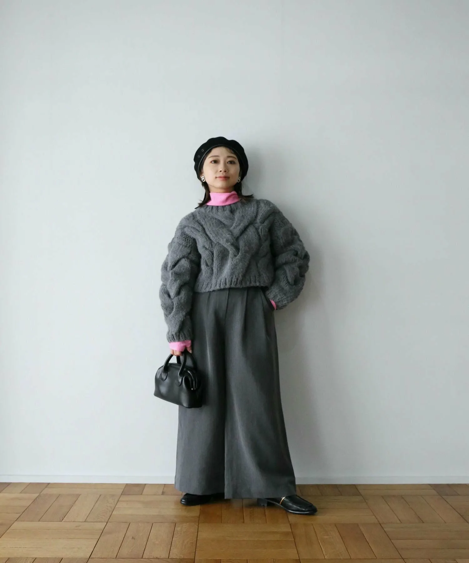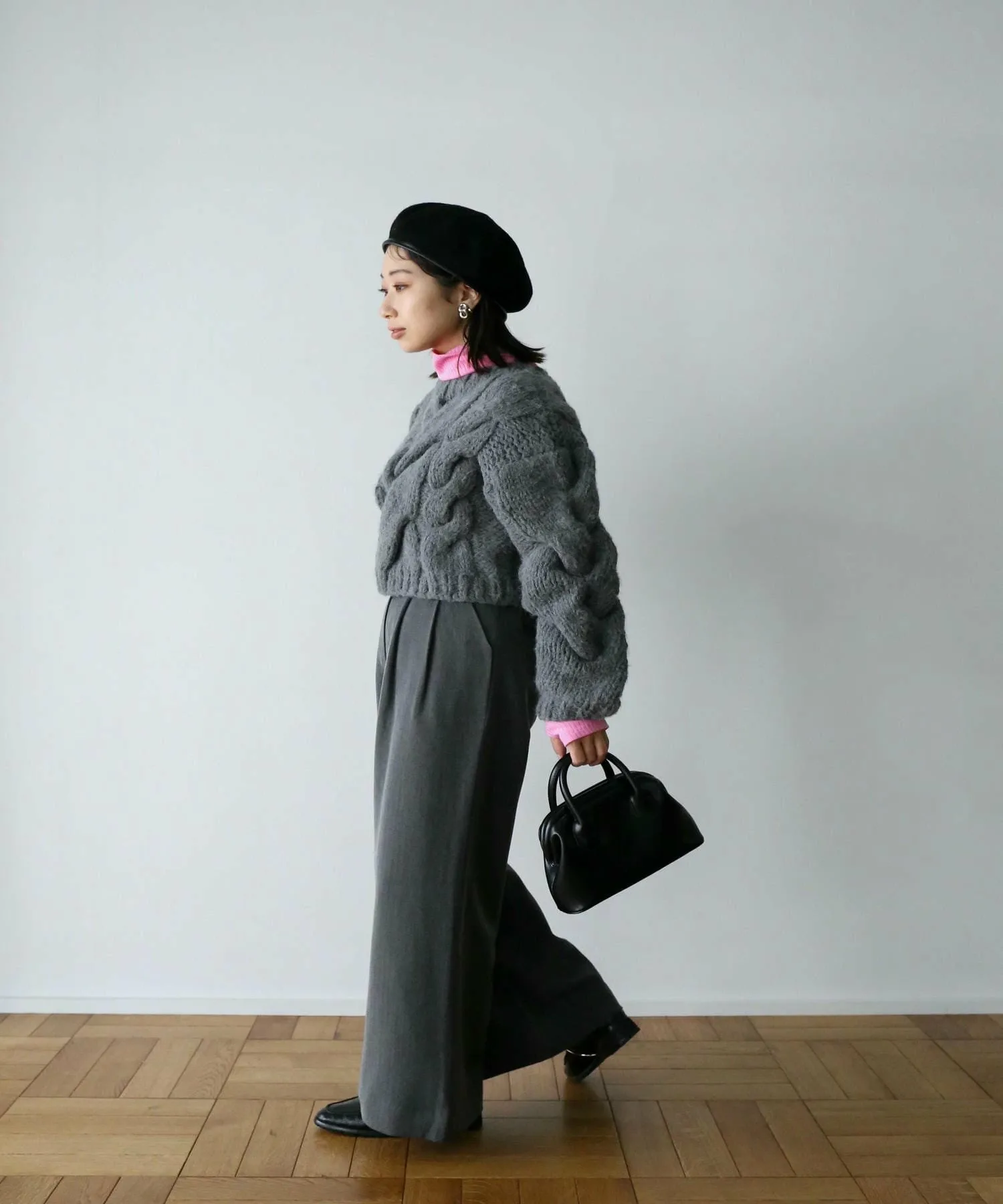・Угольно-серый: Угольно-серый — это темный цвет с солидным оттенком, который добавит изюминку вашему стилю. Сочетайте его с яркими цветами, такими как розовый или алый, или с милым топом для создания контраста ◎