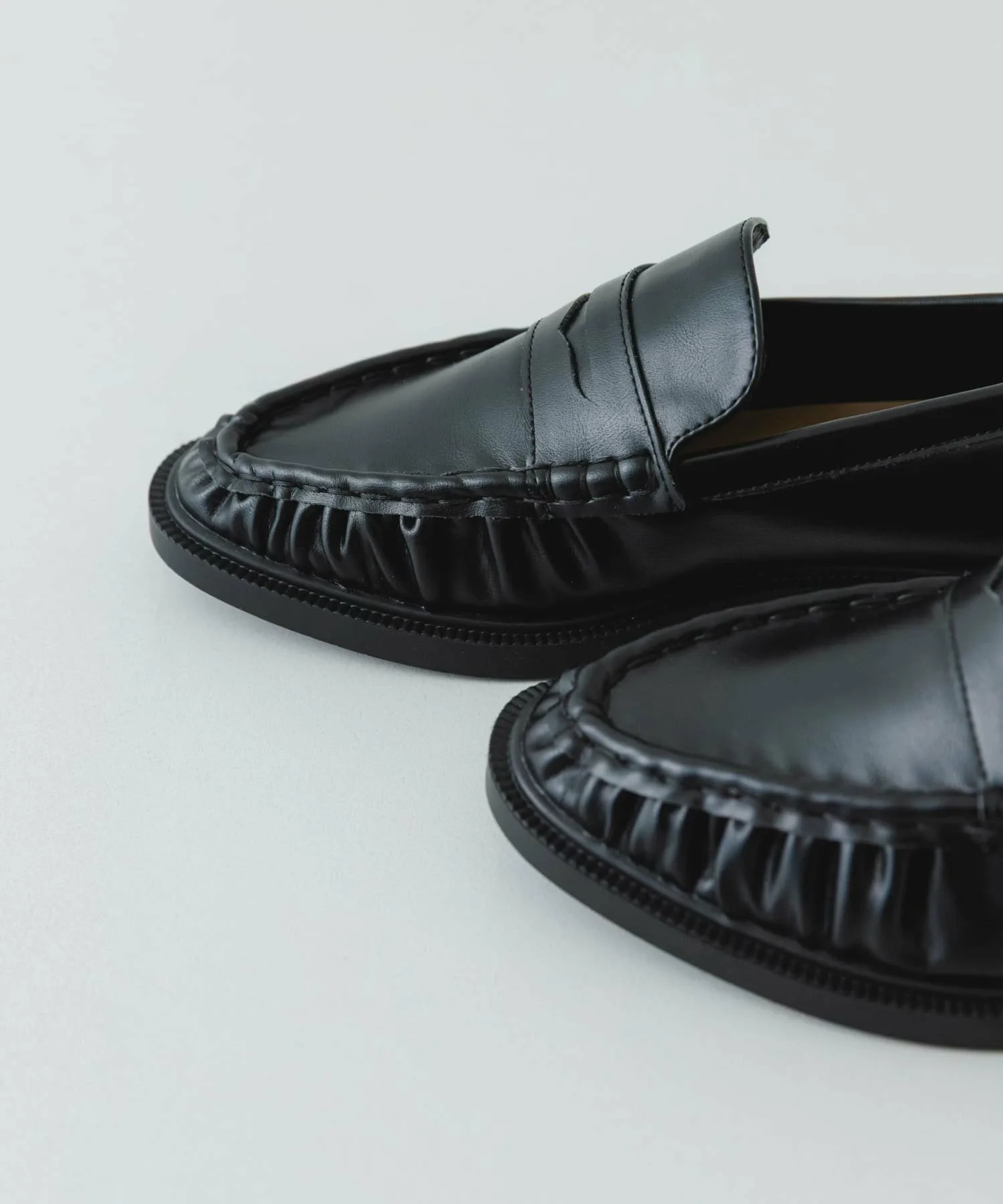 Эти классические лоферы отличаются привлекательным дизайном со сборками. Наслаждайтесь различными образами благодаря элегантной, блестящей гладкой текстуре и теплой замше.