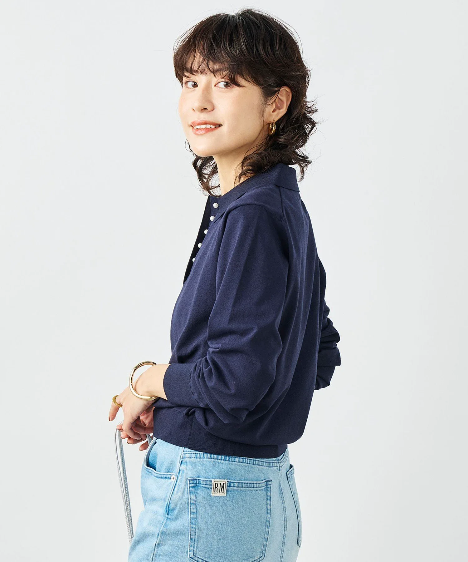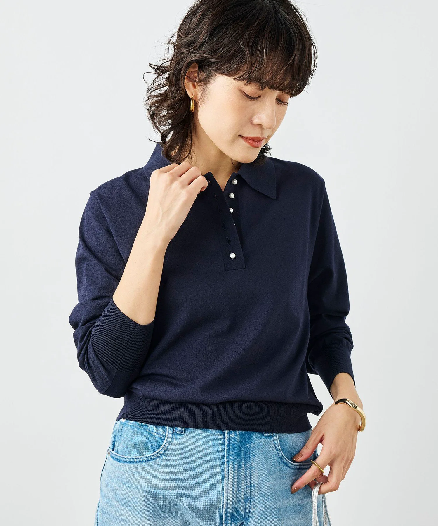 ・Женственный трикотажный пуловер-поло, в тренде этого года.