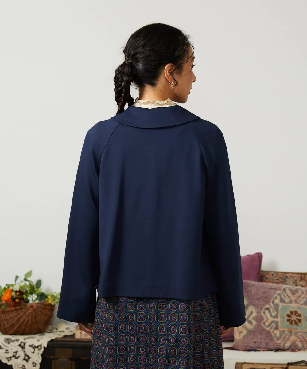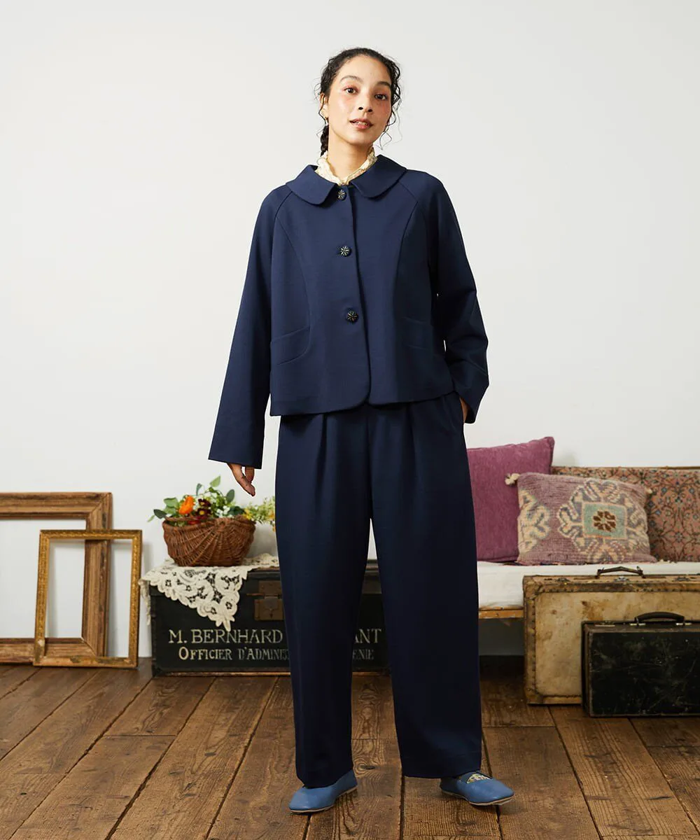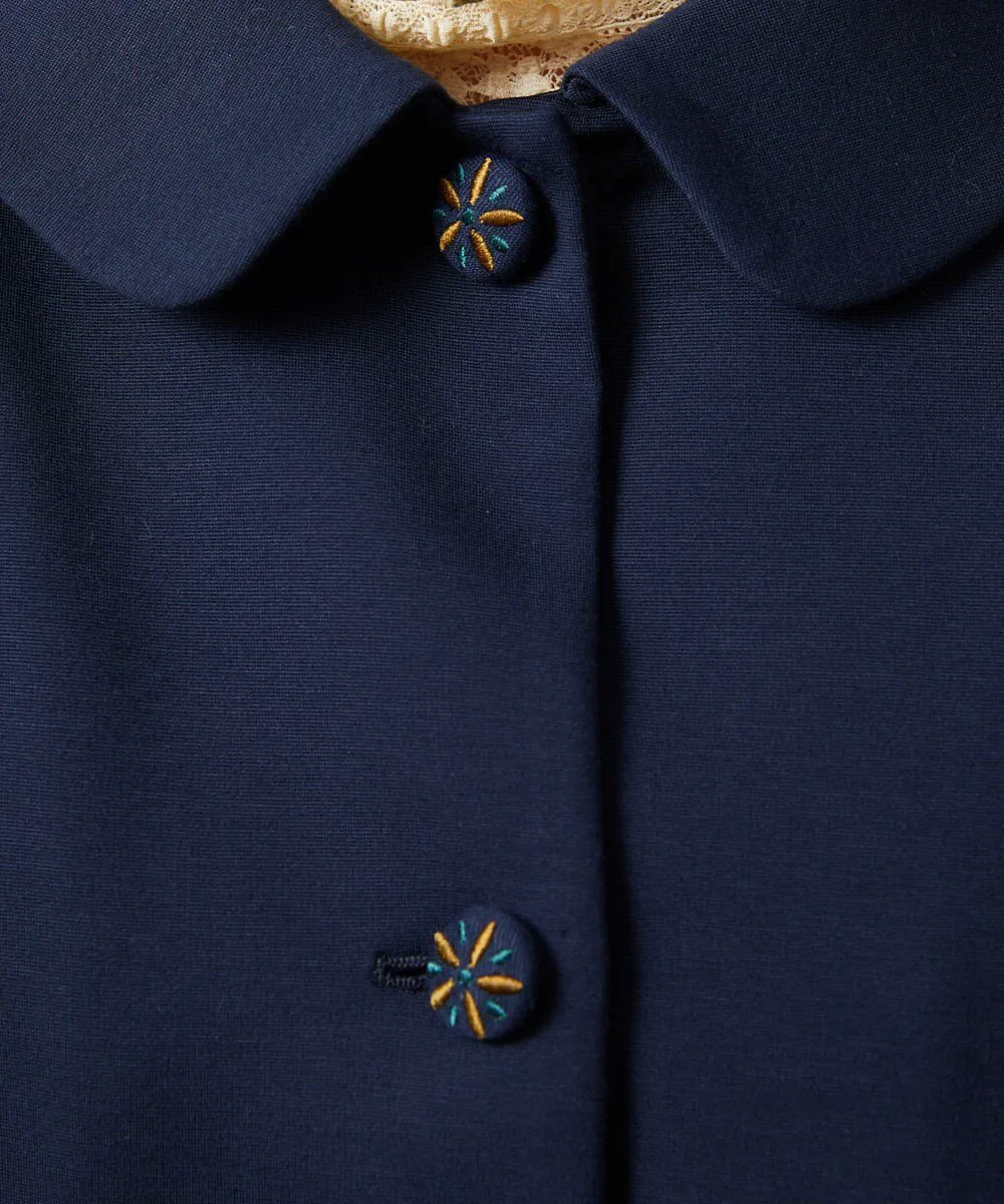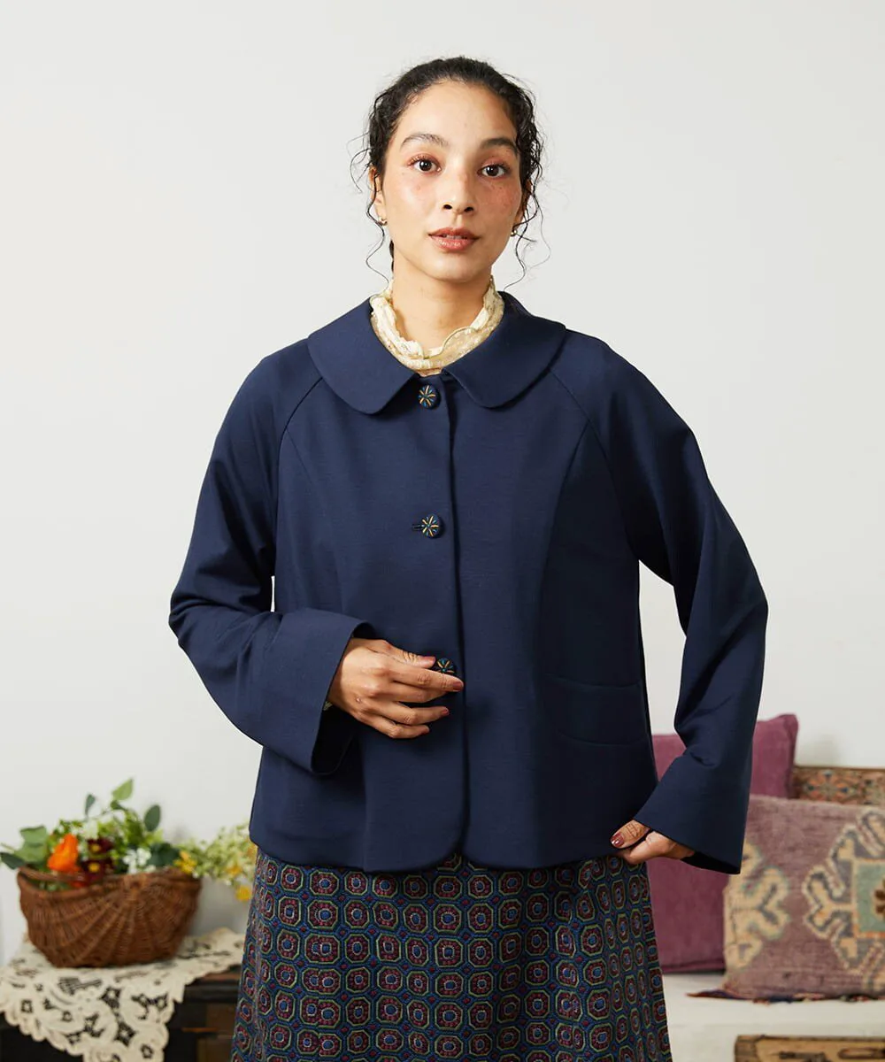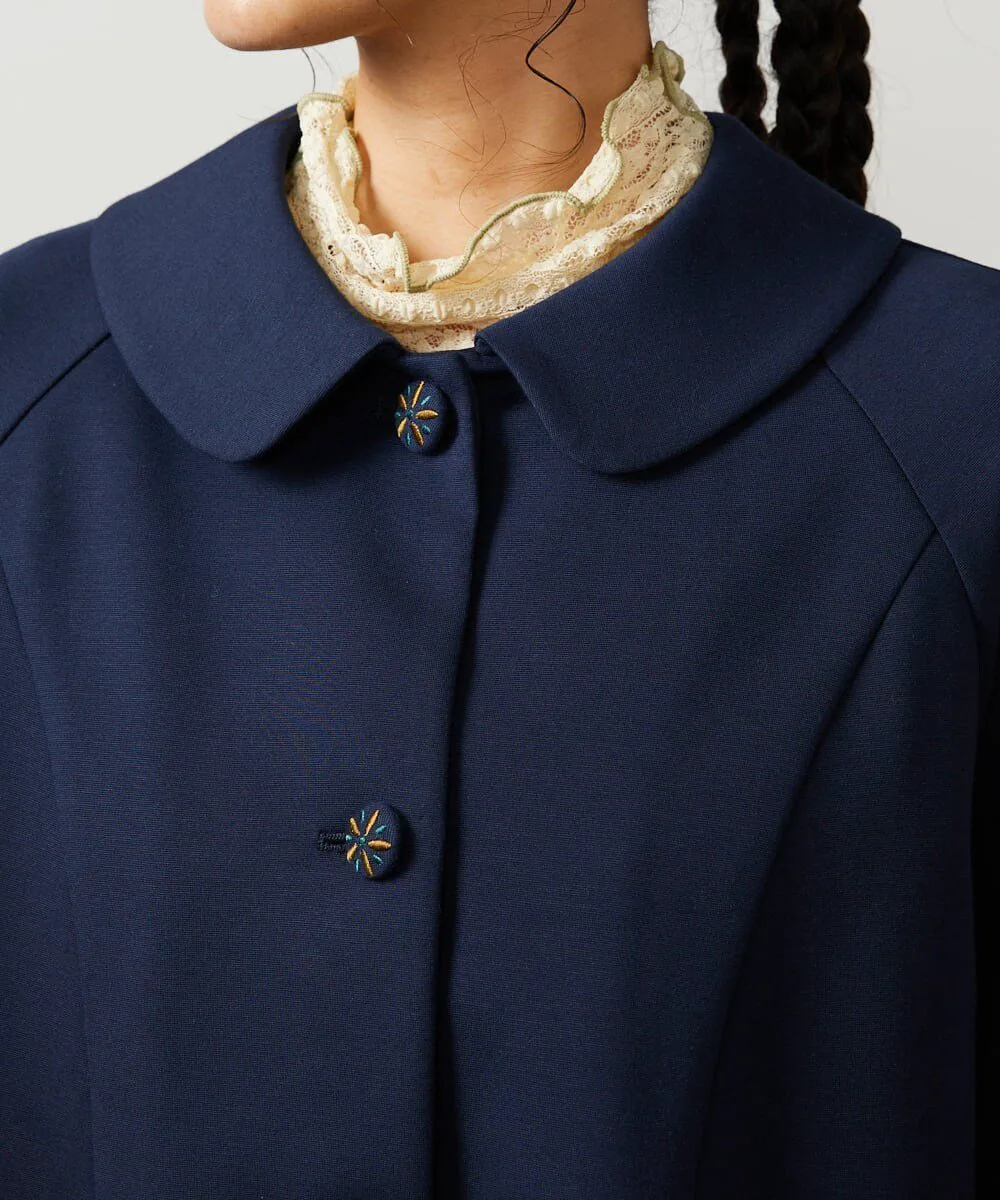 Эта куртка сочетает в себе элегантный внешний вид и комфорт. Простой, но плотный материал создает изысканное впечатление. Большой плоский воротник и вышитые пуговицы, обтянутые тканью, подчеркивают ее женственность. Рукава реглан и свободный крой позволяют легко надевать ее и сочетать с другой одеждой. Она идеально подходит для поездок на работу, особых случаев и даже официальных мероприятий, таких как вступительные и выпускные церемонии.