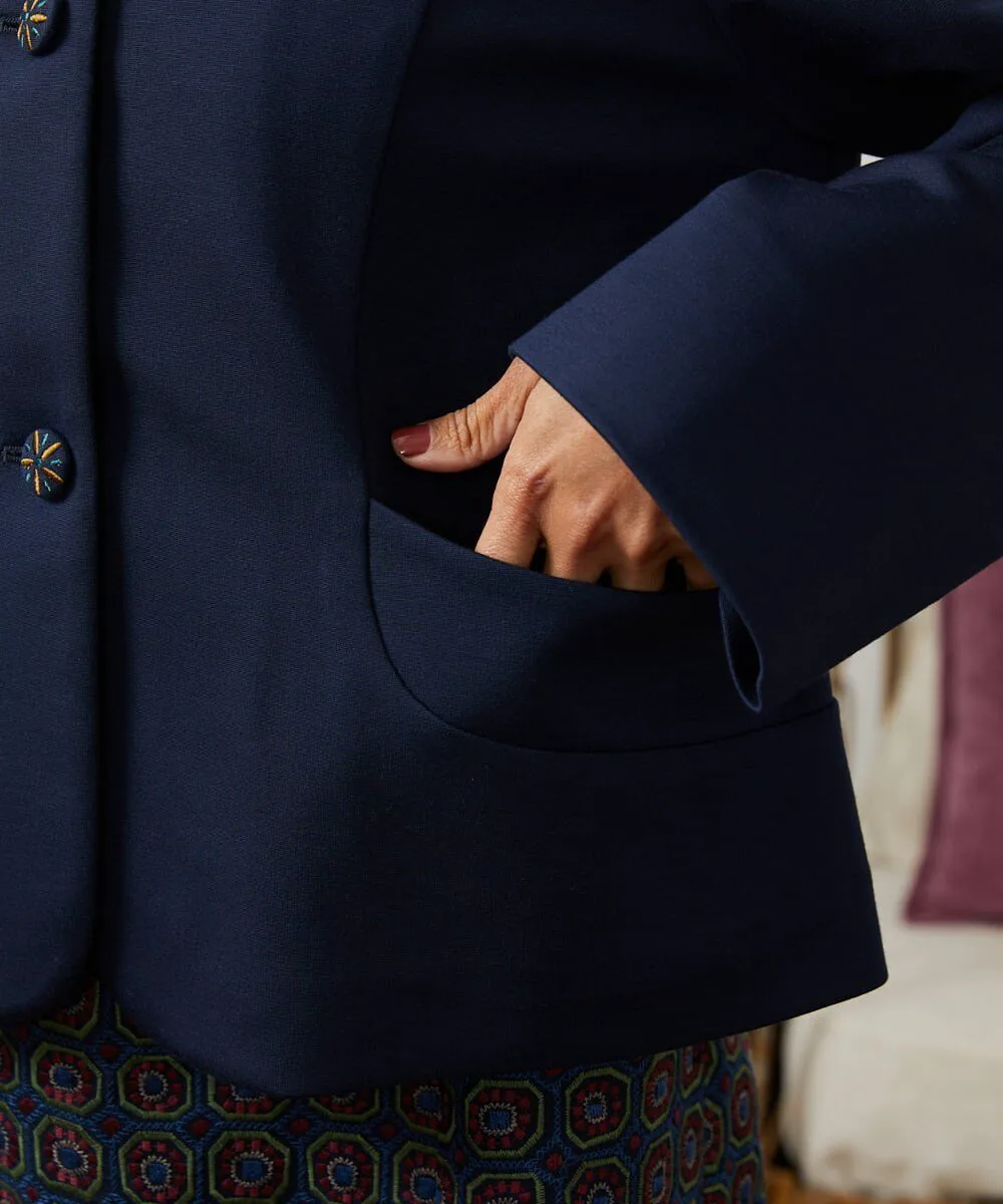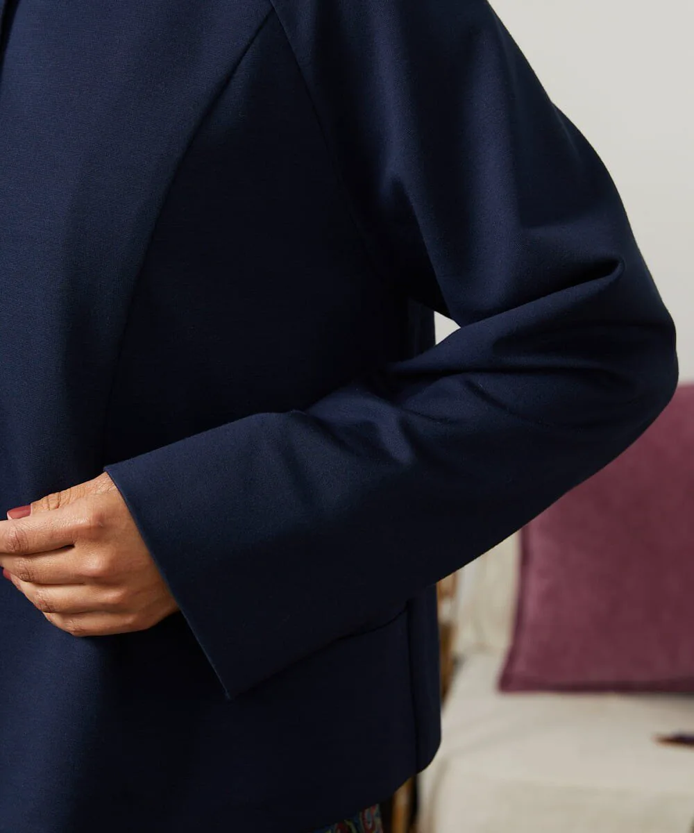 Эта простая и универсальная куртка хорошо сочетается с любым нарядом. Мы рекомендуем сочетать его с топом, сшитым по фигуре, для создания повседневного образа, или с брюками [GJTCD51280] и платьем [GJPCD51260] из того же материала для более элегантного образа.