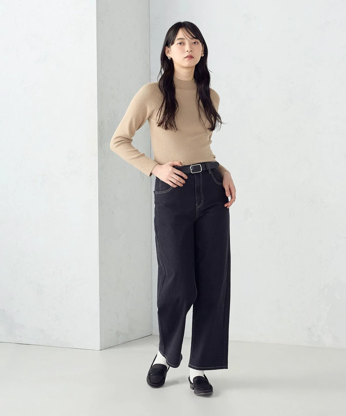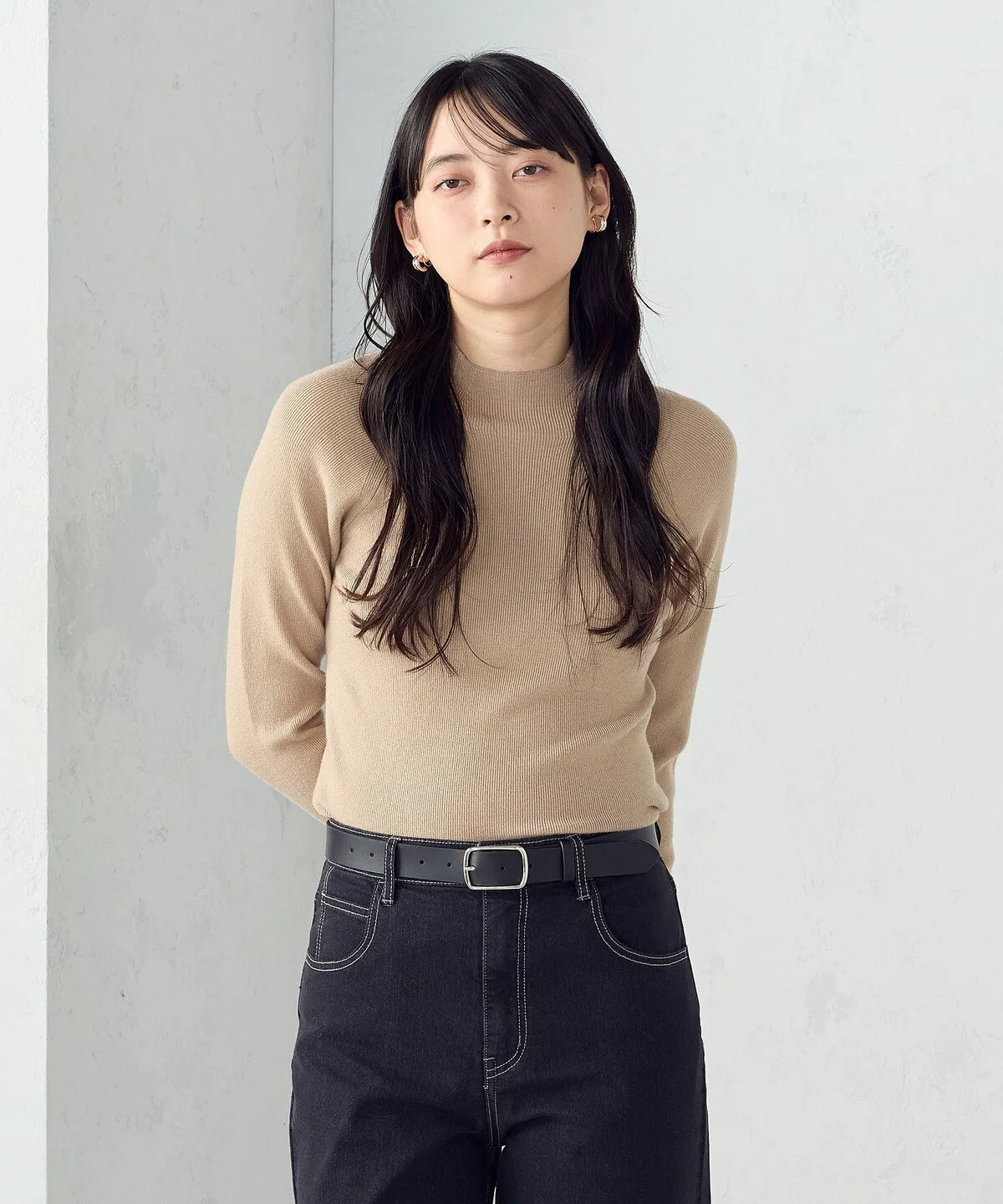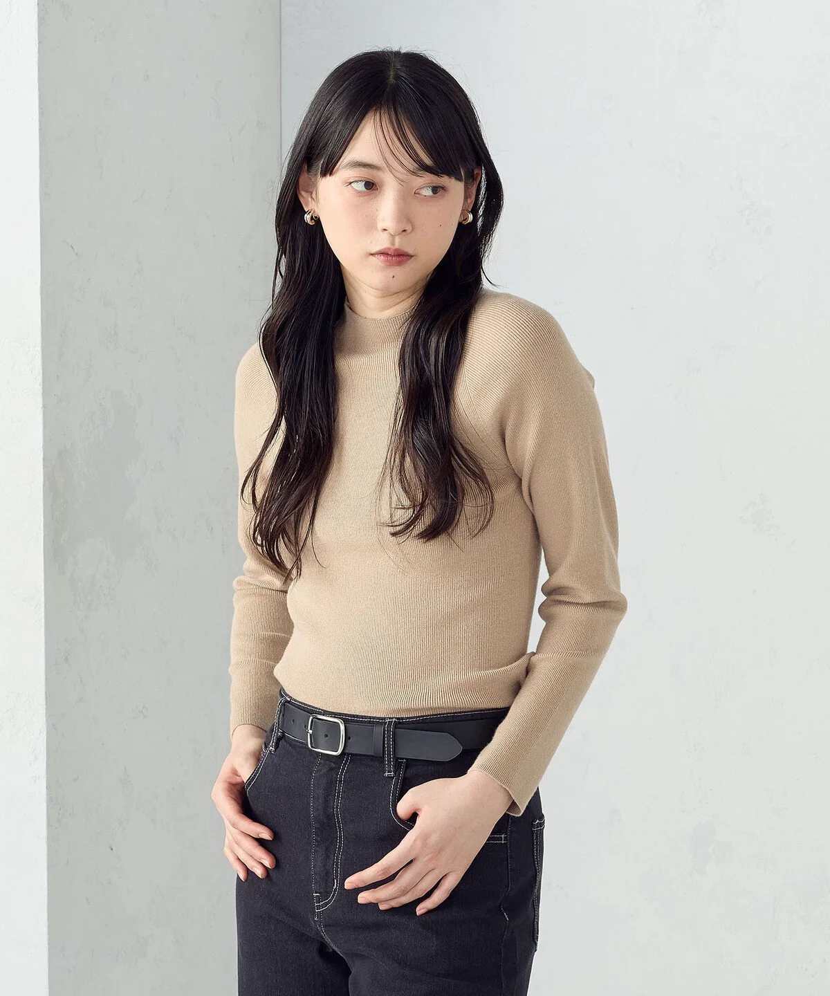 Базовый трикотажный свитер с высоким воротником и тонкой ребристой отделкой.