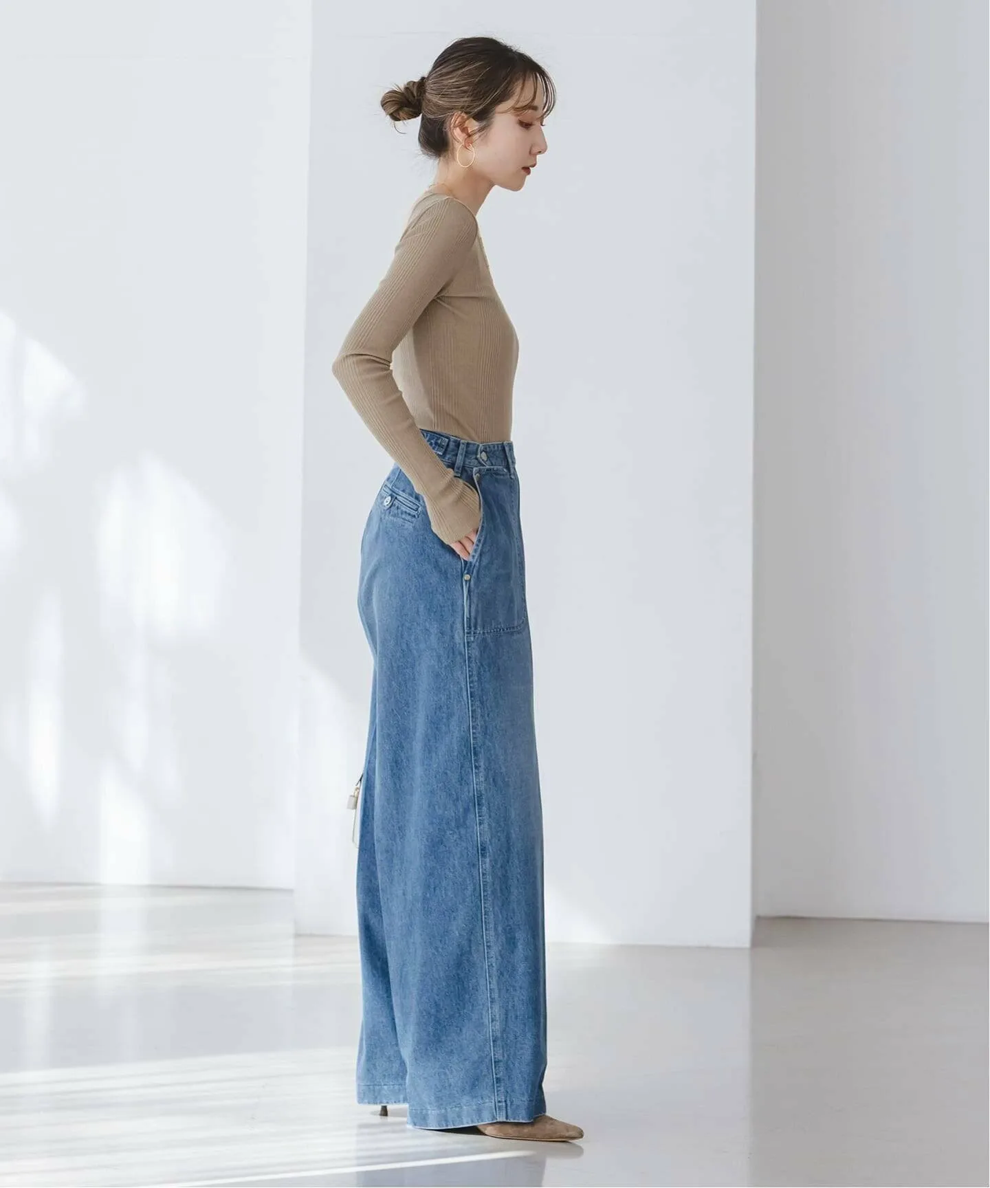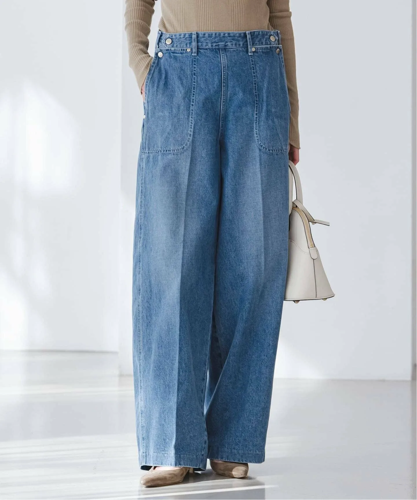 Джинсы, изготовленные из 100% хлопчатобумажной саржи, окрашенной индиго, и с акцентом на производство в Японии — от материала до пошива и обработки, — набирают популярность среди модниц.