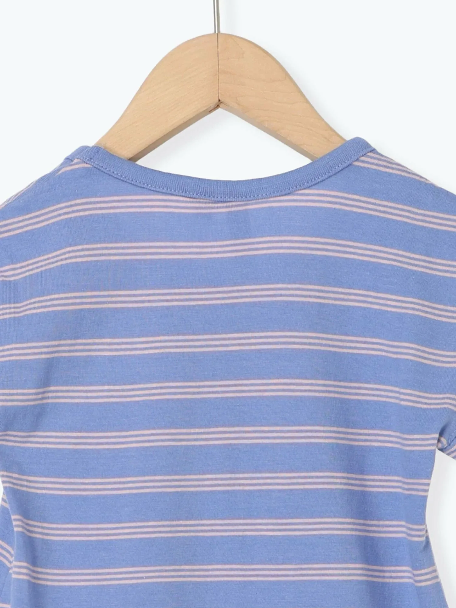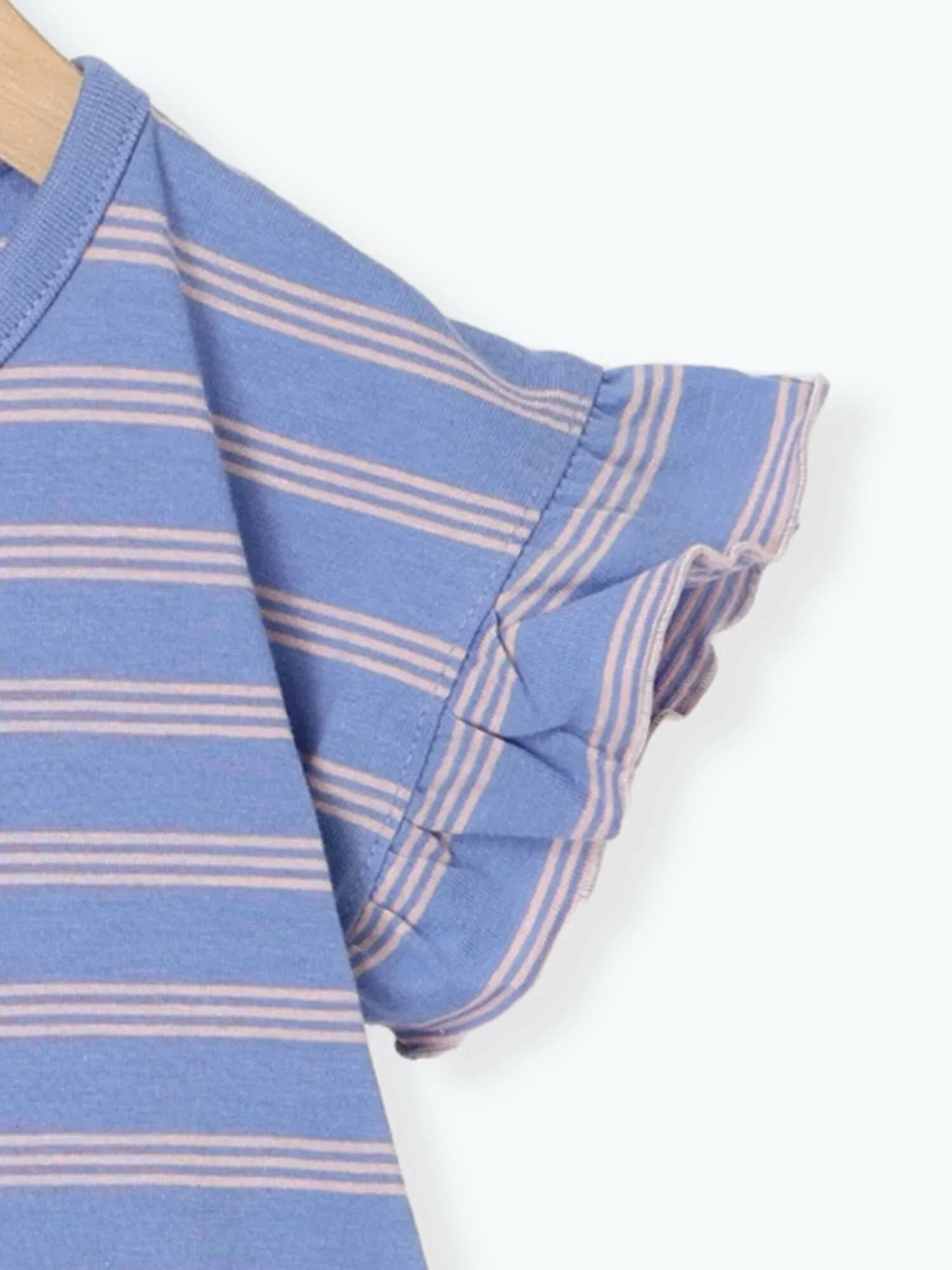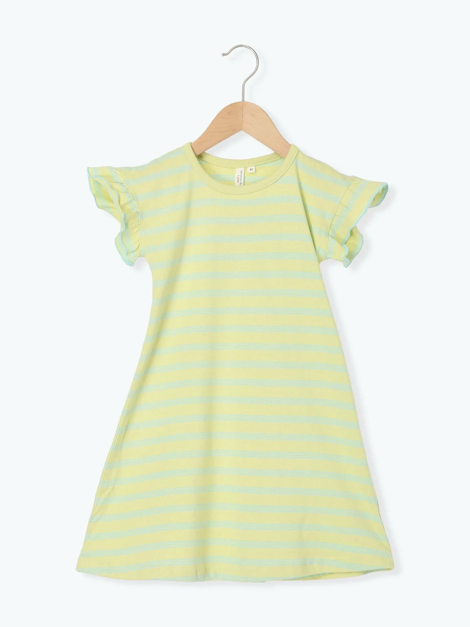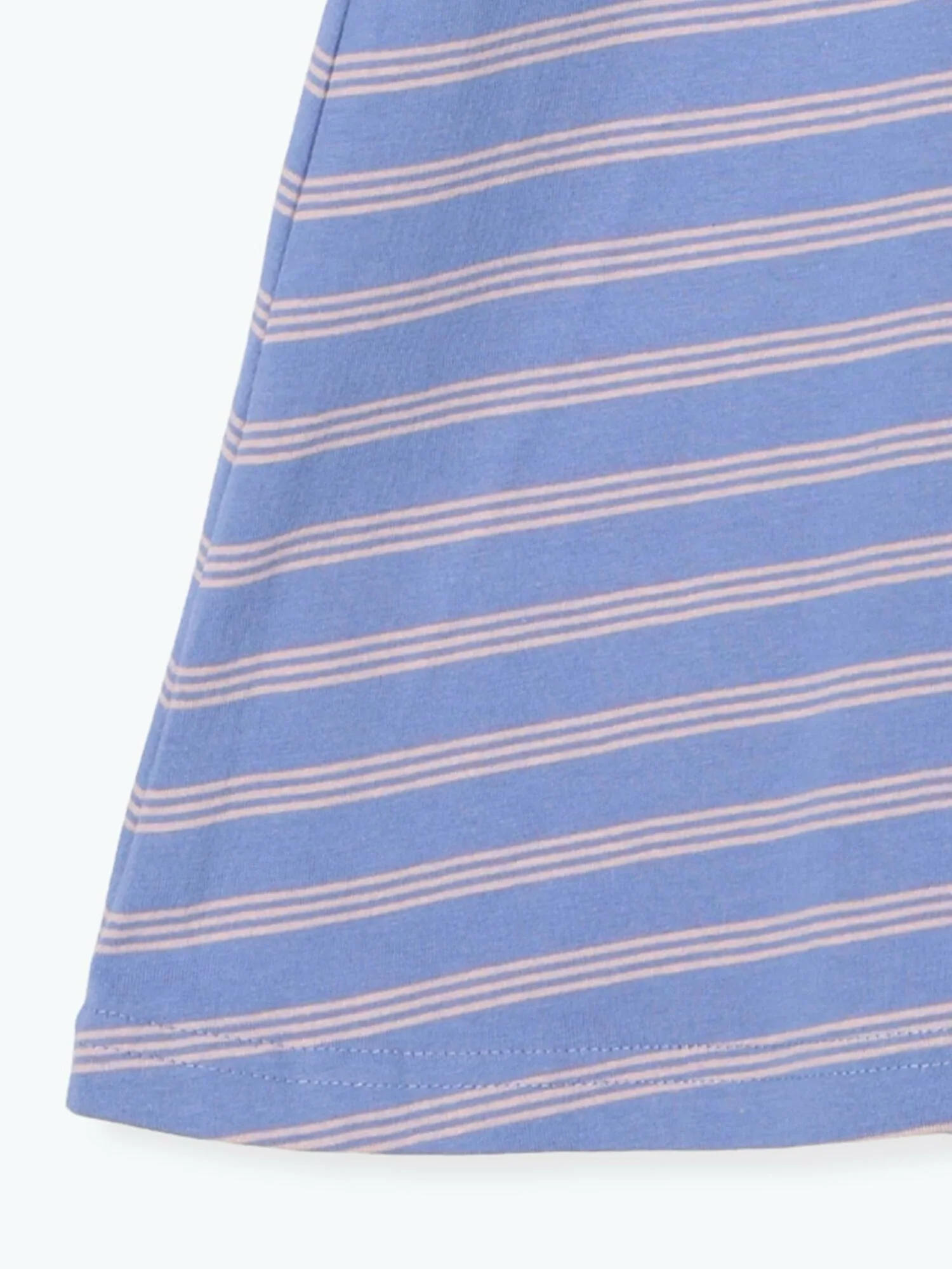 Платье с асимметричным подолом и декоративной каймой, создающее освежающее впечатление.