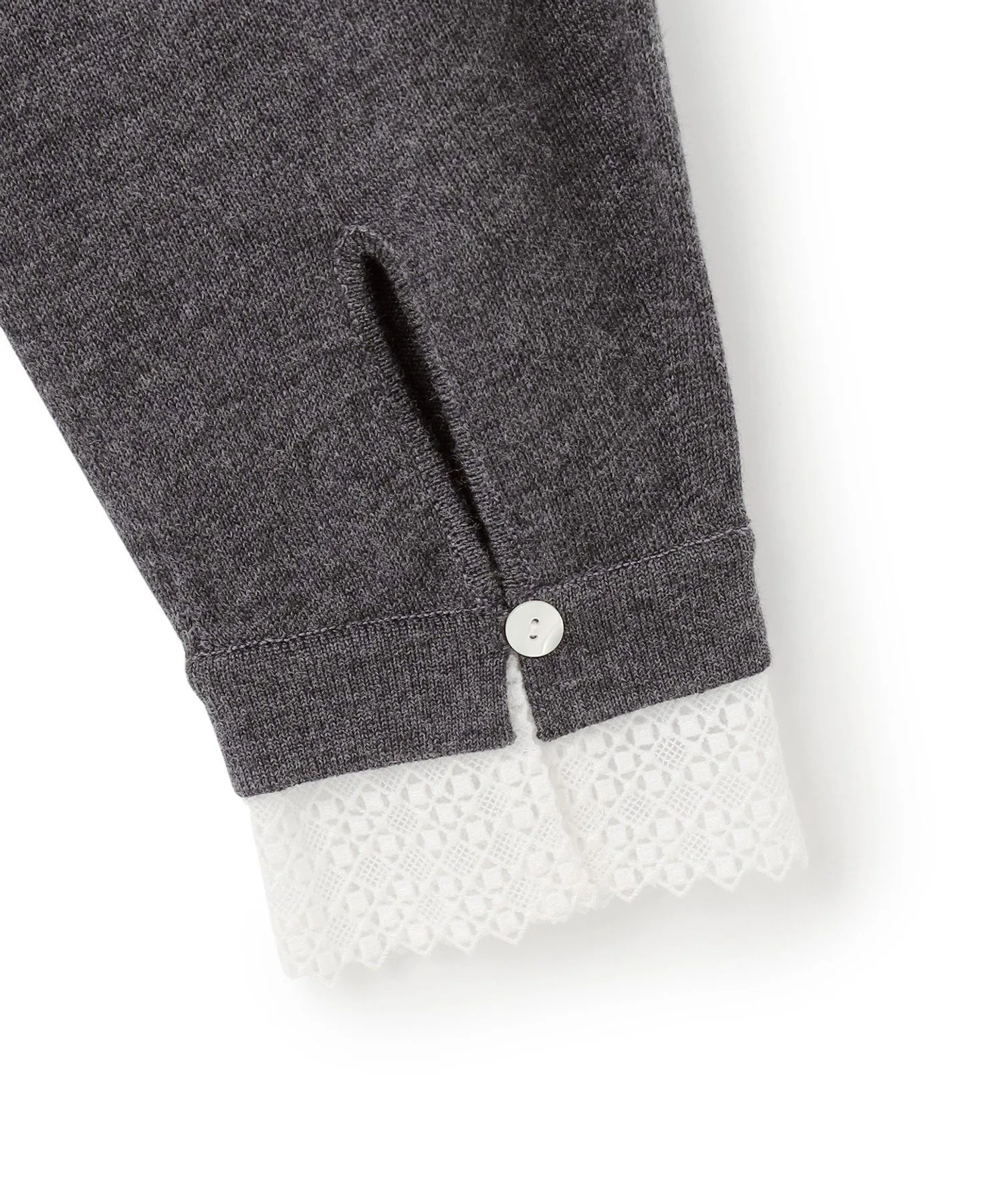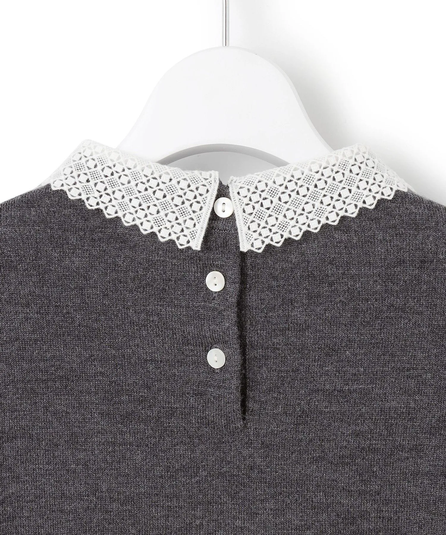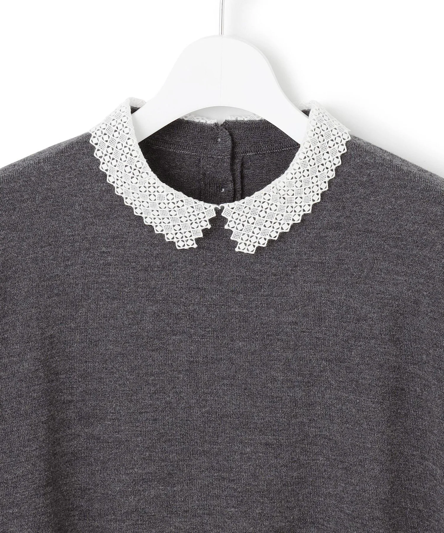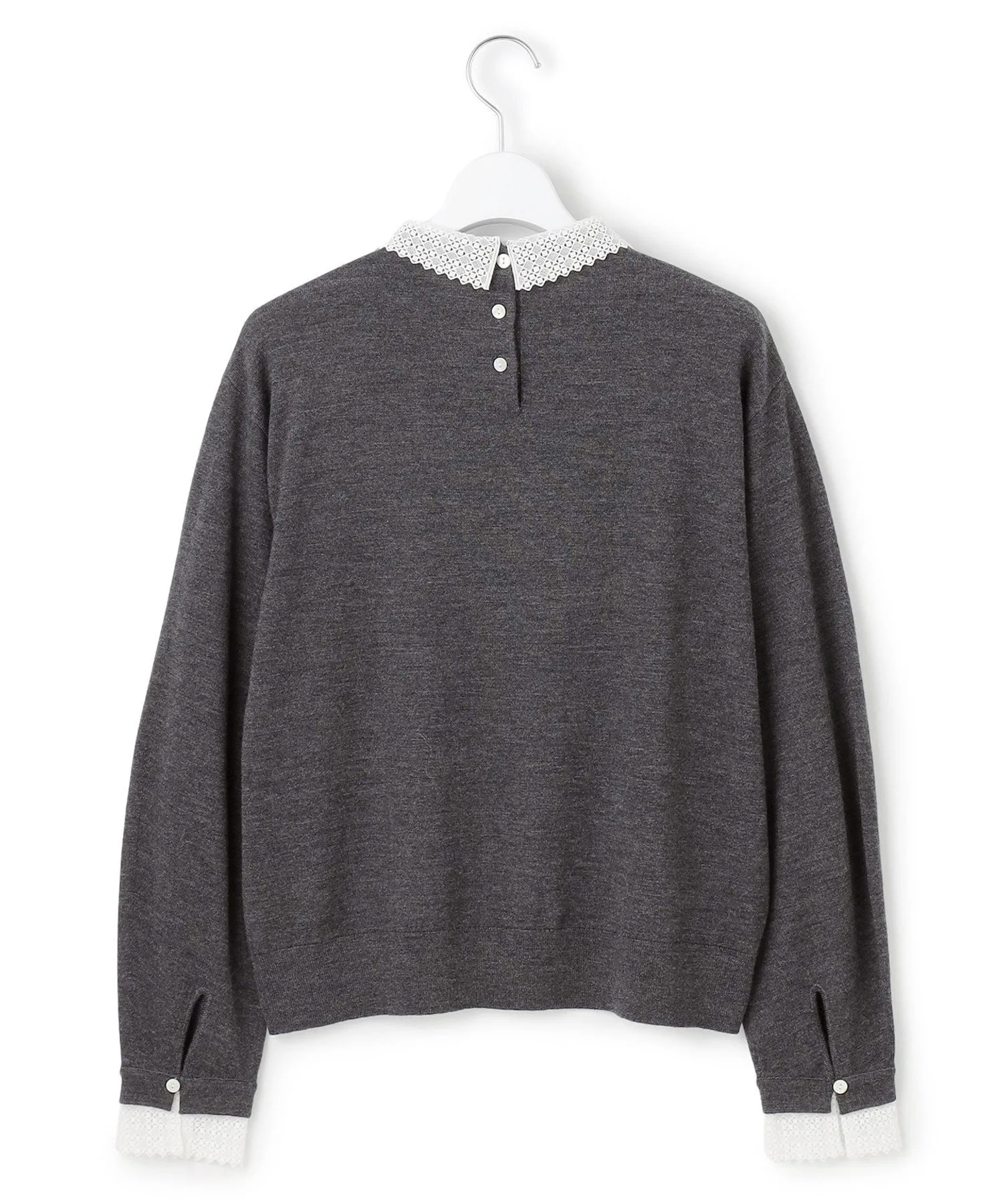 Этот вязаный пуловер украшен эффектным вышитым кружевом на воротнике и манжетах. Дизайн напоминает кружевную блузку, надетую под пуловер, создавая великолепный образ сам по себе. Вырез горловины сзади застегивается на пуговицы, что облегчает надевание и снимание. Кружево на манжетах также перекрывает основной вязаный элемент, создавая многослойный образ, тщательно проработанный до мельчайших деталей. Его лаконичный силуэт хорошо сочетается как с брюками, так и с юбками. Доступен в трех цветах: спокойный серый (#004), эффектный черный (#005) и изысканный темно-синий (#075).