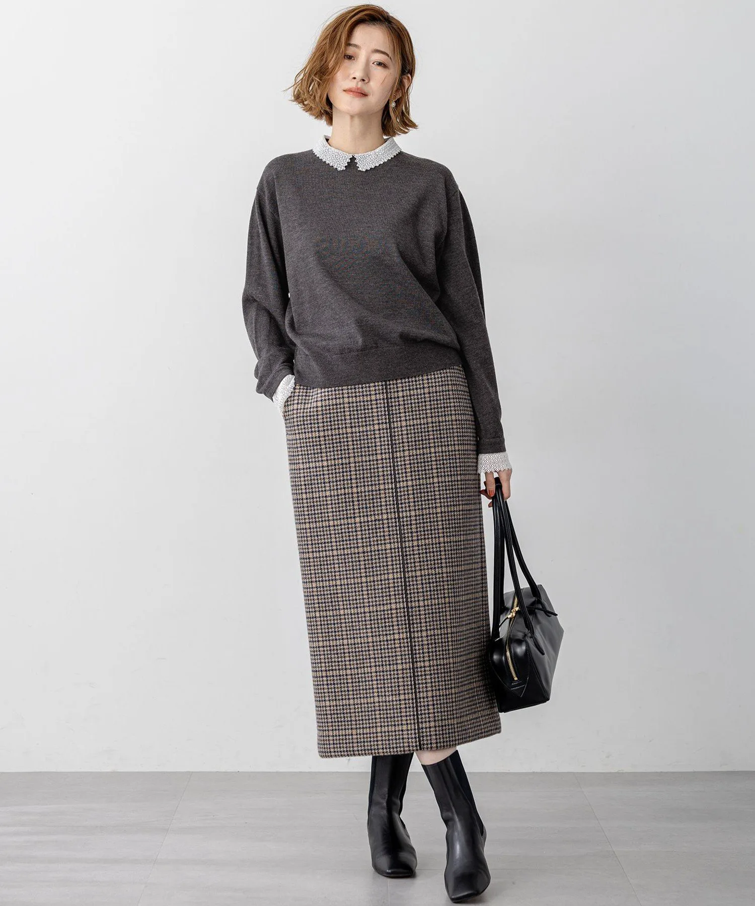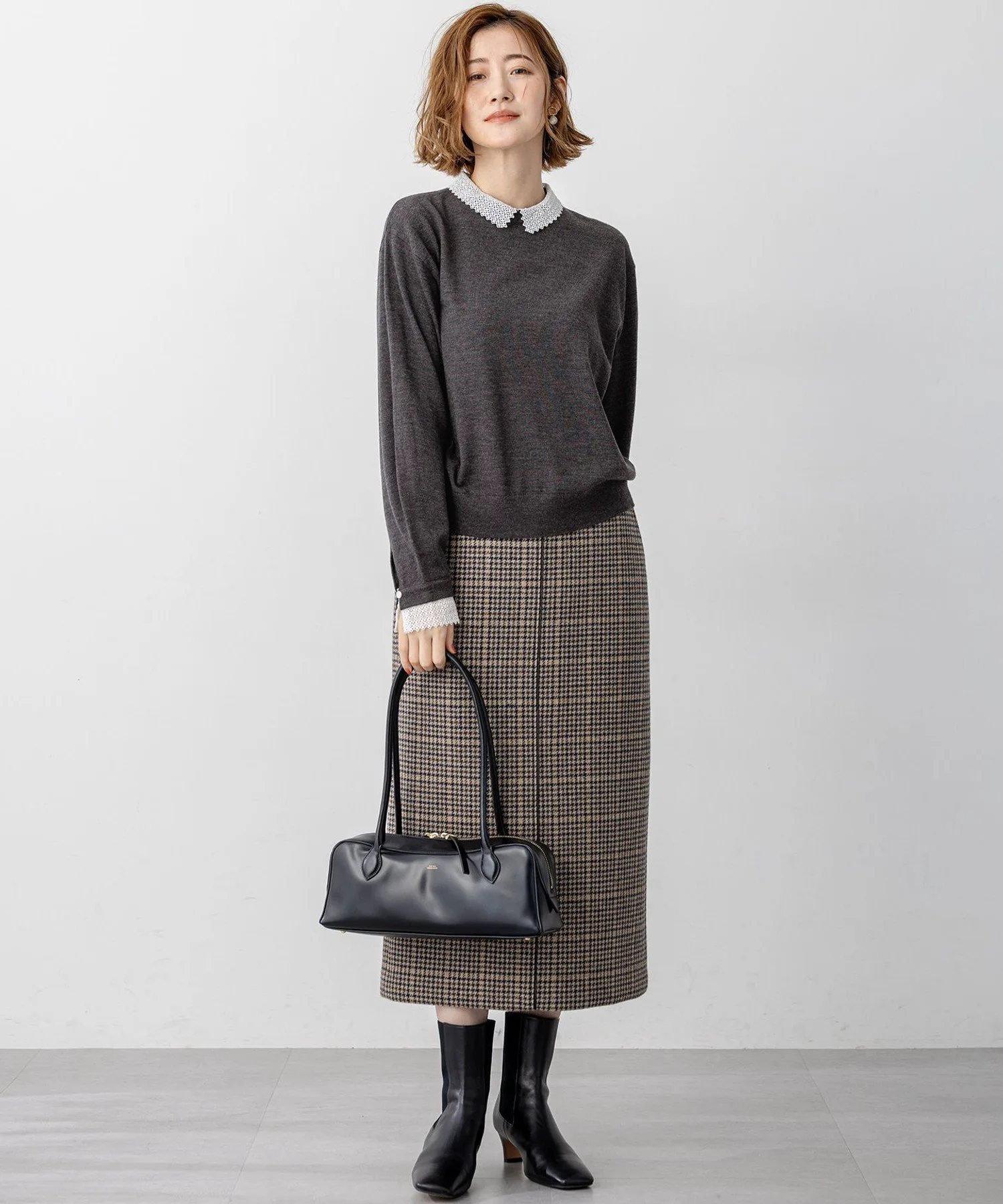 Изготовлен из австралийской мериносовой шерсти сверхтонкой 19,5 микрон. Обработан по технологии Basolan, которая предотвращает усадку даже при ручной стирке, что упрощает уход в домашних условиях. Обладает оптимальной эластичностью, элегантным шелковистым блеском и мягкой, гладкой текстурой. ▼Товары из той же серии: Трикотажное полотно с вышивкой, цветами и кружевом ) Представлено в журналах: CLASSY. Выпуск за январь 2026 г. *Изображение является образцом, поэтому характеристики могут отличаться от фактического продукта. Модель: H166 B80 W59 H86