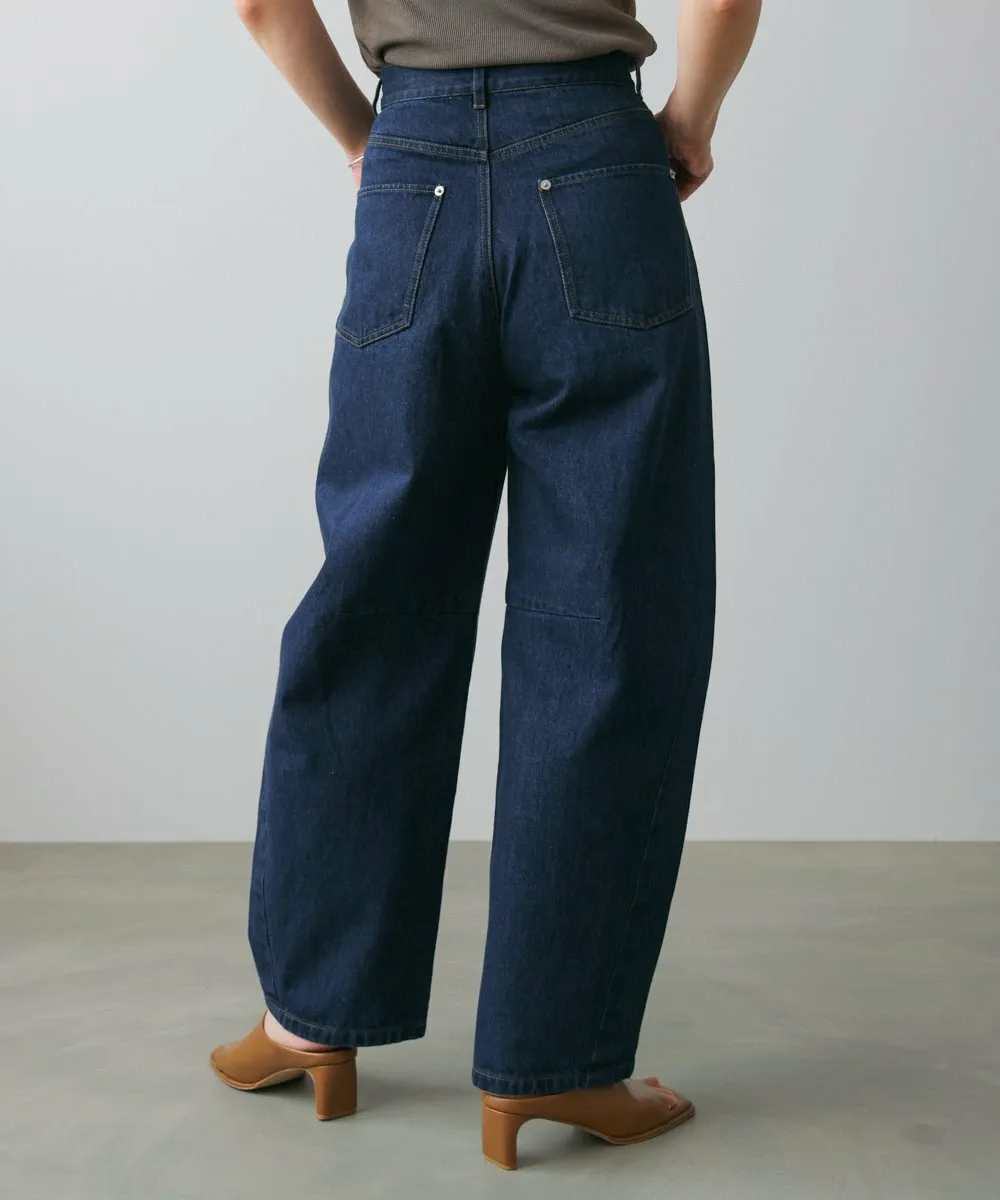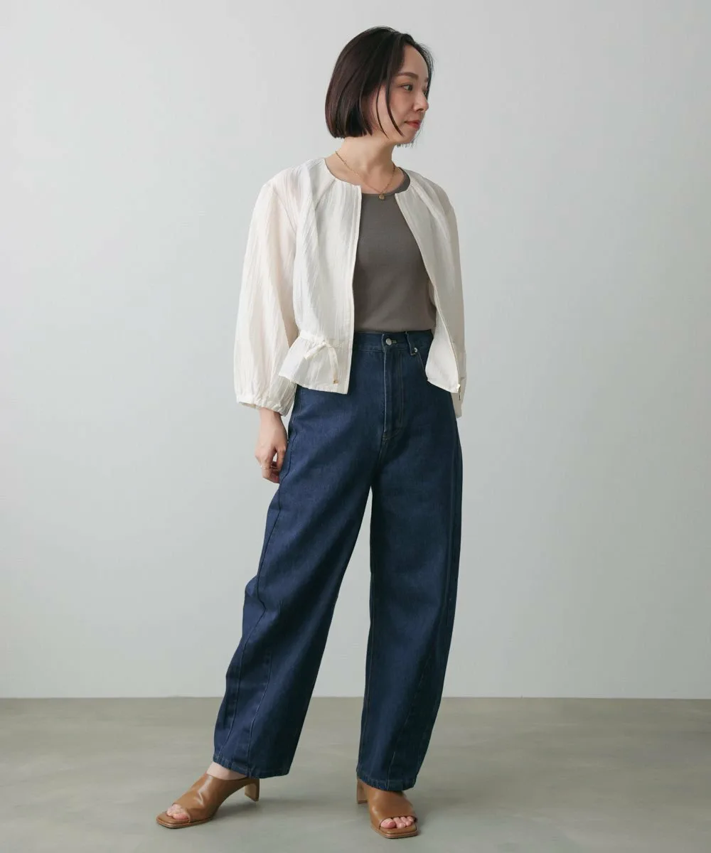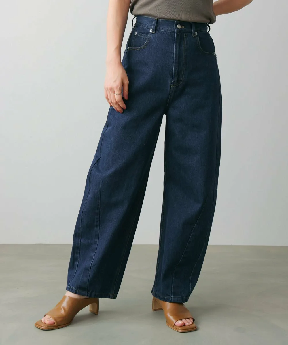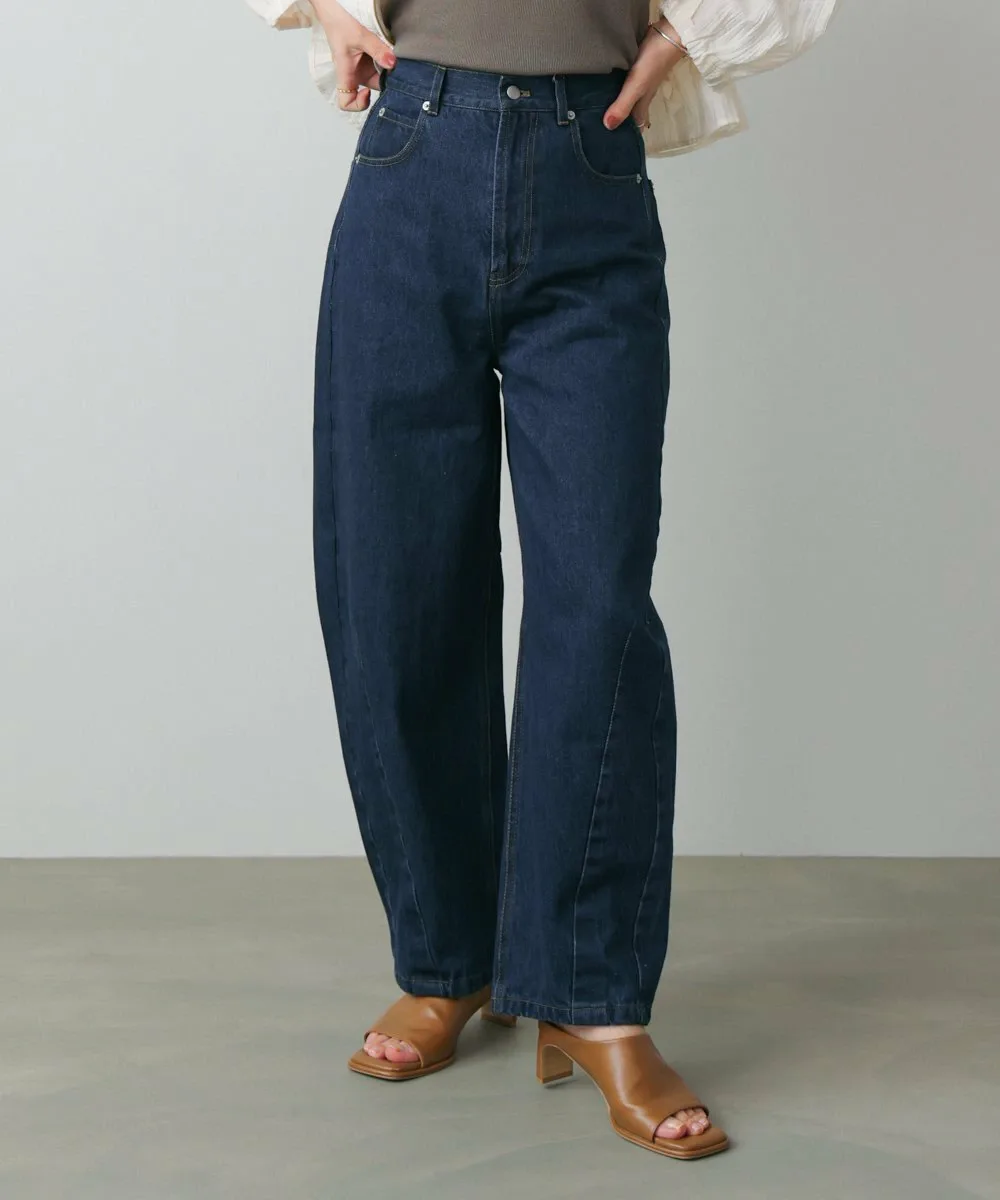 Модные брюки-кокон. Они также создают стильный силуэт при взгляде сбоку. Дизайн демонстрирует эффект потертости, придавая ткани свежий вид.