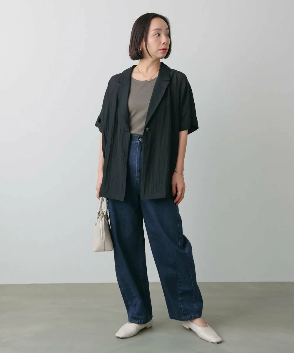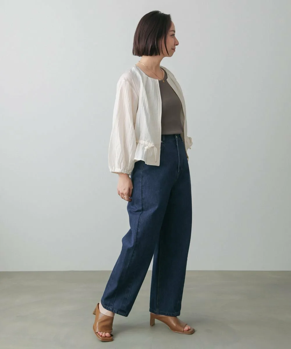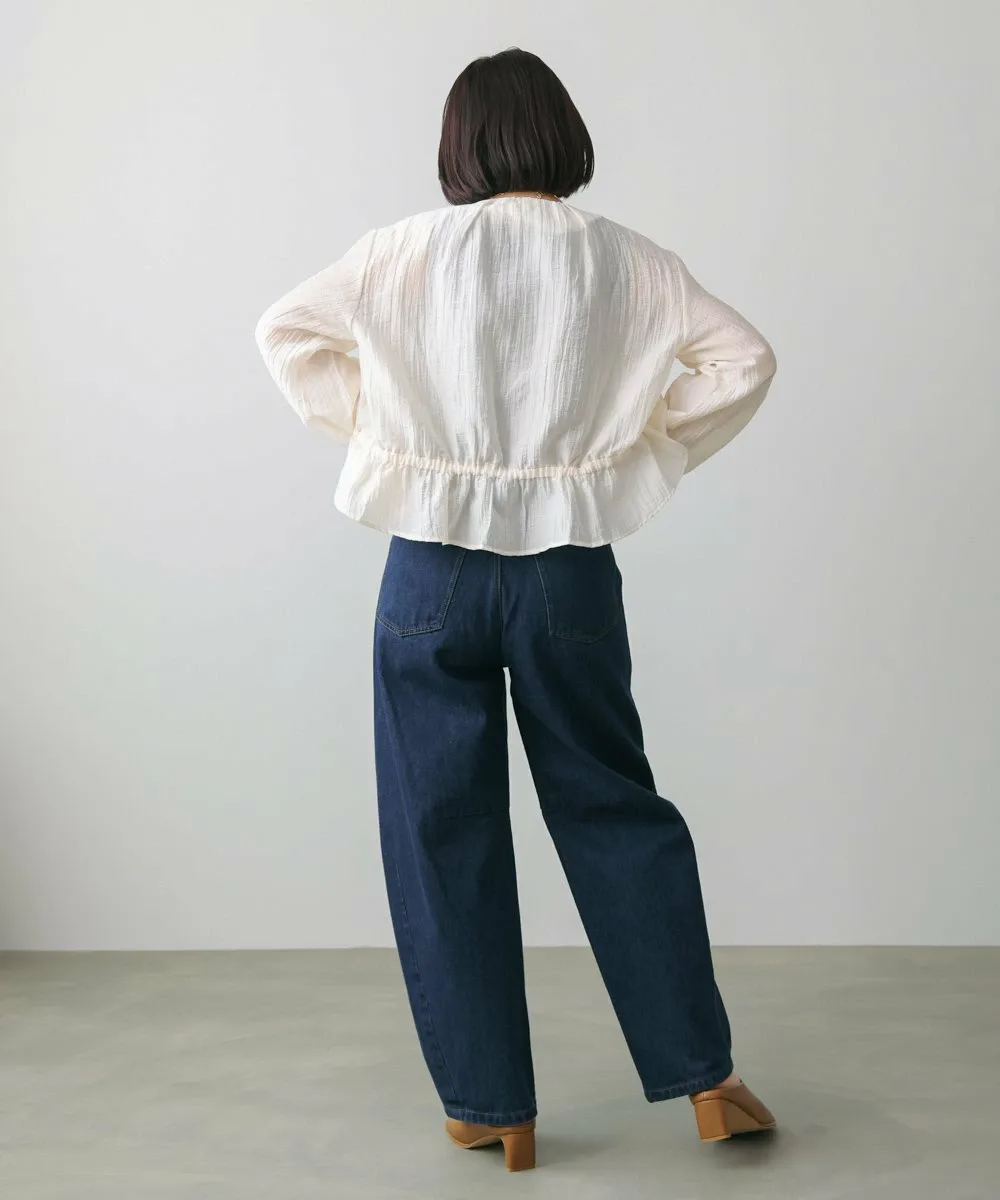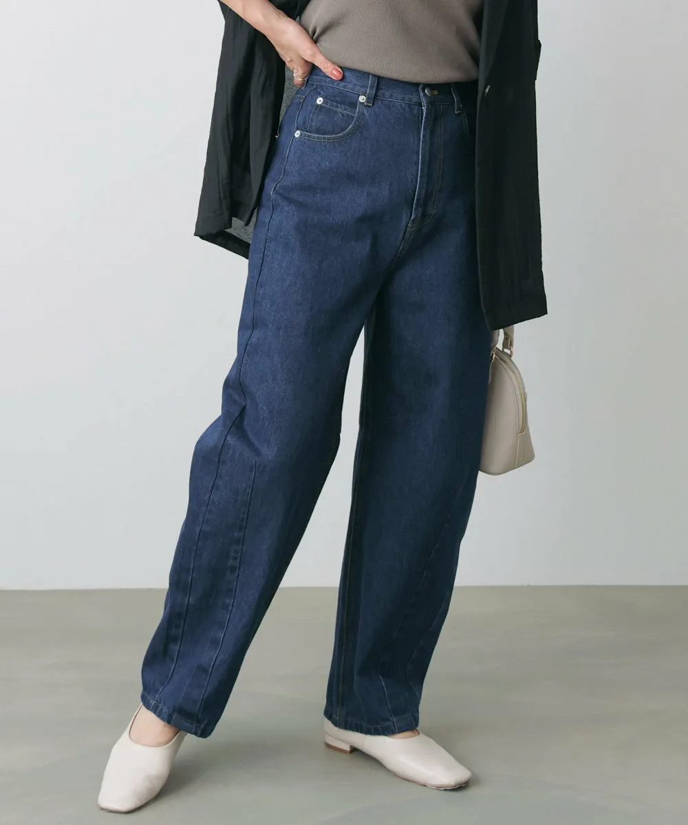 Модные брюки-кокон. Они также создают стильный силуэт при взгляде сбоку. Дизайн демонстрирует эффект потертости, придавая ткани свежий вид.