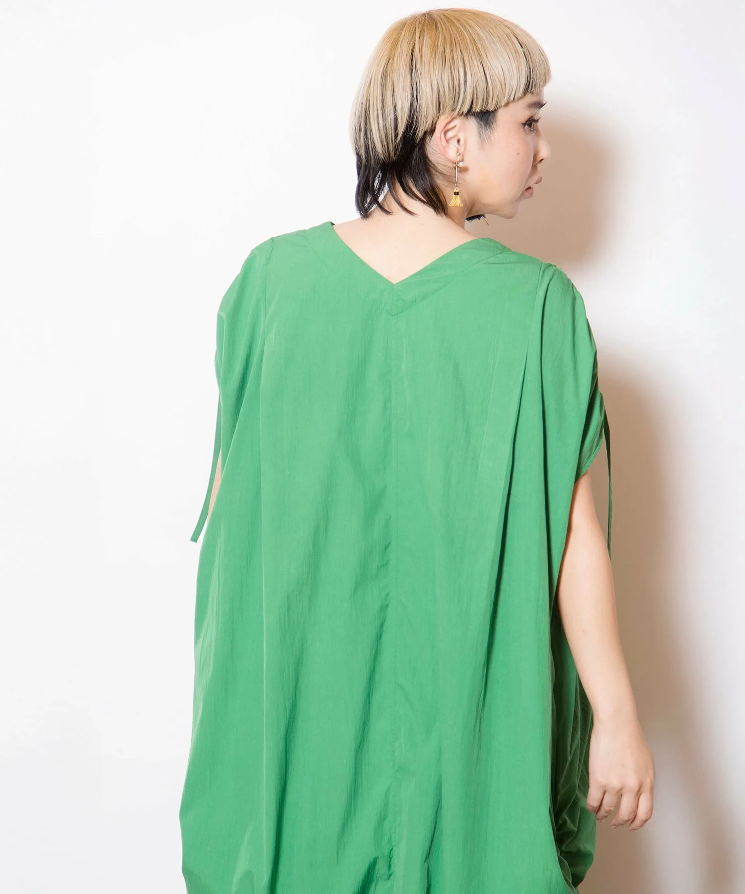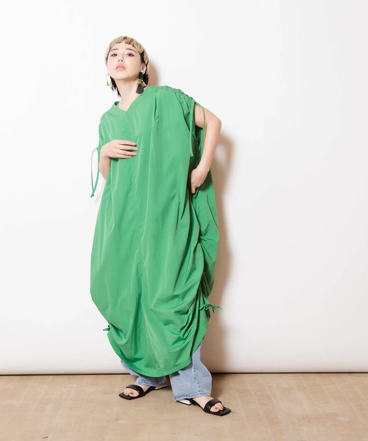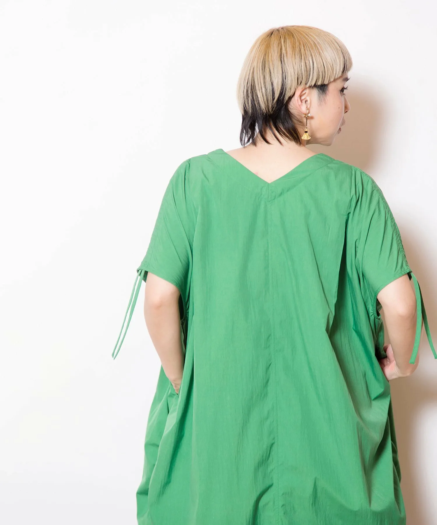 Прочная текстура нейлоновой смеси и обильные сборки на шнурке создают элегантный практичный стиль.