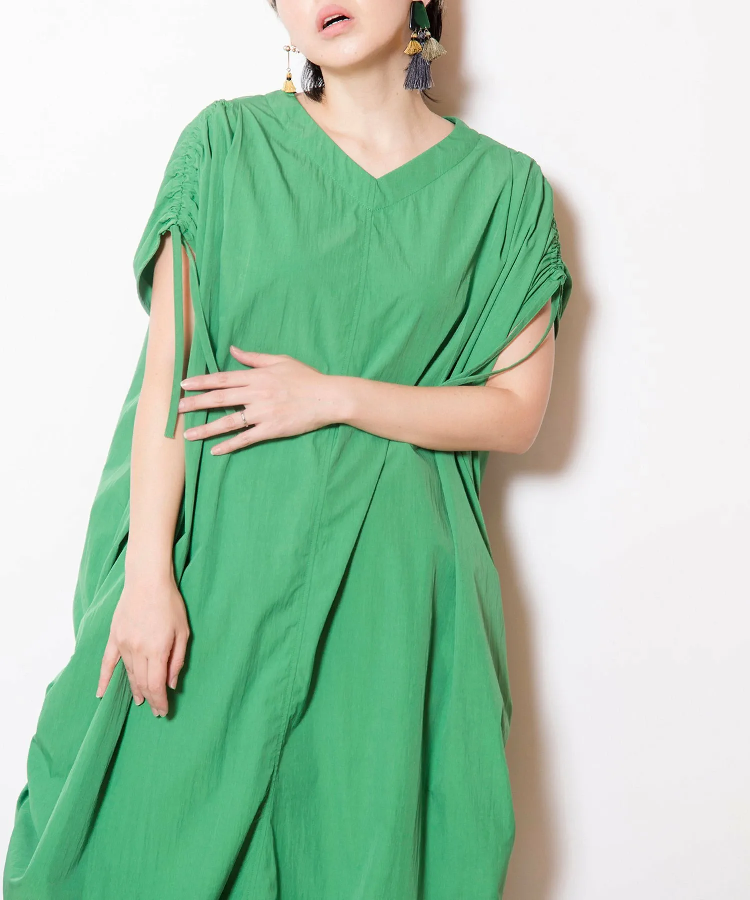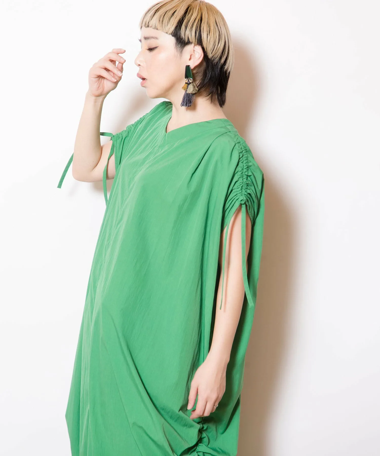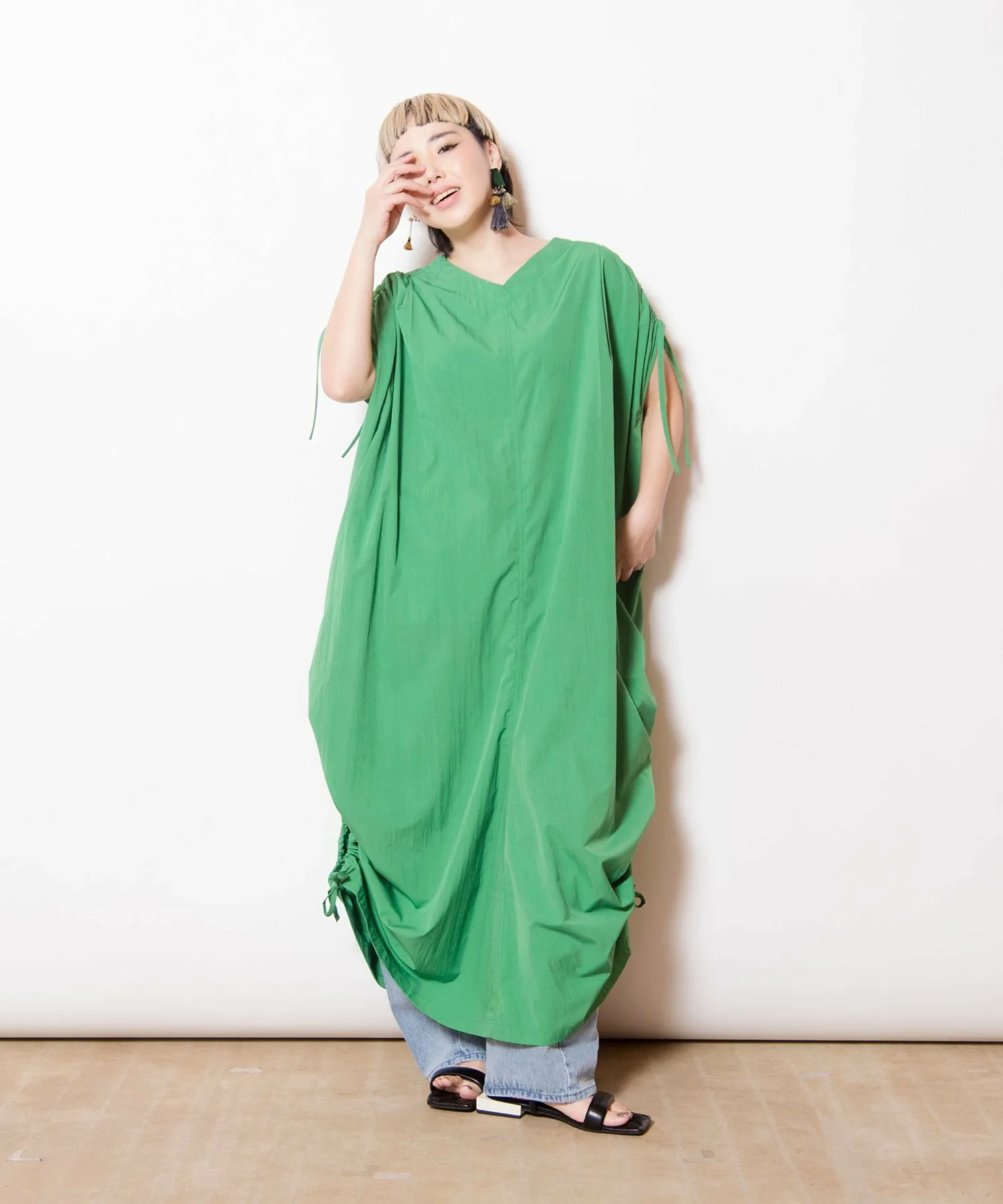 Прочная текстура нейлоновой смеси и обильные сборки на шнурке создают элегантный практичный стиль.