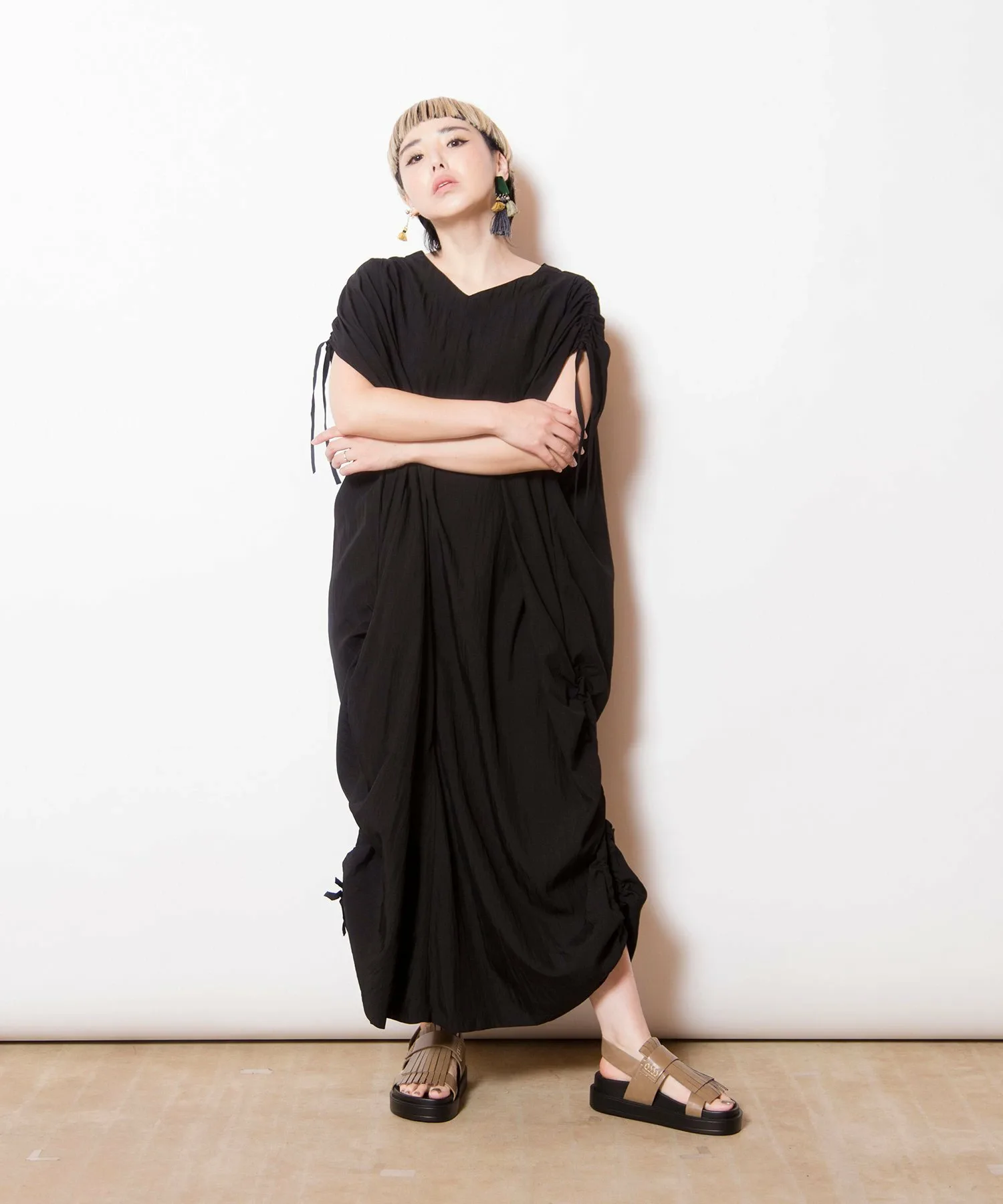 Прочная текстура нейлоновой смеси и обильные сборки на шнурке создают элегантный практичный стиль.