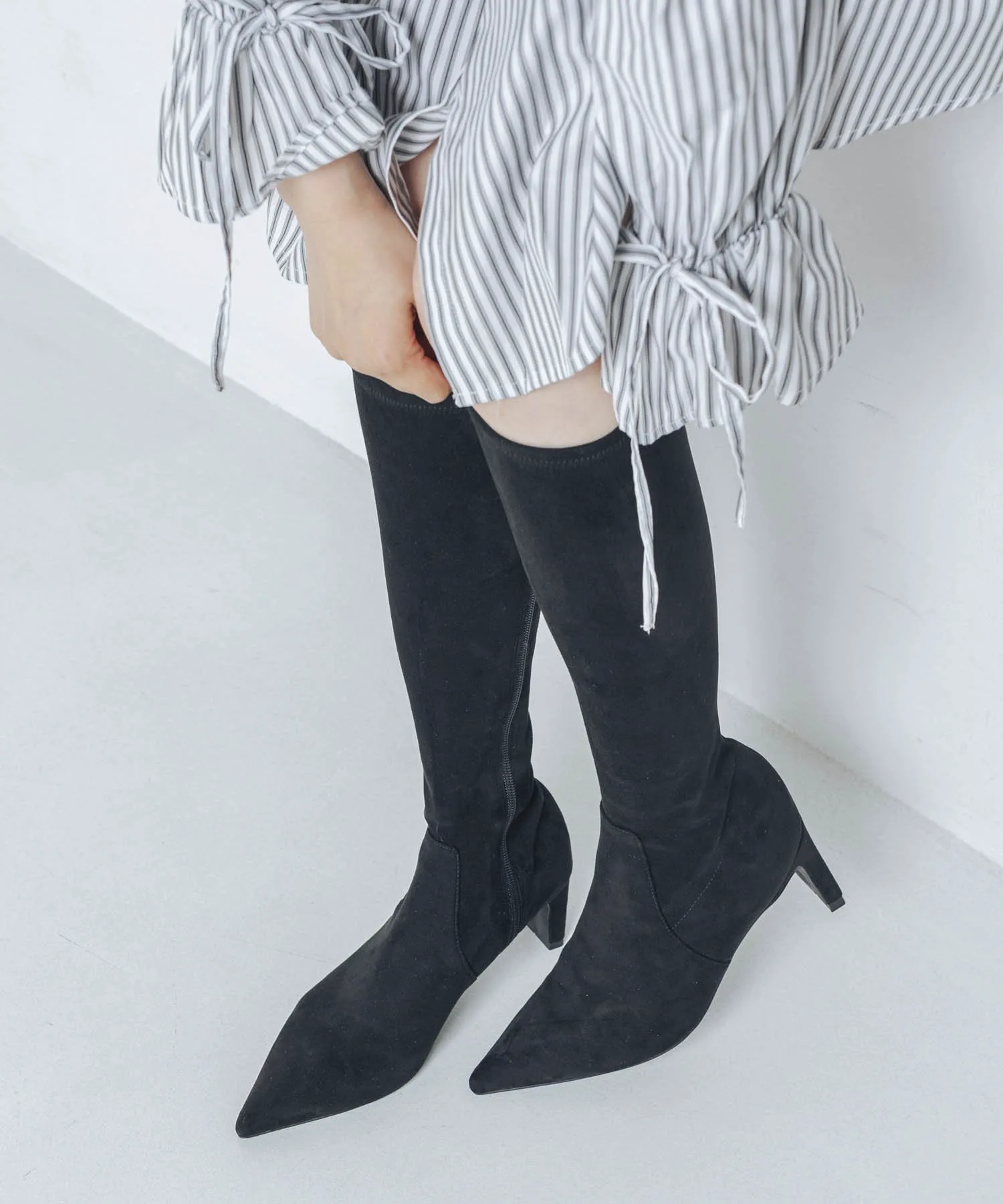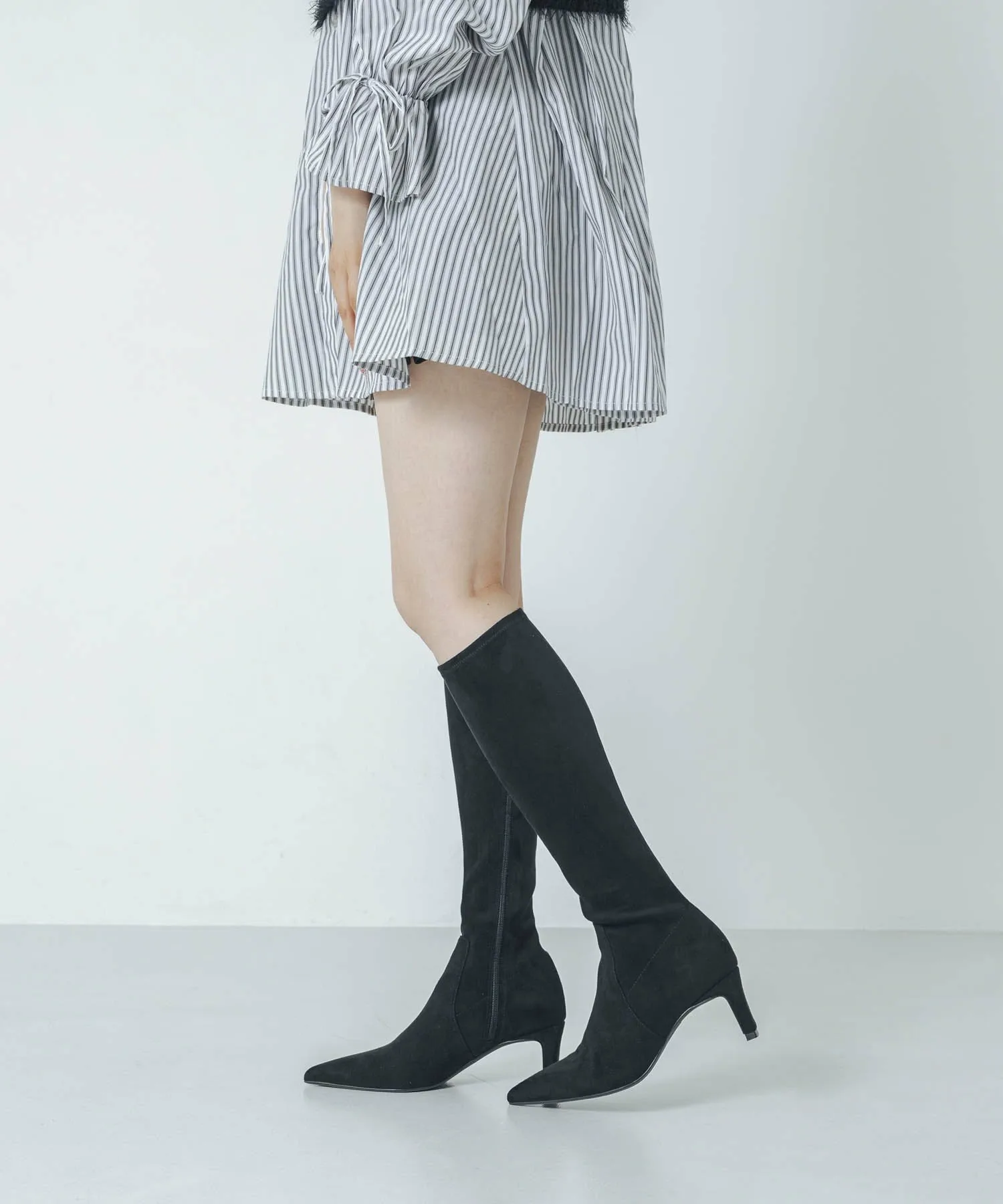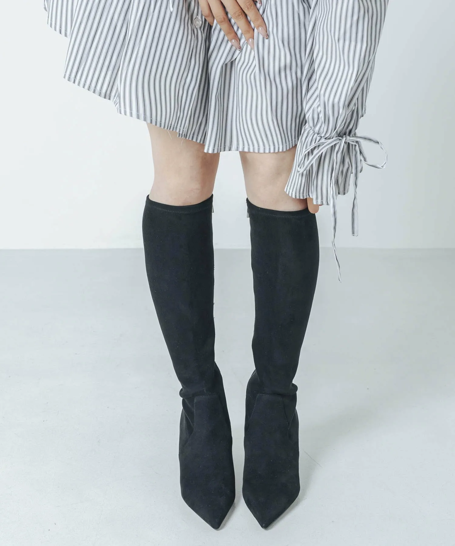 Комментарий: Длина моей стопы 23,4 см, но я предпочитаю более свободную посадку, поэтому иногда выбираю 24,0 см или размер L. Эта вещь сидит на моих ногах плотно, поэтому размер L мне подошел идеально, так как у меня обычно отекают ноги по вечерам. У них острый, заостренный вид, но материал мягче и эластичнее, чем кажется, поэтому они очень удобны в носке! Оно естественным образом выгодно подчеркивает фигуру, поэтому я рекомендую сочетать его не только с короткими юбками, но и с длинными юбками с разрезами!