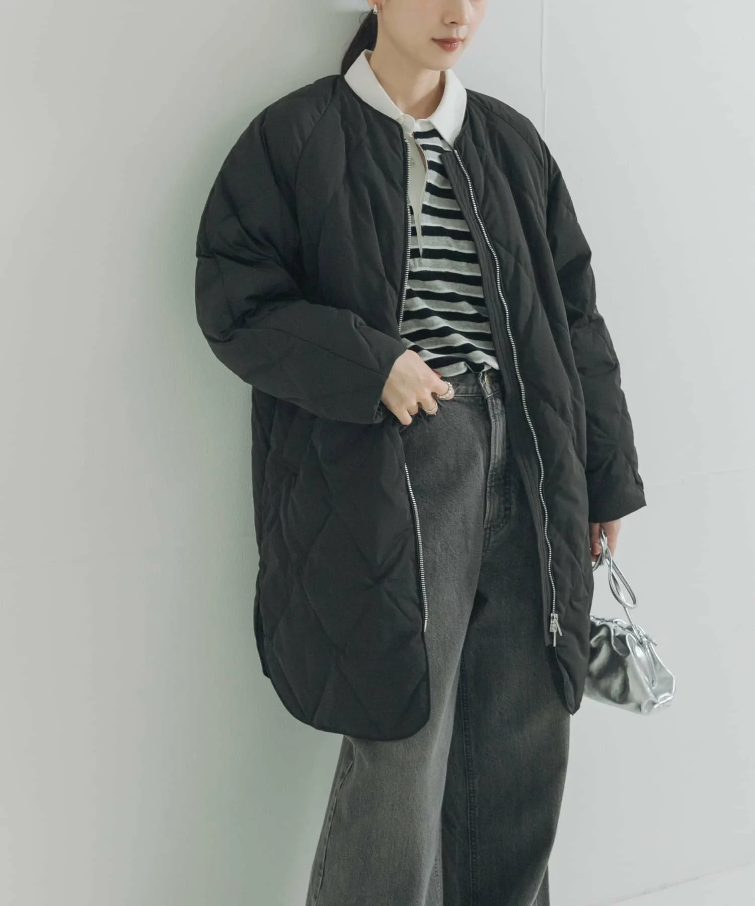 Длинная стеганая пуховая куртка, сочетающая в себе непринужденность и легкость.