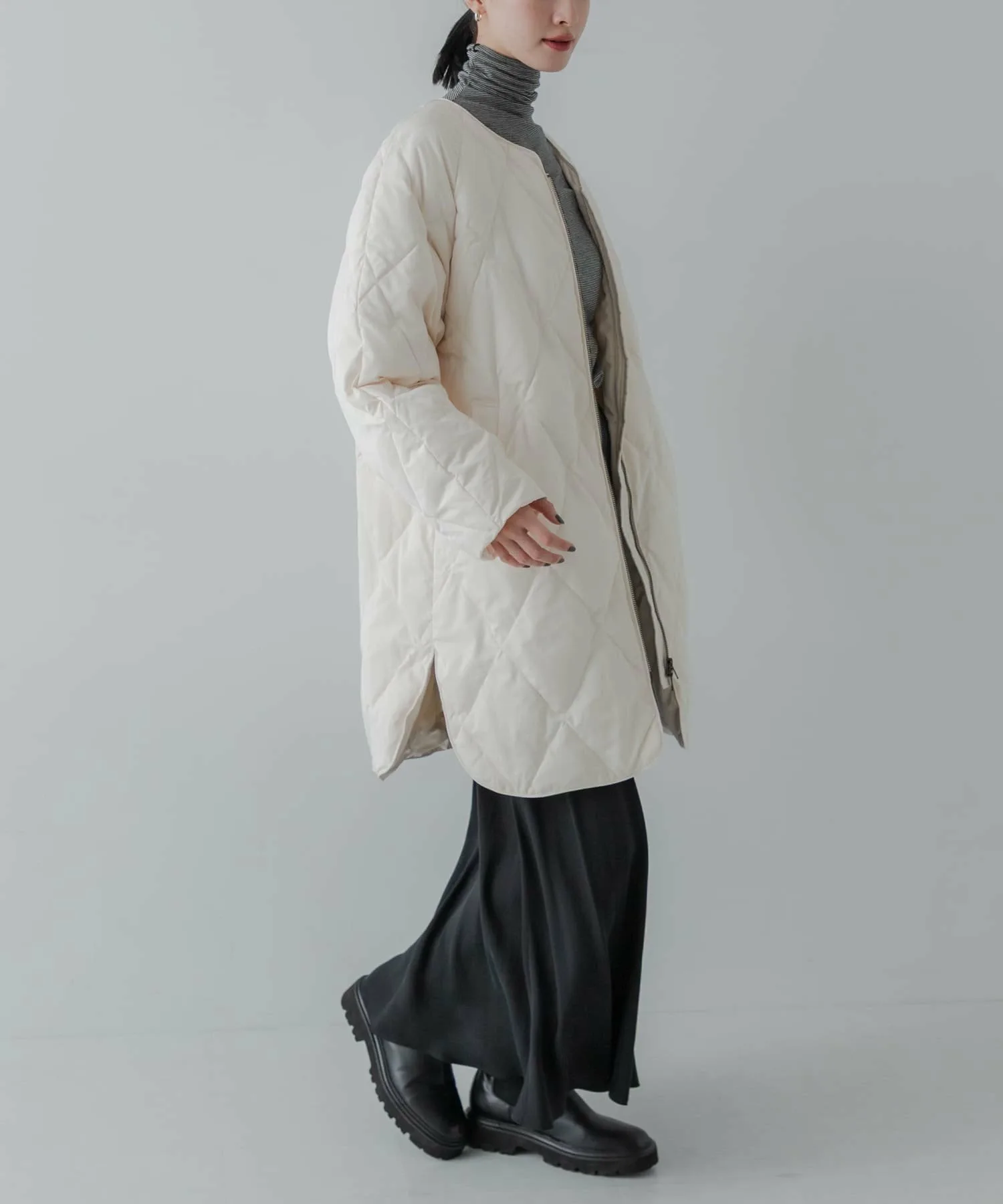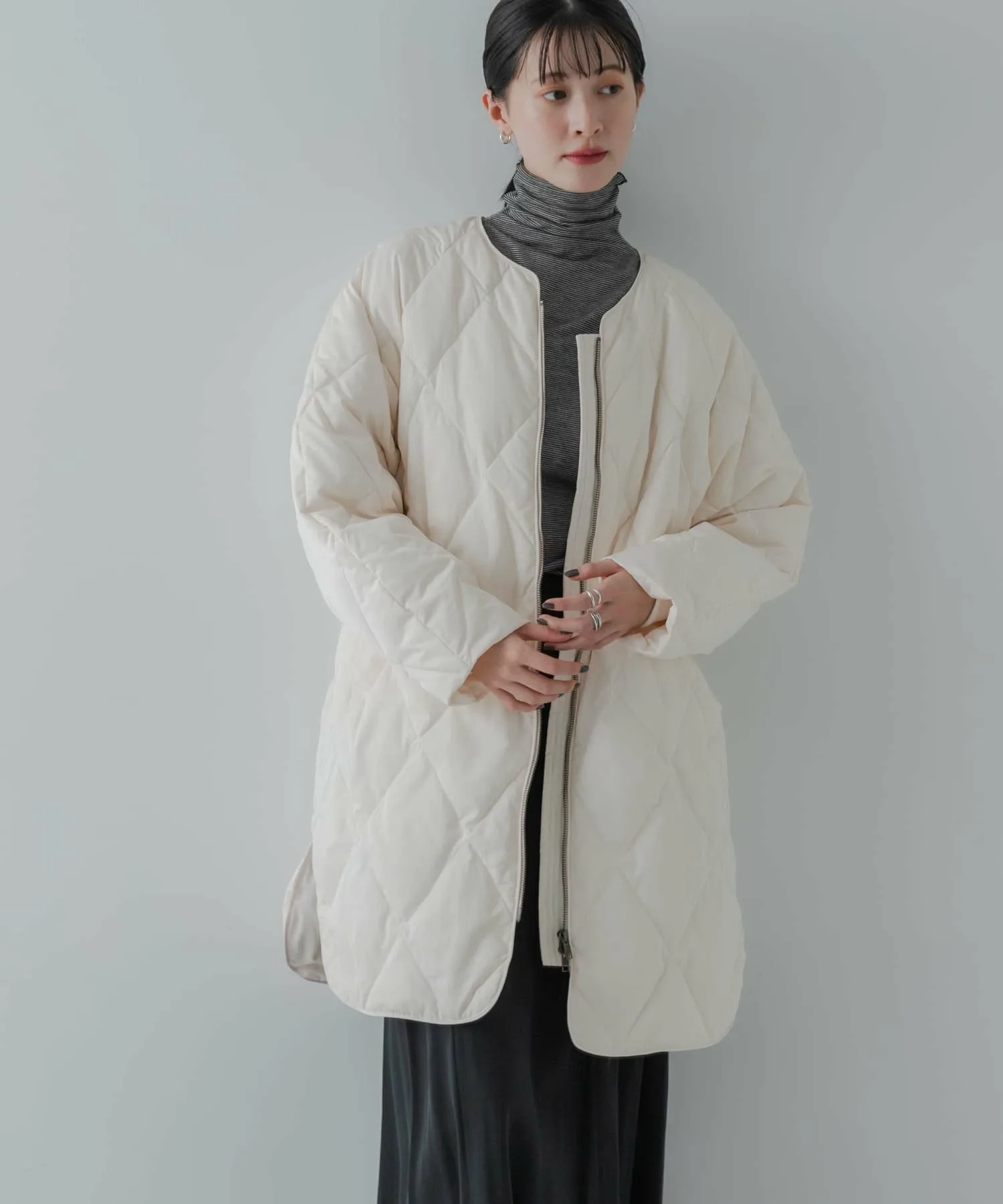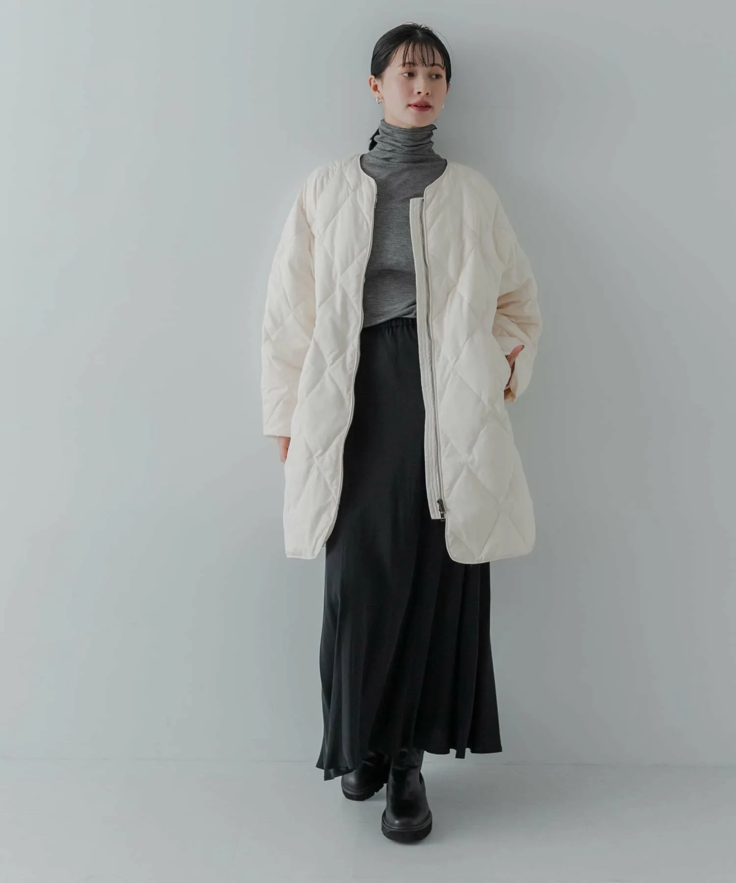 Несмотря на длину, она имеет обтекаемый силуэт, не слишком длинный, что делает ее подходящей как для невысоких, так и для высоких людей. Боковые разрезы придают легкость и воздушность этому длинному платью, которое часто бывает тяжелым. Слегка заниженный вырез горловины обеспечивает расслабленную, свободную посадку. Оно хорошо сочетается с юбками и широкими брюками, что делает его универсальным для самых разных нарядов. Ключевые особенности: ・Стежка в виде ромбов добавляет элегантности. ・Доступно в двух размерах для всех ростов и типов телосложения. ・Боковые разрезы создают ощущение легкости и воздушности. [Осень/Зима 2025] [25AW] В связи с особенностями этого изделия, пух, перья и другие наполнители могут выпадать из швов. Будьте осторожны при ношении этого изделия, так как оно может выскользнуть или деформироваться во время интенсивных физических упражнений или при воздействии сильного давления. Общий вес: около 705 г. Цвет изделия: Изображения товара могут отличаться от реального цвета в зависимости от условий освещения и настроек вашего компьютера. Благодарим за понимание. Для приблизительного представления цвета товара, пожалуйста, обратитесь к изображению товара.