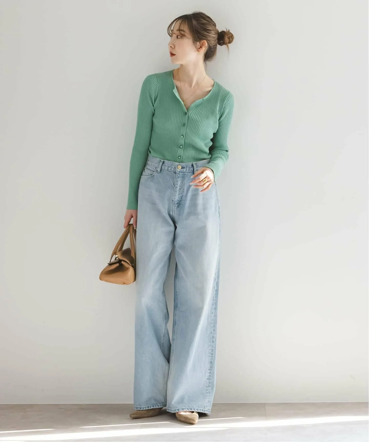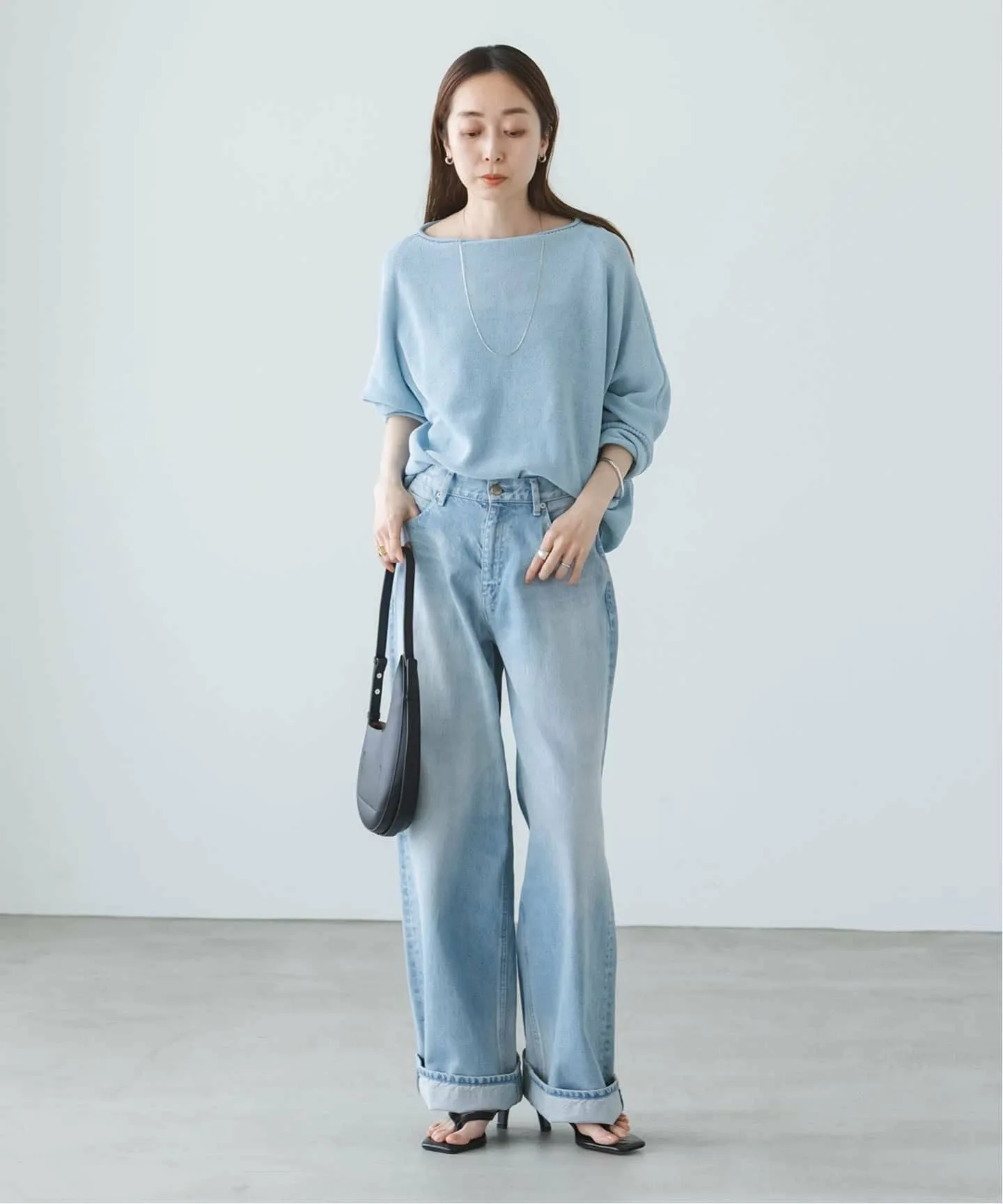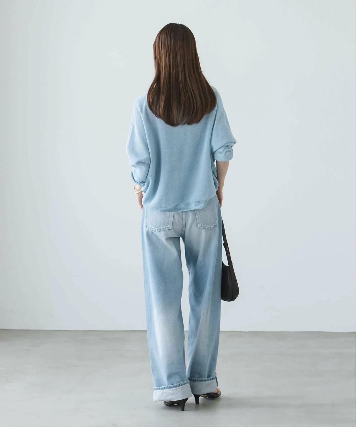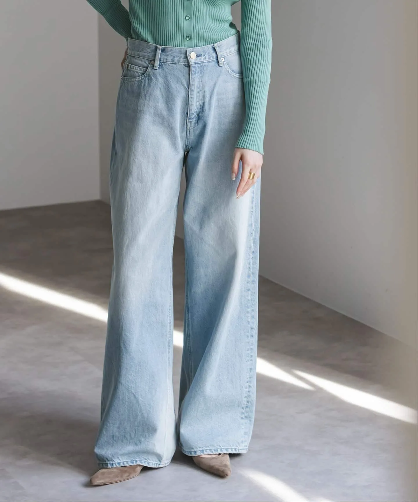 Деним был слегка обработан по всей поверхности для создания эффекта выцветшей ткани, что делает его идеальным для весенних и летних образов.