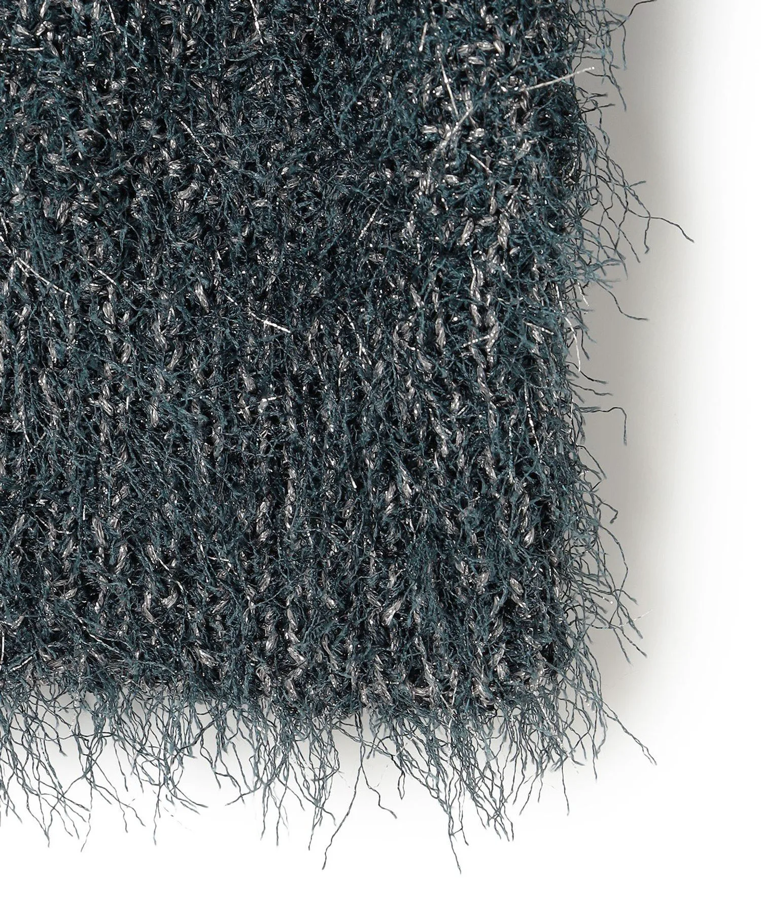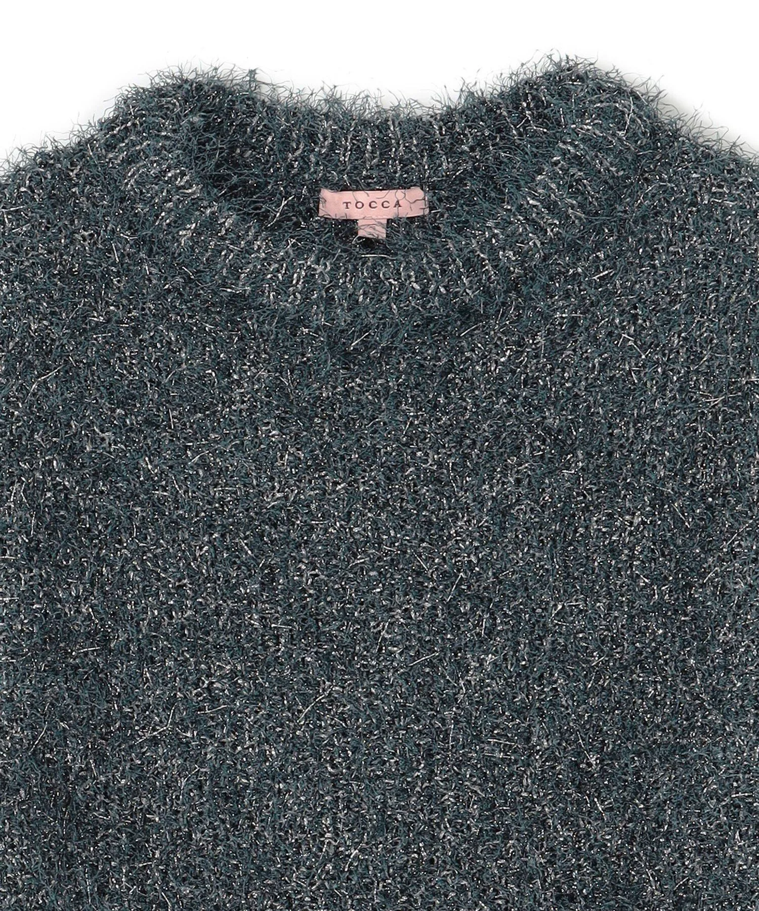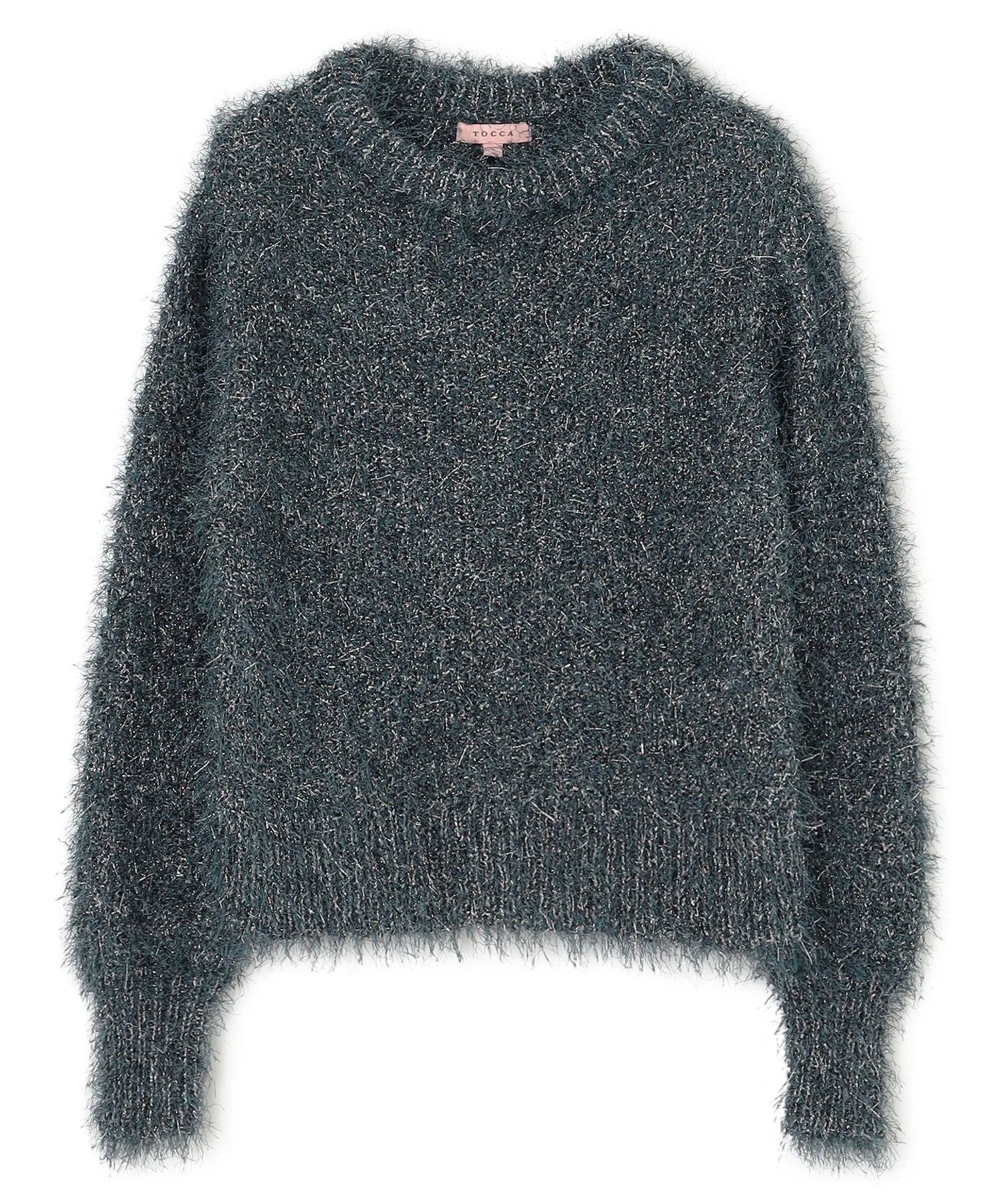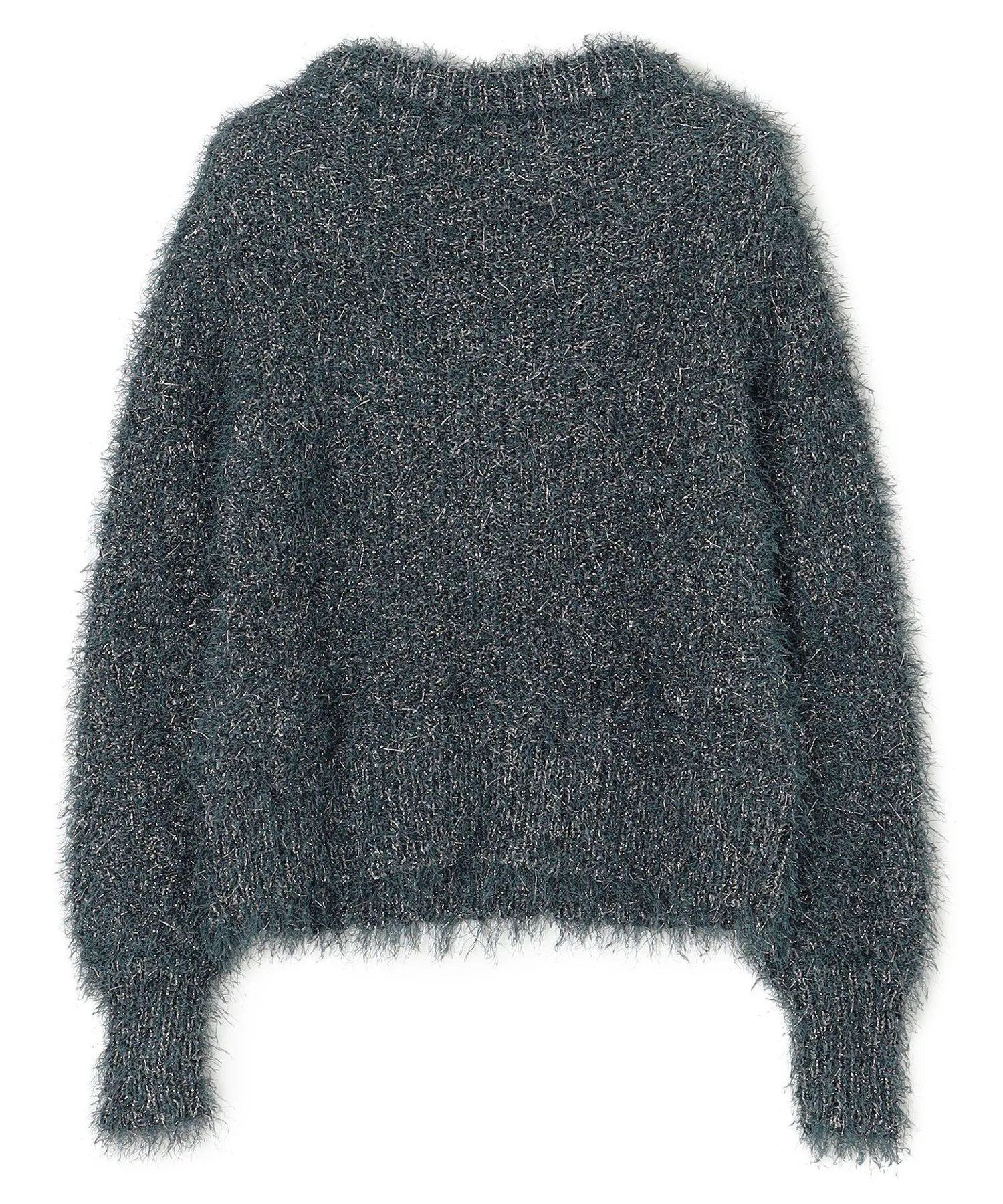 Вязаный пуловер, изготовленный из комбинации различных видов пряжи, имеет пушистый, конфетный вид.