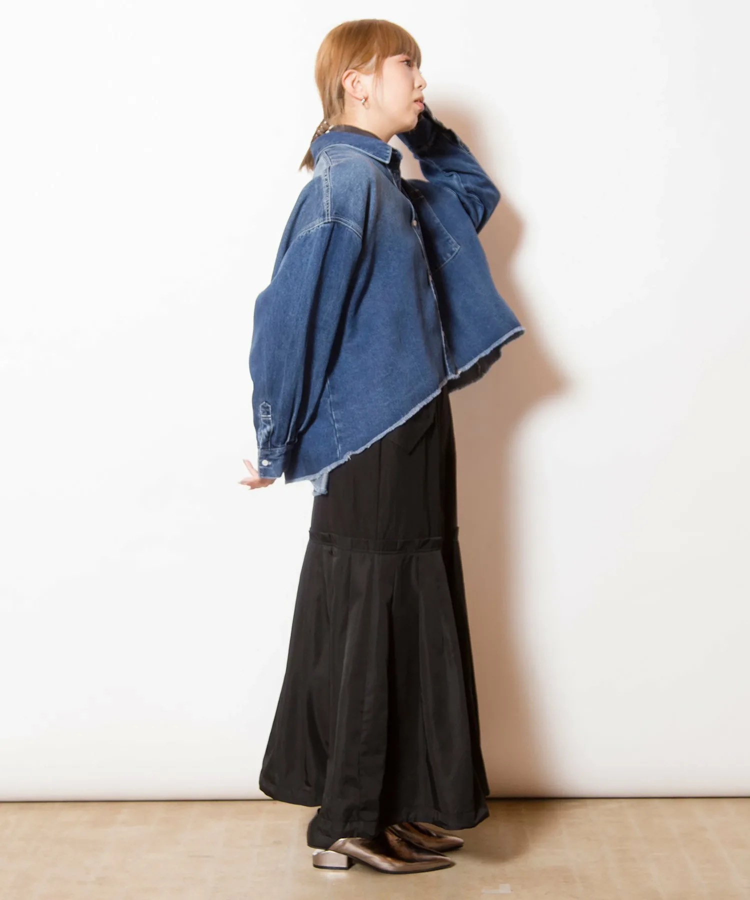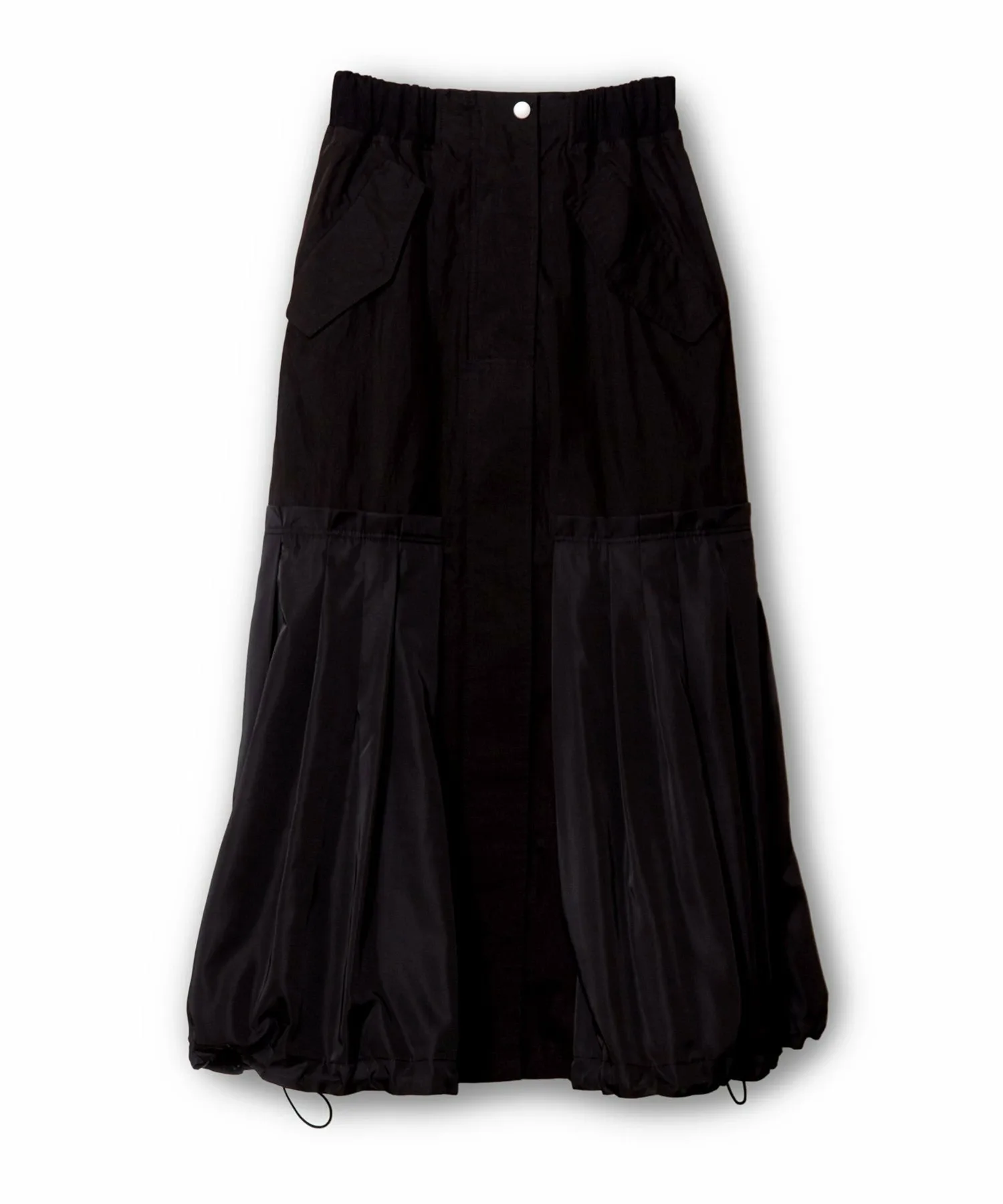 Характеристики ・Передняя молния・Эластичный пояс・Два передних кармана・Регулируемый низ