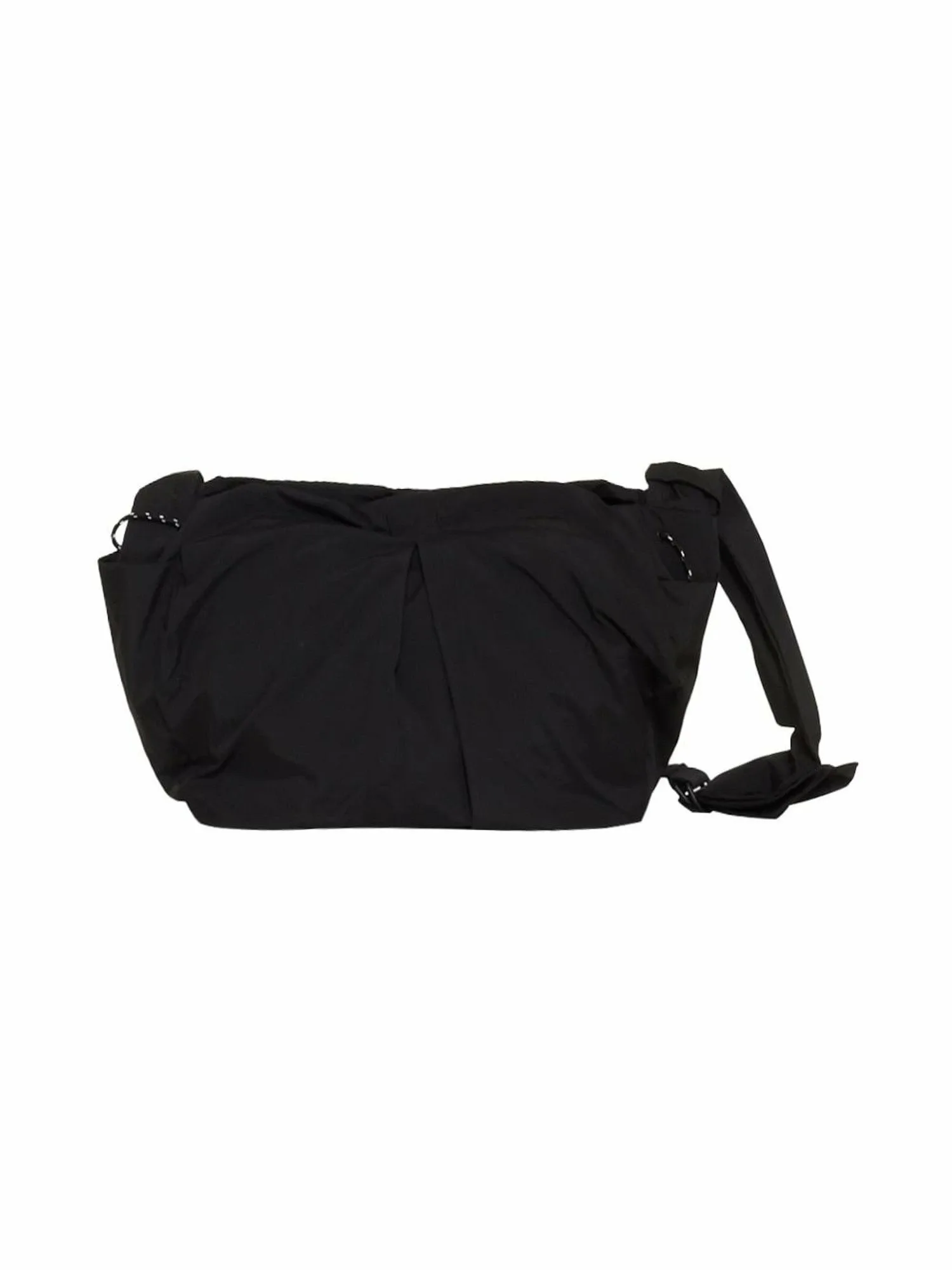 Сумка "CLIMACO" вдохновлена газетными сумками, которые использовали разносчики газет в Америке в 1900-х годах. Она отличается грубым, увеличенным дизайном, напоминающим карманы верхней одежды. Материал — винтажный переработанный нейлон (без фтора, водоотталкивающий C0) с приглушенным блеском, типичным для одежды. Это хлопчатобумажная ткань простого переплетения, изготовленная в Японии из пряжи Taslan. Плечевой ремень оснащен двойным D-образным кольцом. Регулировочная секция выполнена в технике "шибори", которая использует текстуру материала для создания эффекта мятой ткани. Доступна в двух размерах, большом и маленьком, сумка имеет скрытые карманы на молнии спереди и сзади. Подкладку на дне можно приподнять, что позволяет перевозить небольшие грузы в поездках и уменьшает пространство при хранении.