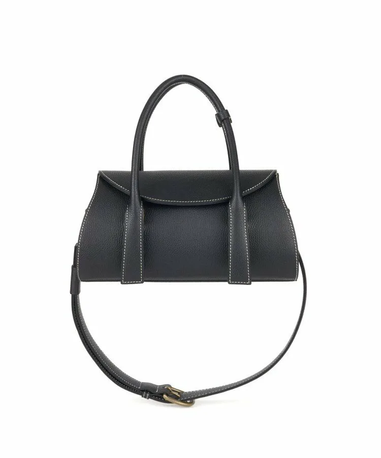 Классическая сумка с клапаном имеет округлую горизонтальную форму и плавающие ручки, что добавляет ей свежести.