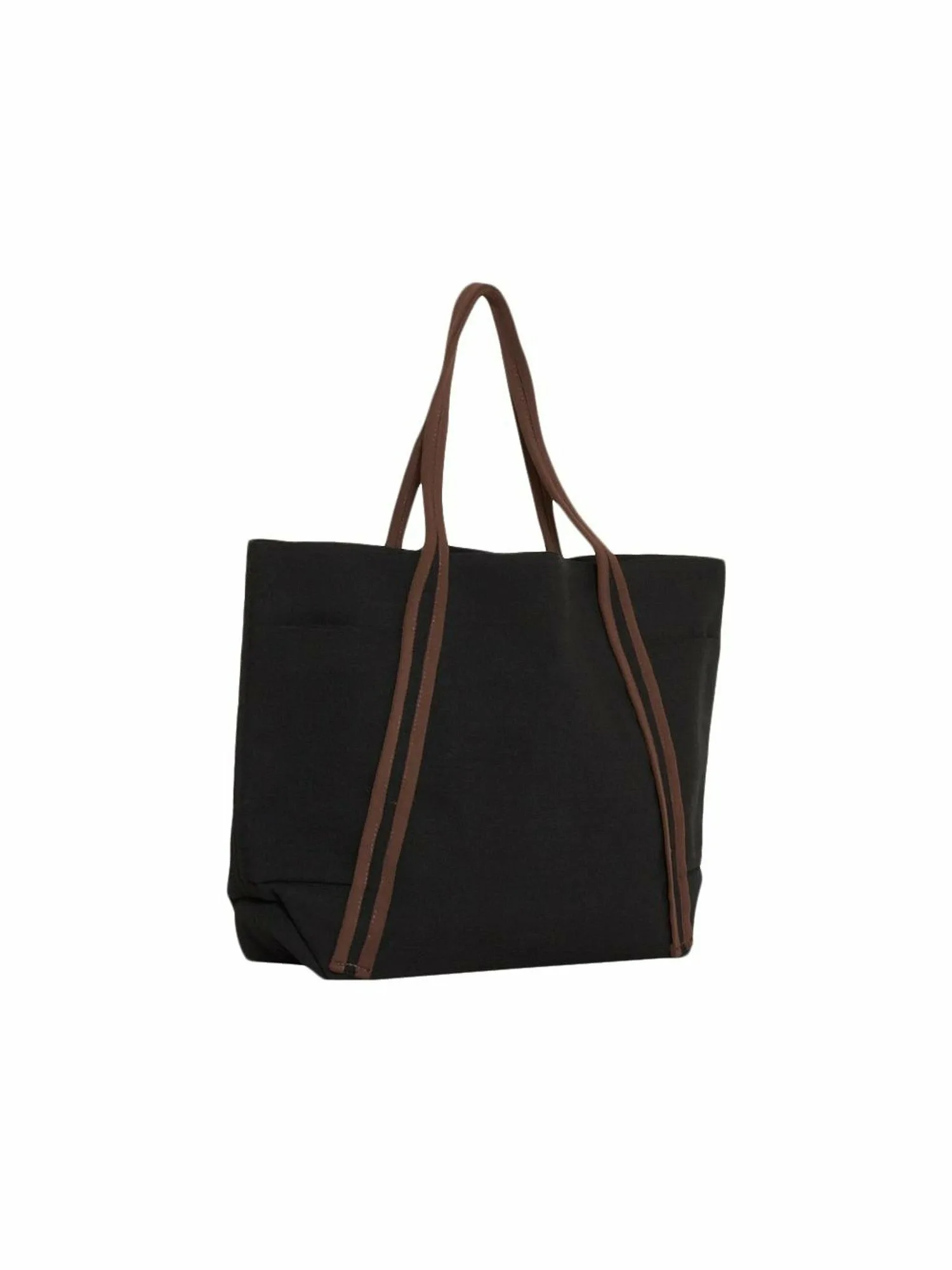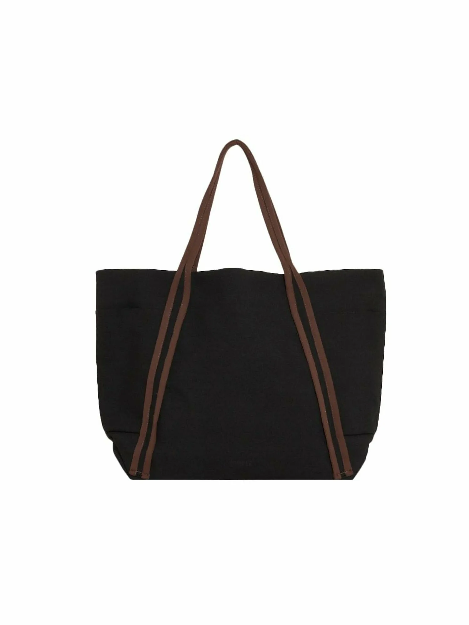 Легкие сумки с эффектной отделкой кантом. Серия "JENO" предлагает современный взгляд на технику отделки кантом. Основной материал — синтетический переработанный полиэстер натурального меланжевого цвета и текстуры, напоминающей натуральные материалы. Благодаря уникальным свойствам этого материала, предотвращающим расслоение краев, сумки изготавливаются из цельного куска ткани. Контрастный кант отделан трикотажным связующим из переработанного полиэстера для мягкости на ощупь. Холщовые сумки обычно тяжелые, но легкая конструкция этой сумки и смелый двухцветный дизайн создают непринужденный образ. Сумка-тоут: Простая сумка-тоут в форме лодки с внешними карманами по бокам спереди. Внешний вид прост, но внутри есть разделительный карман для дополнительной функциональности. Магнитная застежка обеспечивает безопасность. Круглый карман на молнии сзади позволяет легко хранить длинный кошелек. Дно можно приподнять, чтобы разместить небольшое количество багажа, что удобно для экономии места при хранении в шкафу.