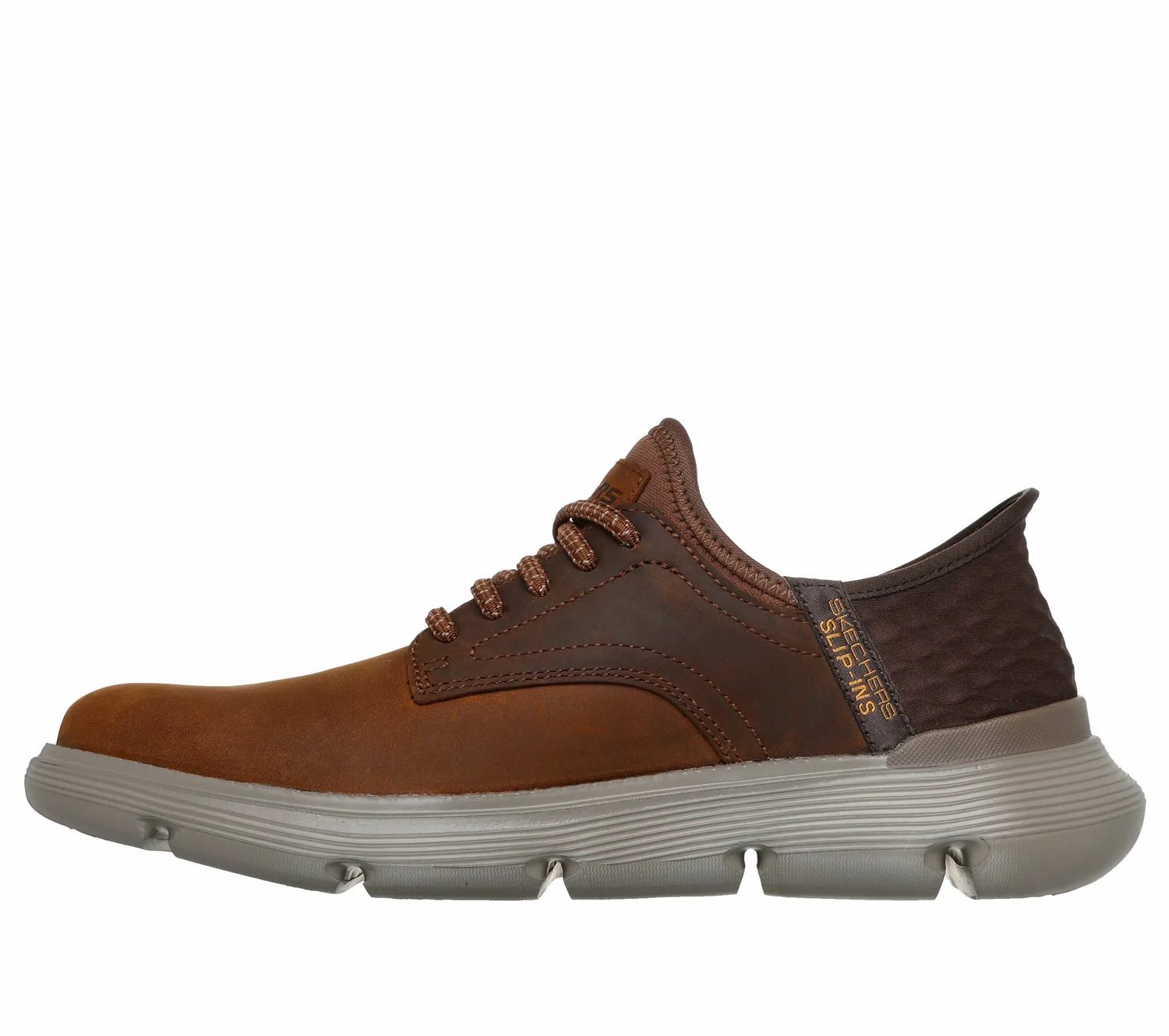 Особенности: Повысьте свою эффективность благодаря комфортному деловому повседневному образу с кроссовками Skechers HandsFree Slip-ins: Garza-Garvin. Эти оксфорды TOUCHLESSFIT имеют конструкцию HeelPillow. Они выполнены из гладкой кожи с эластичными шнурками, имеют стельку Skechers Air-Cooled Memory Foam с добавлением древесного угля и арку Skechers GogaMatArch для дополнительной поддержки.