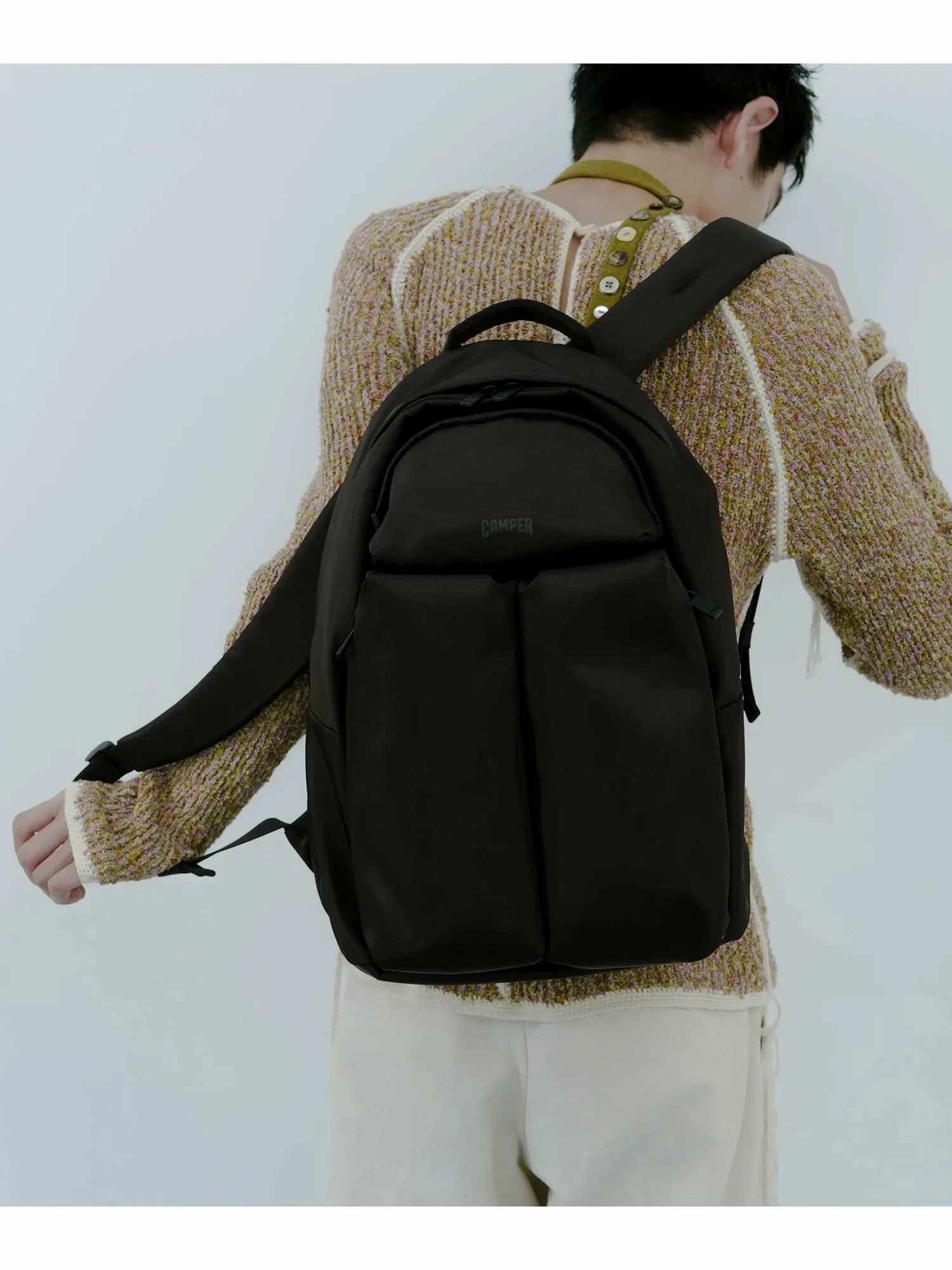 Серия "PIO" вдохновлена темой коллекции "после работы". Она сочетает в себе множество функций и элегантный внешний вид. Отличительный внешний передний карман предназначен для хранения необходимых вещей, и достаточно велик, чтобы вместить такие предметы, как бутылки с водой, зонты и даже влажные салфетки. Хотя карман, дизайн которого имитирует содержимое, на первый взгляд может показаться несбалансированным, он воспринимается как функциональная красота. Простой материал из полиэстеровой саржи создает городской, но активный образ. Скрытый клапан на молнии позволяет использовать сумку без опасений даже в дождливые дни, а также способствует лаконичному дизайну. Внутри внешнего кармана также есть разделительный карман, облегчающий организацию и доступ к мелким предметам.