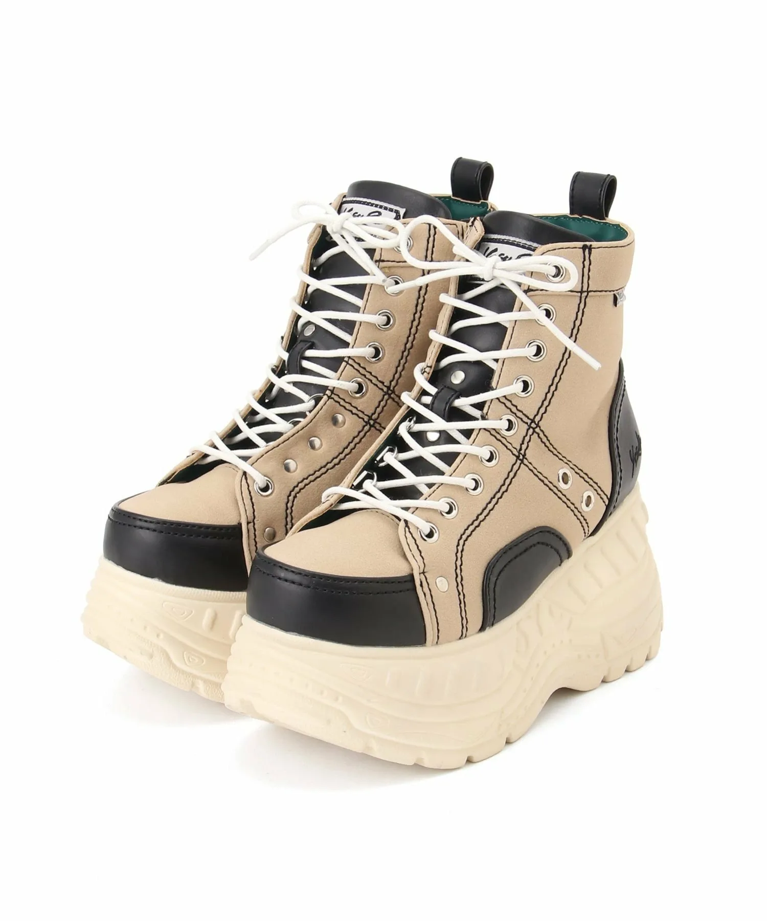 Эти высокие кроссовки на платформе украшены D-образными кольцами, расположенными в разных местах для разнообразия, и цветной строчкой.