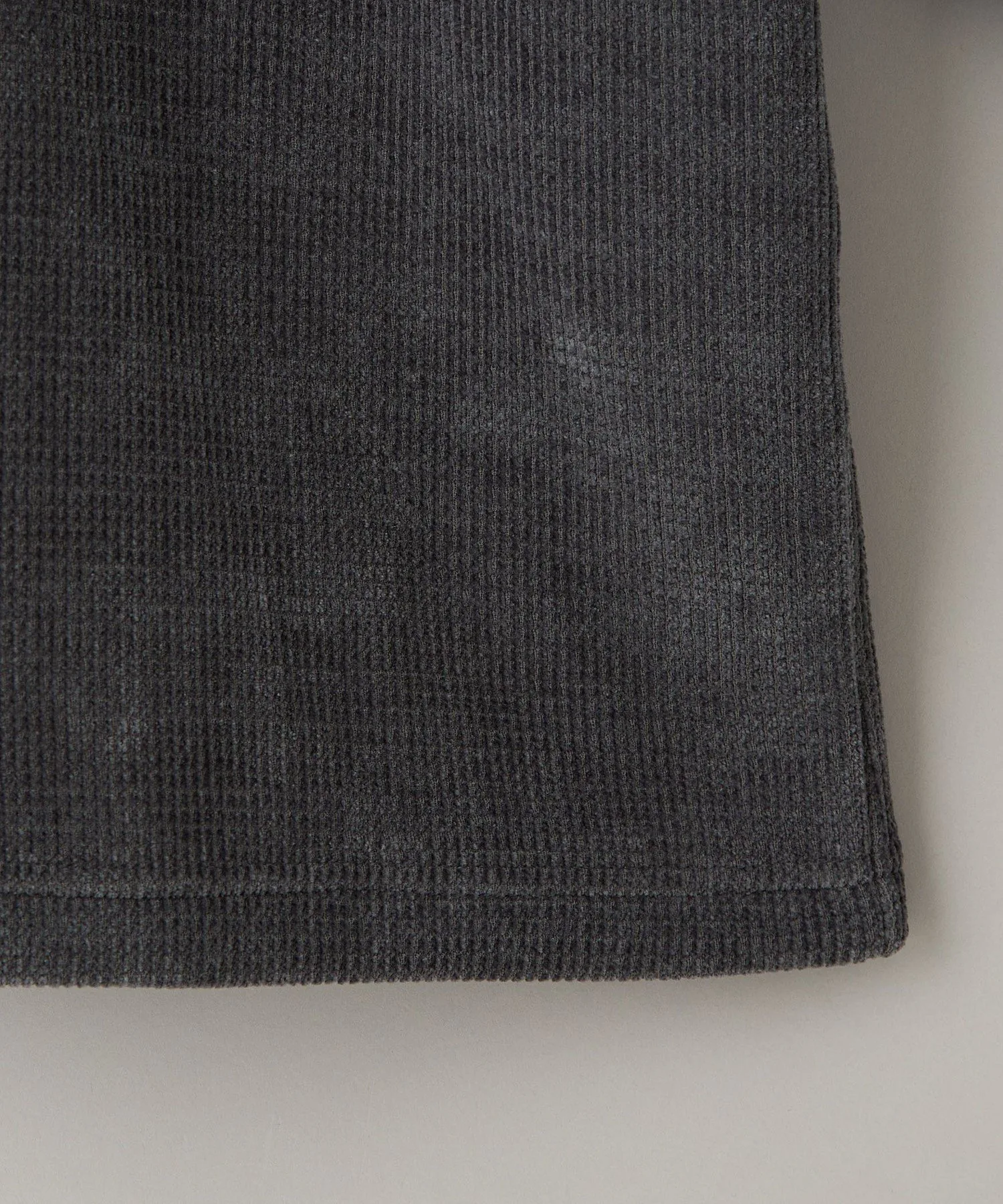 Сшитый топ изготовлен из вафельной ткани с использованием мохеровой пряжи, что создает сезонное настроение.