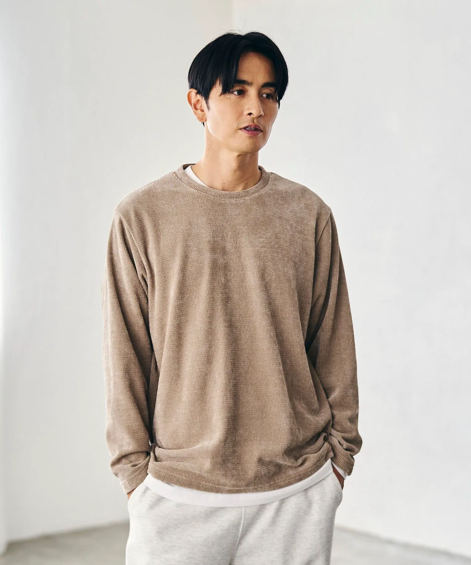Комплект из двух частей, сочетающий гладкий внутренний слой с мягким, теплым сшитым топом.