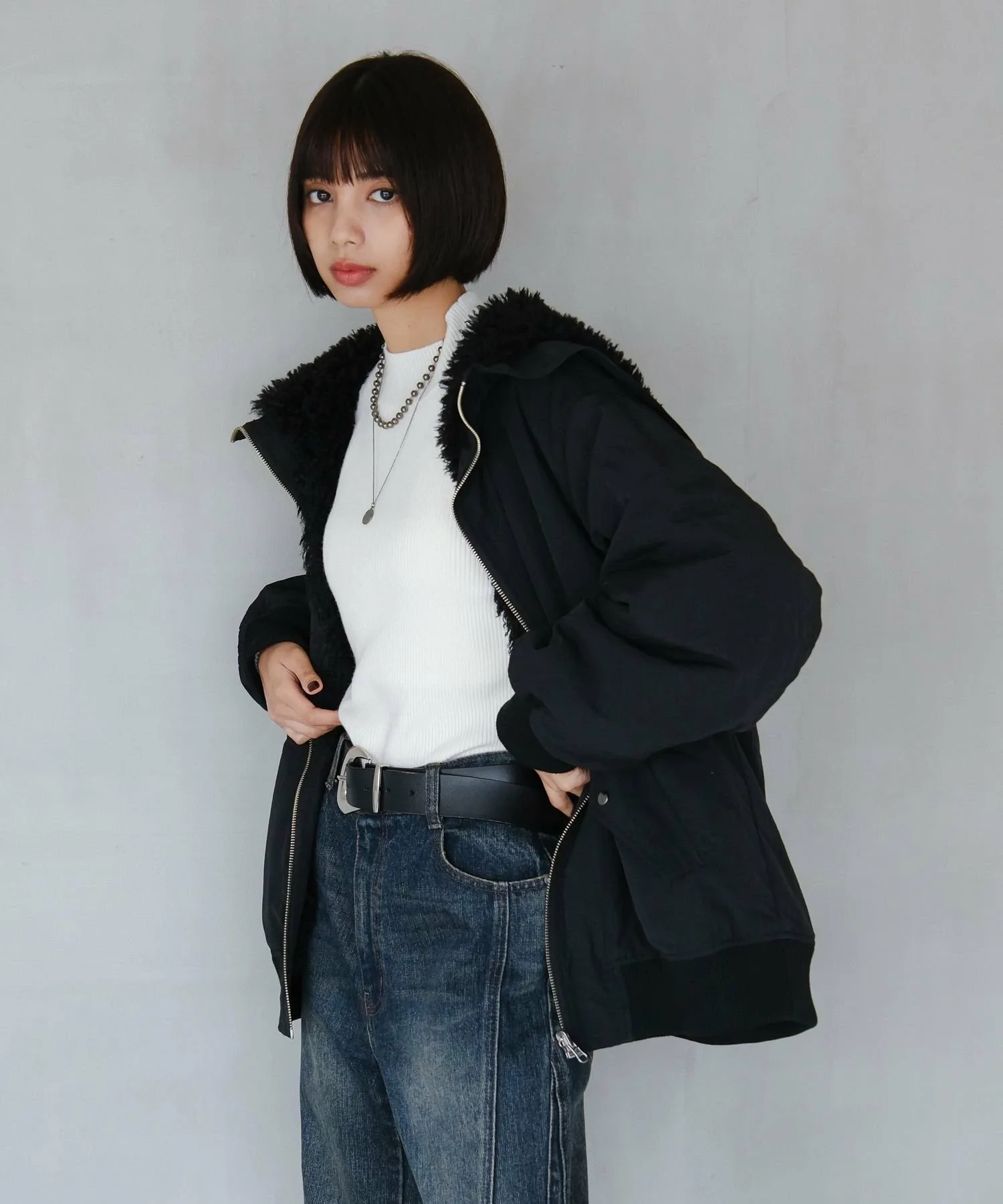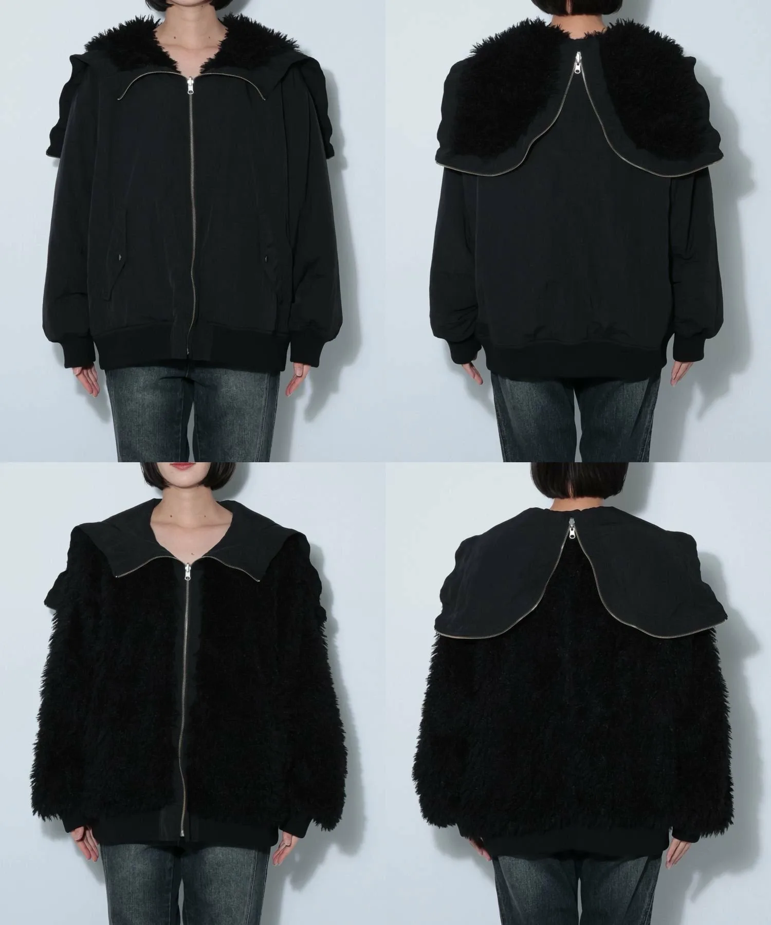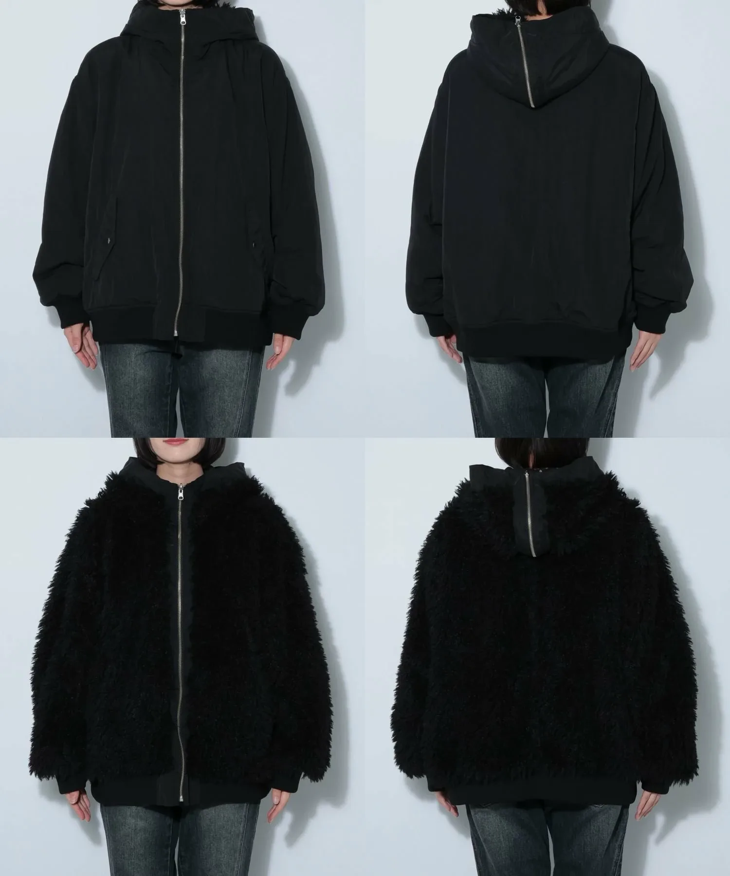 Универсальная верхняя одежда со смелым двусторонним дизайном из искусственного меха и нейлона, позволяющая менять стиль в зависимости от настроения.