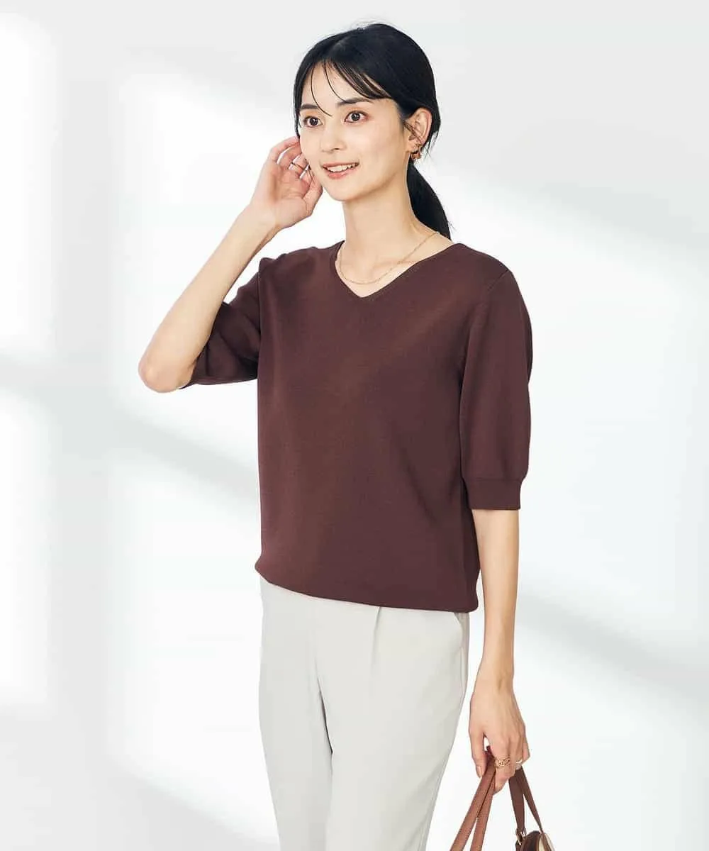 Летний трикотаж с V-образным вырезом и пышными рукавами: K2FGA59039