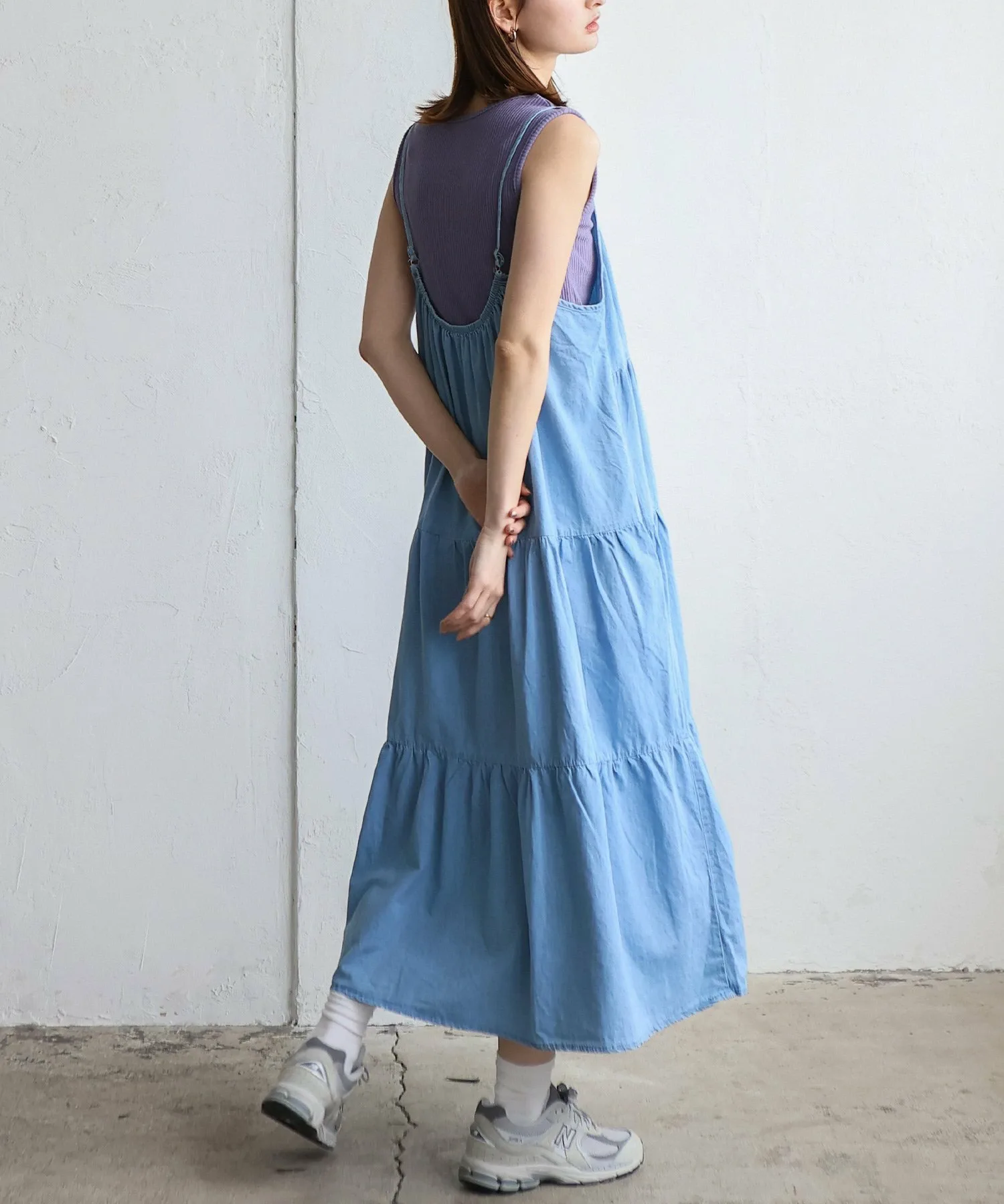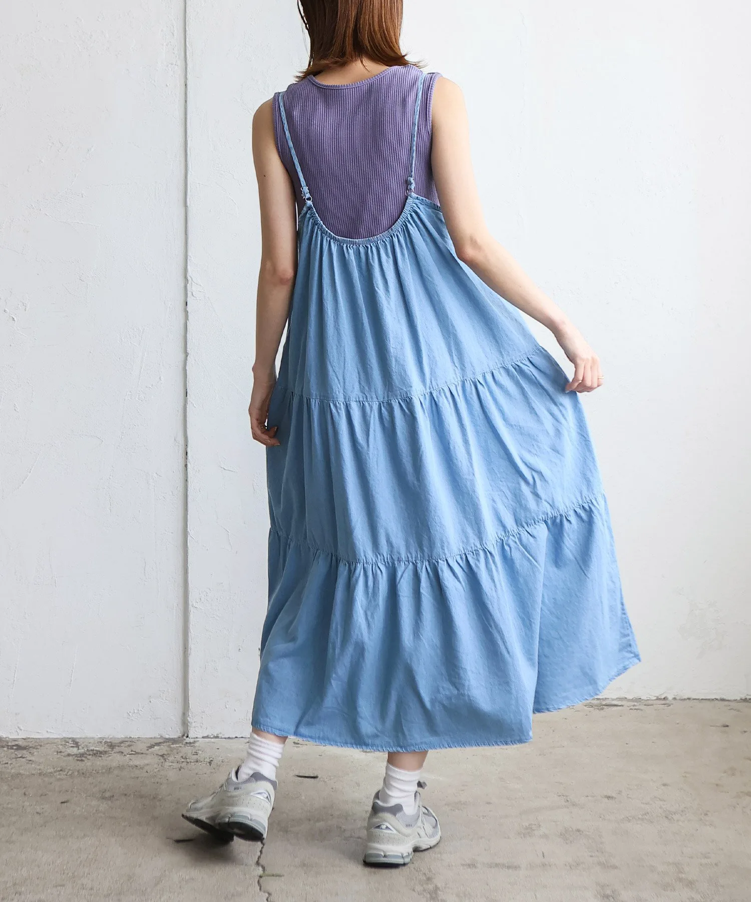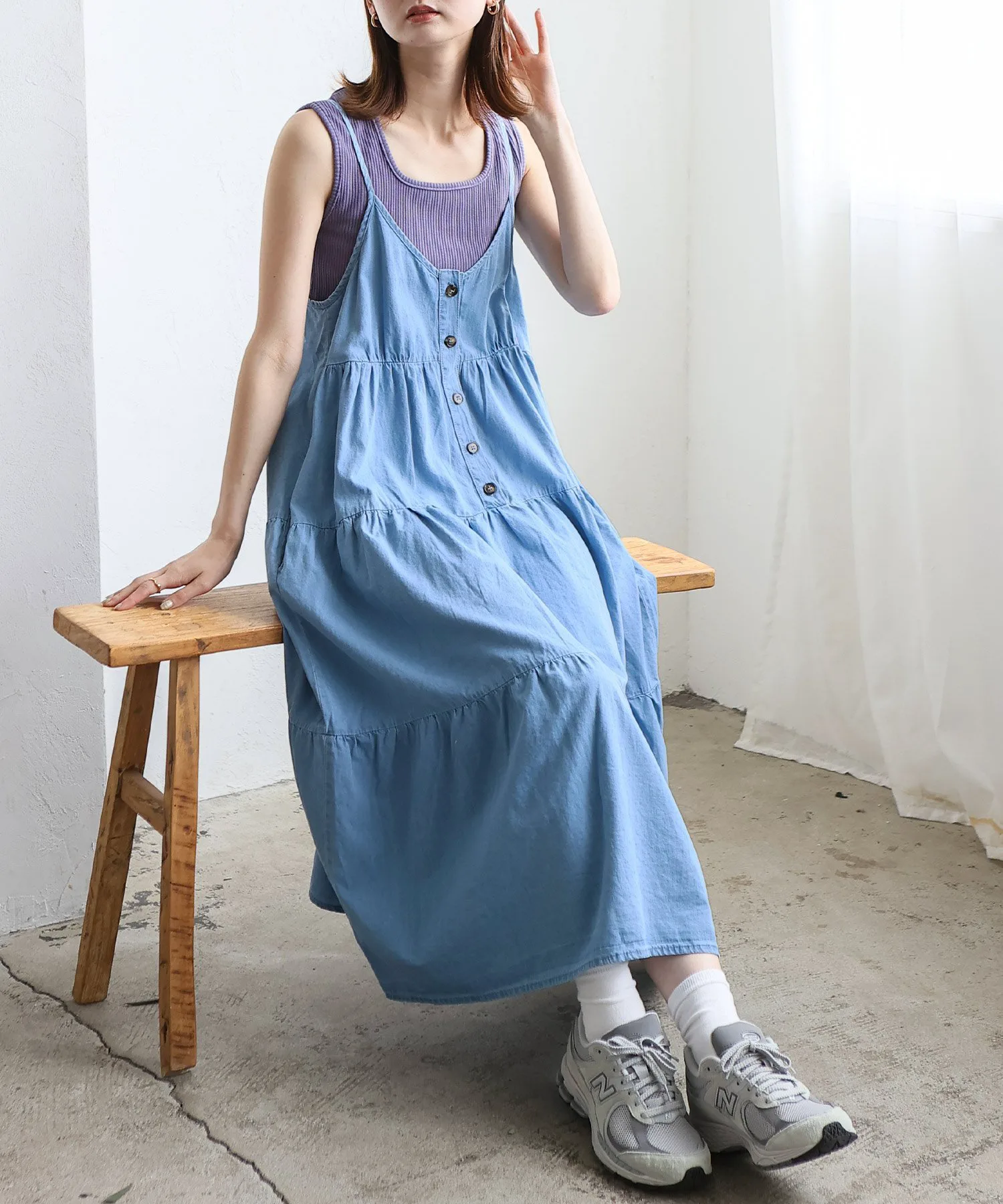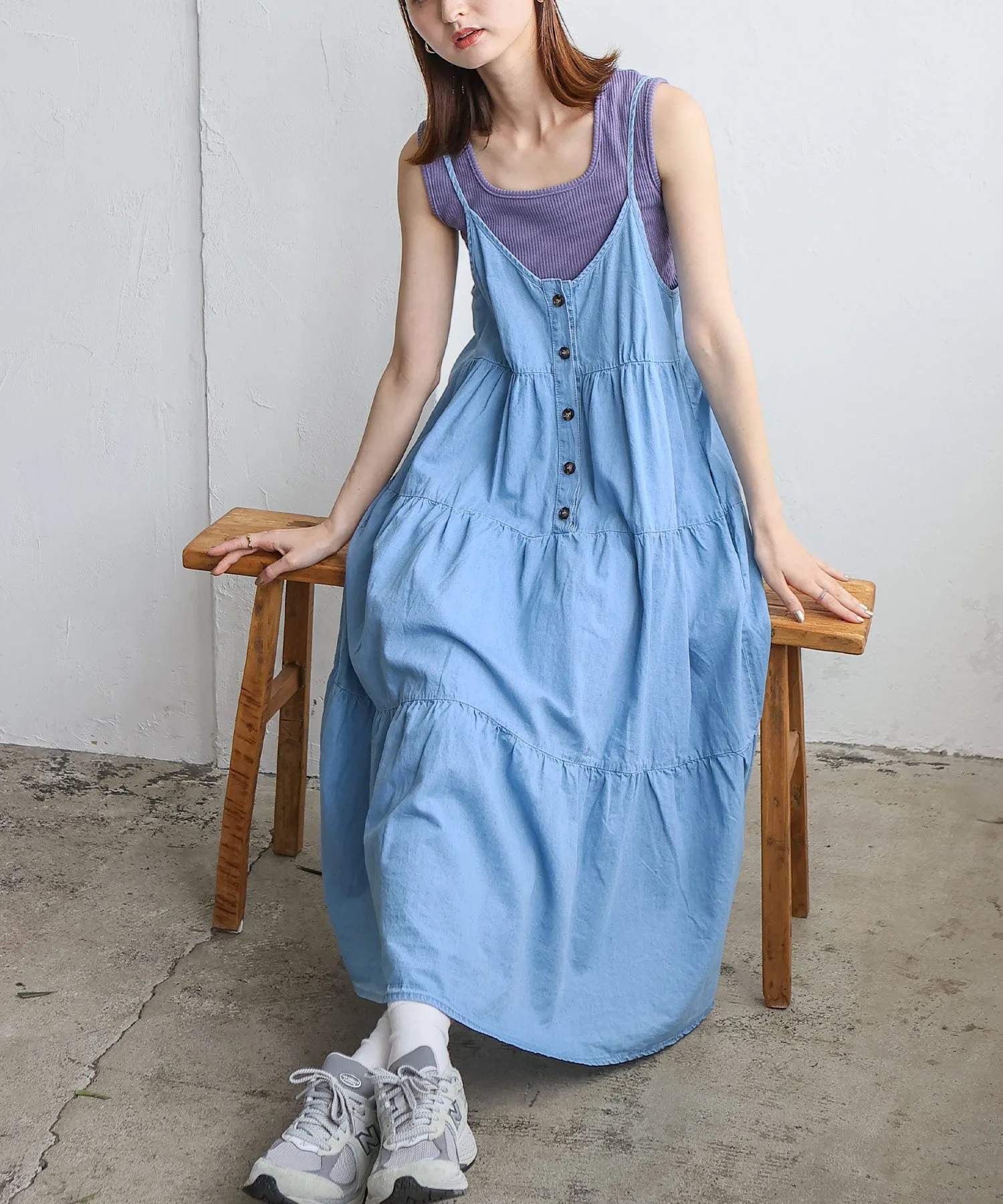 Платье-комбинация с многоярусной юбкой из джинсовой ткани