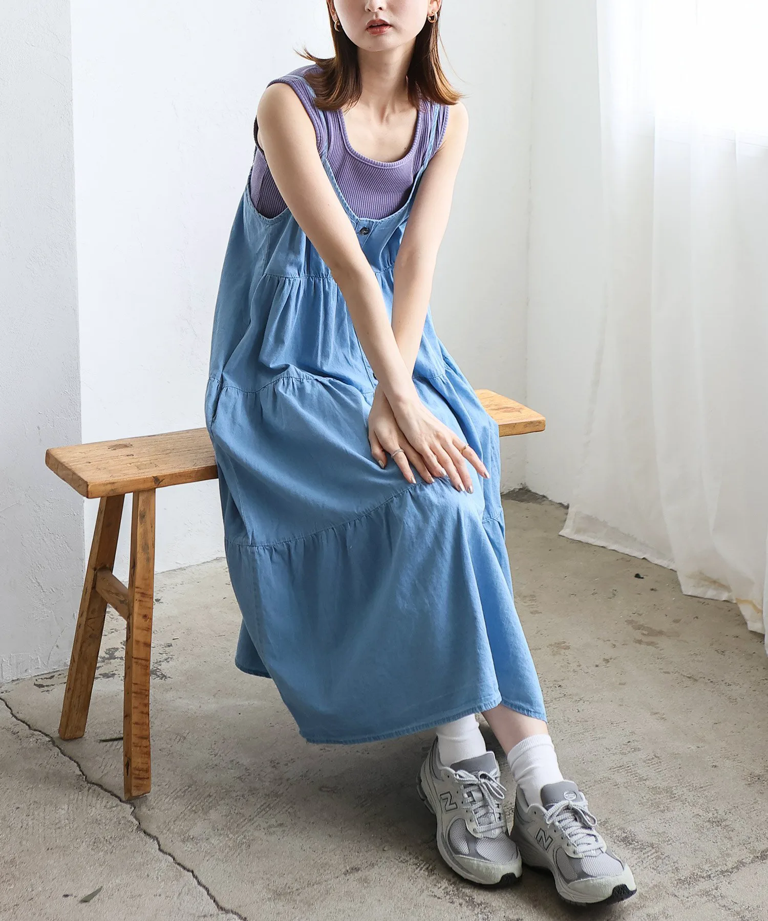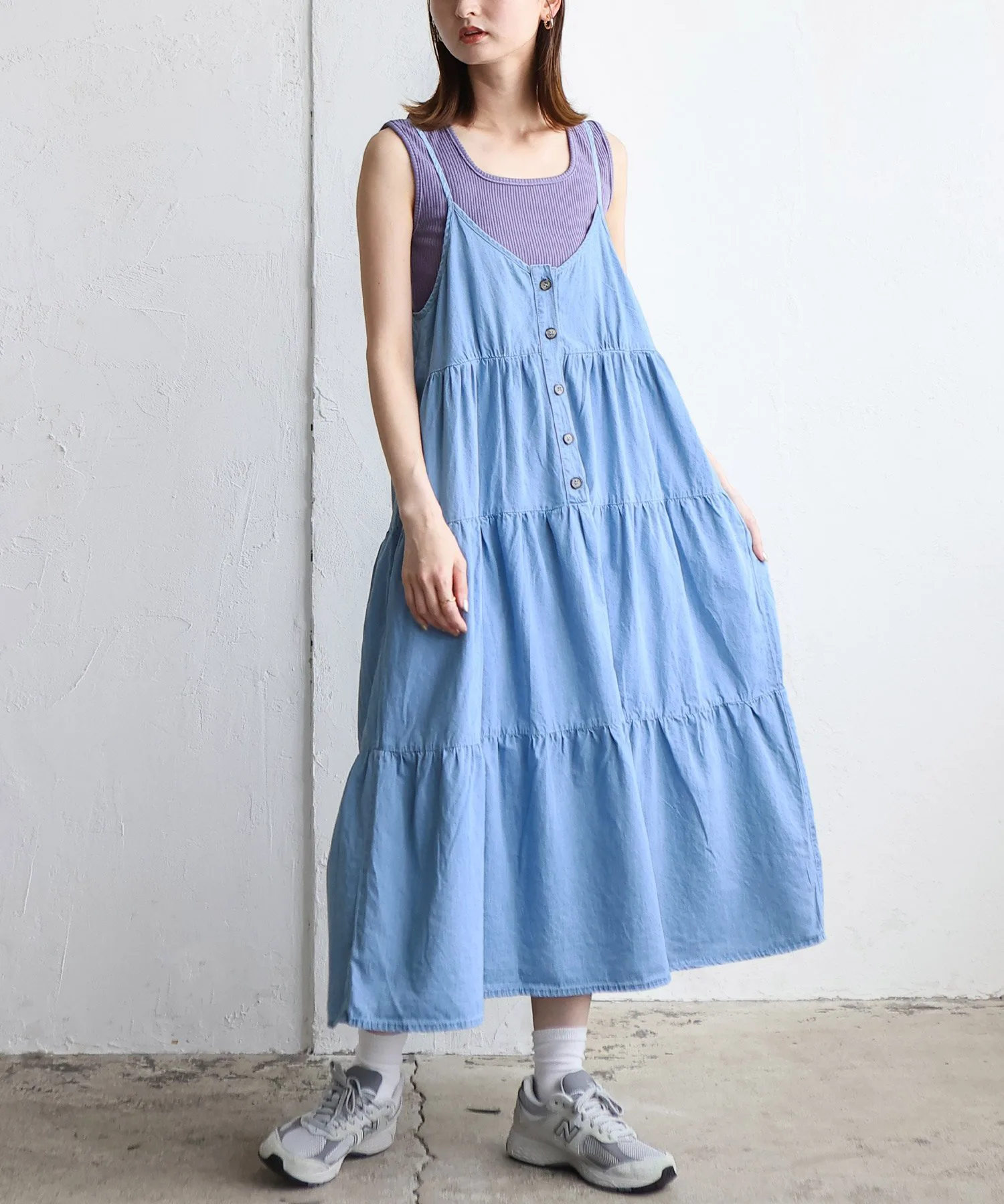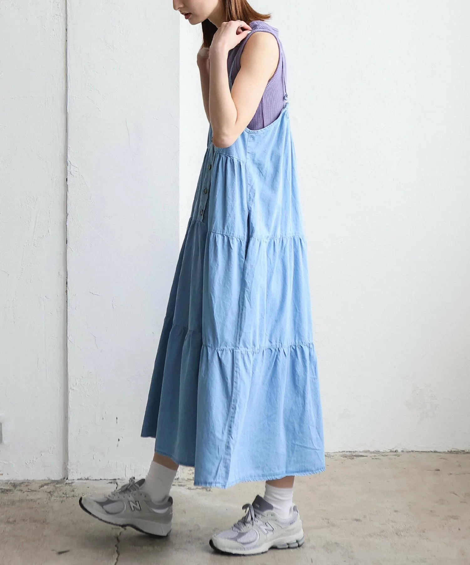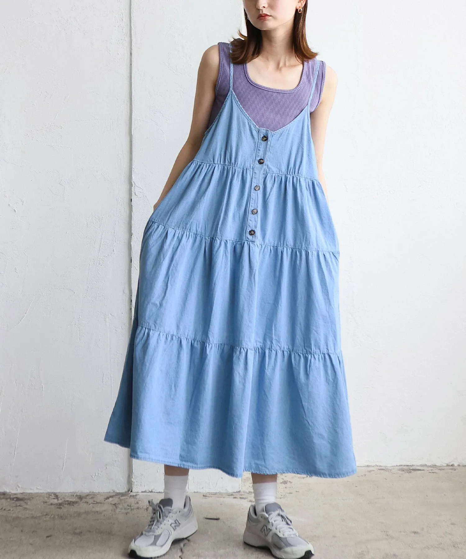 Платье-комбинация с многоярусной юбкой из джинсовой ткани