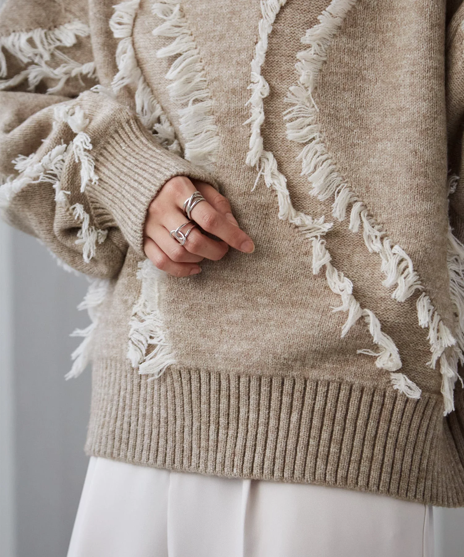 Хотя этот свитер может выглядеть тяжелым, он кажется легким. Бахрома имеет длинный ворс, что делает ее привлекательной даже издалека. Этот свитер можно носить с начала осени до поздней зимы.