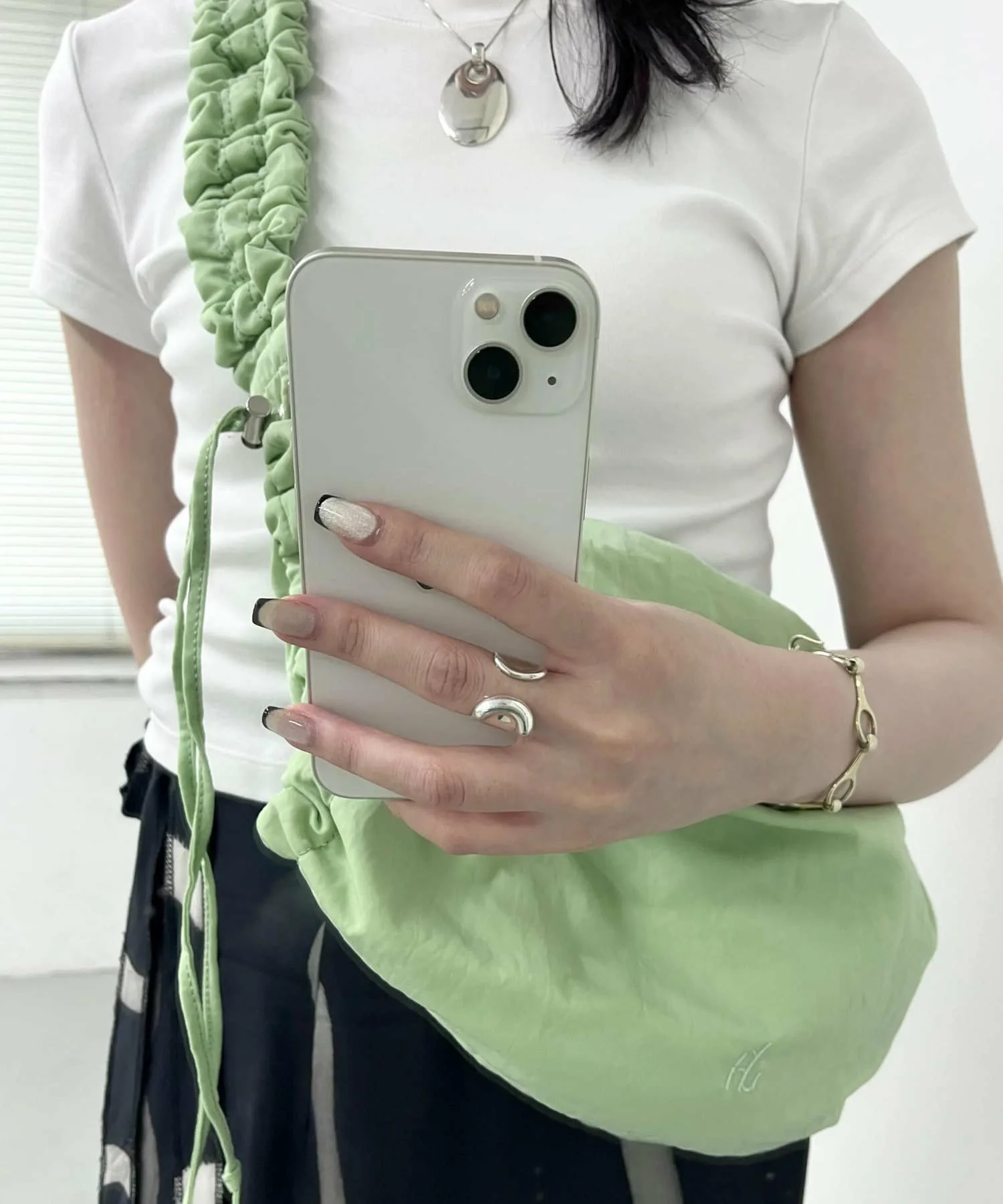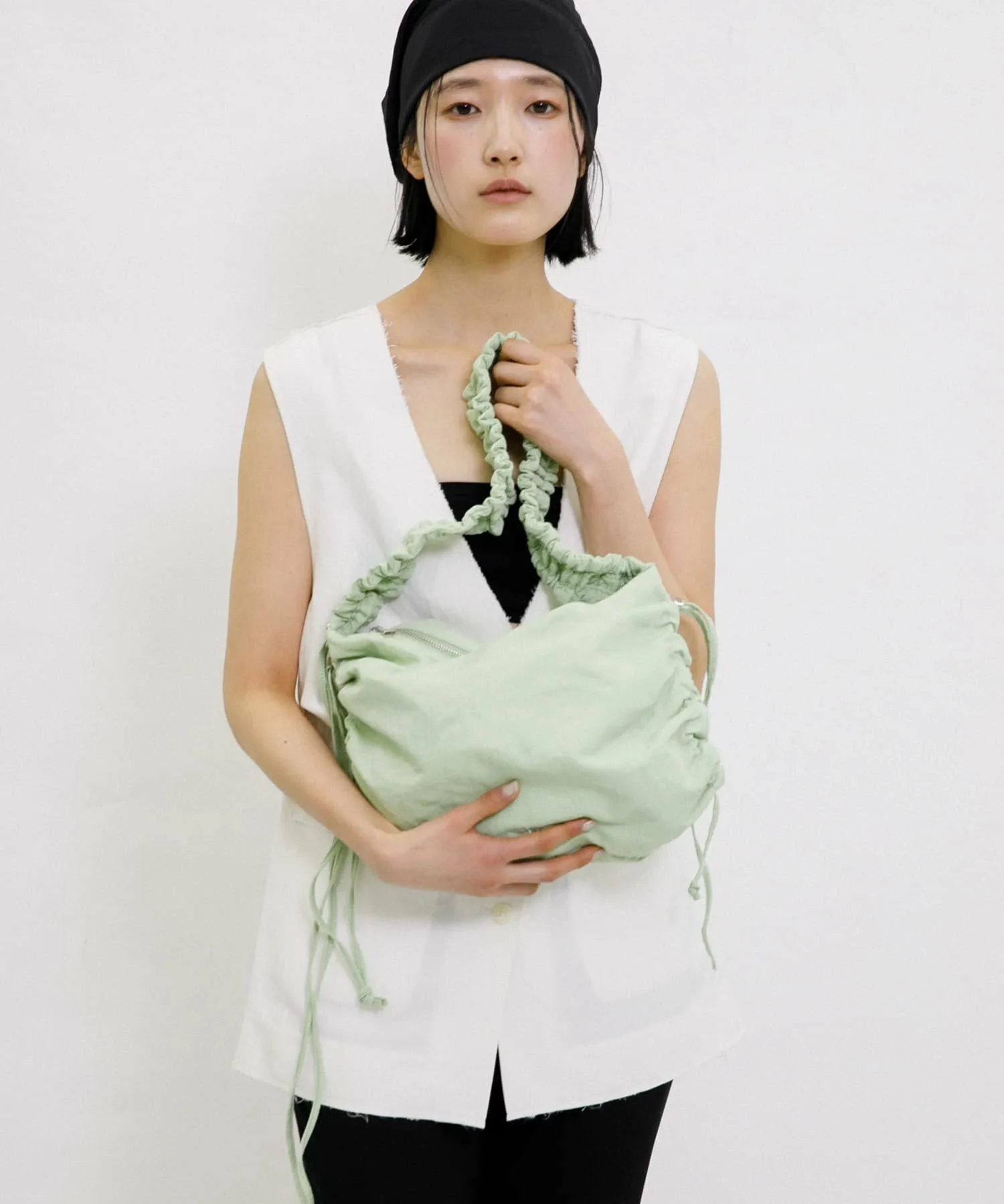 Сумка через плечо, которую можно носить как кроссбоди. Шнурок сбоку позволяет регулировать силуэт в соответствии с вашим настроением.