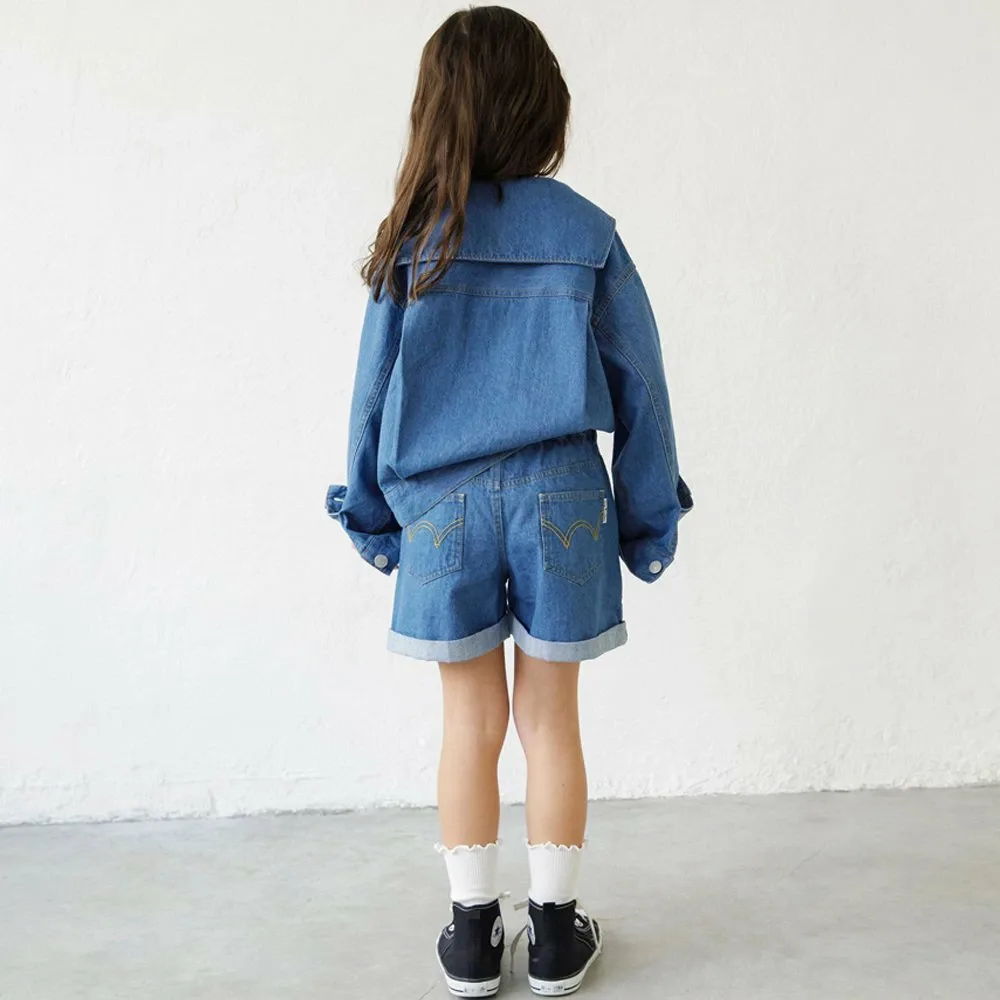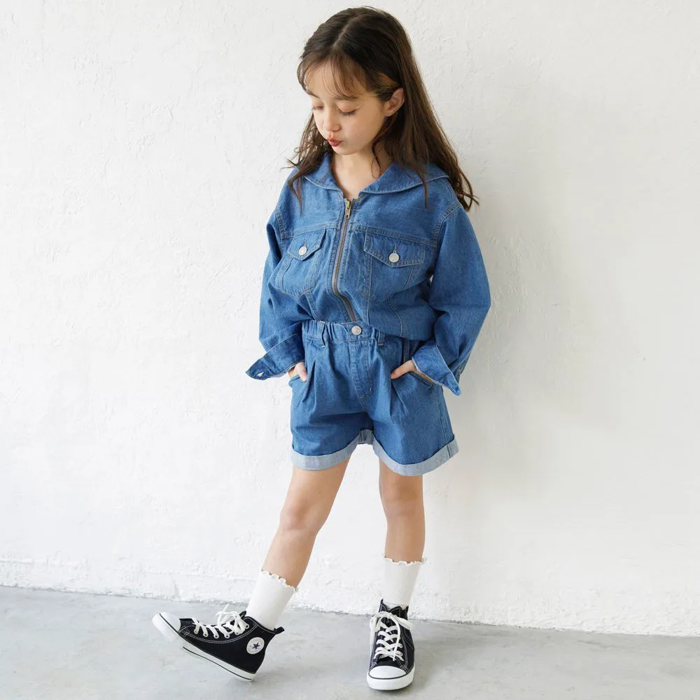 Отличный вариант — сочетать их с 17-5101-001 (джинсовая куртка с матросским воротником) и 17-5102-002 (джинсовый бюстье), изготовленными из того же материала.